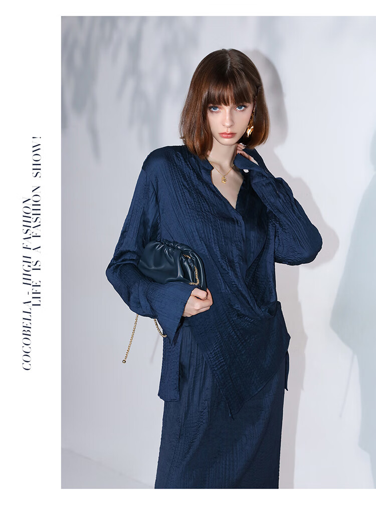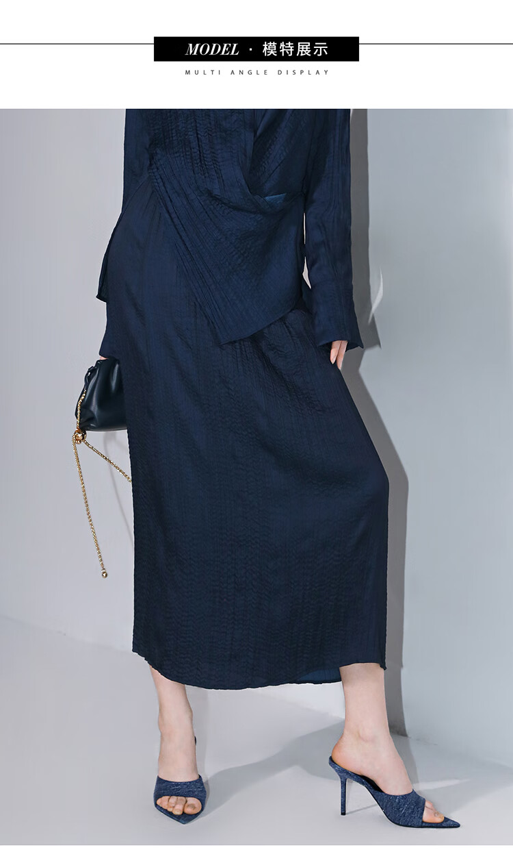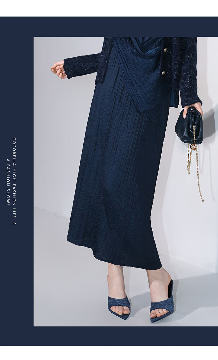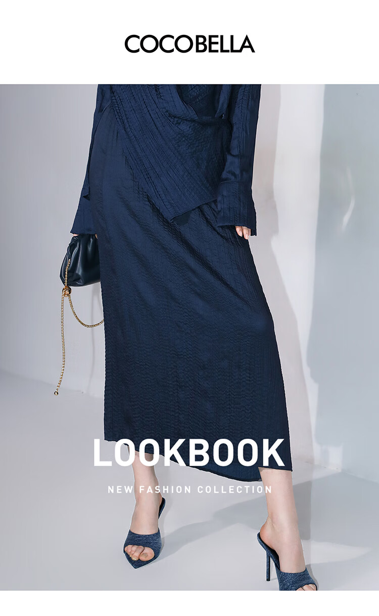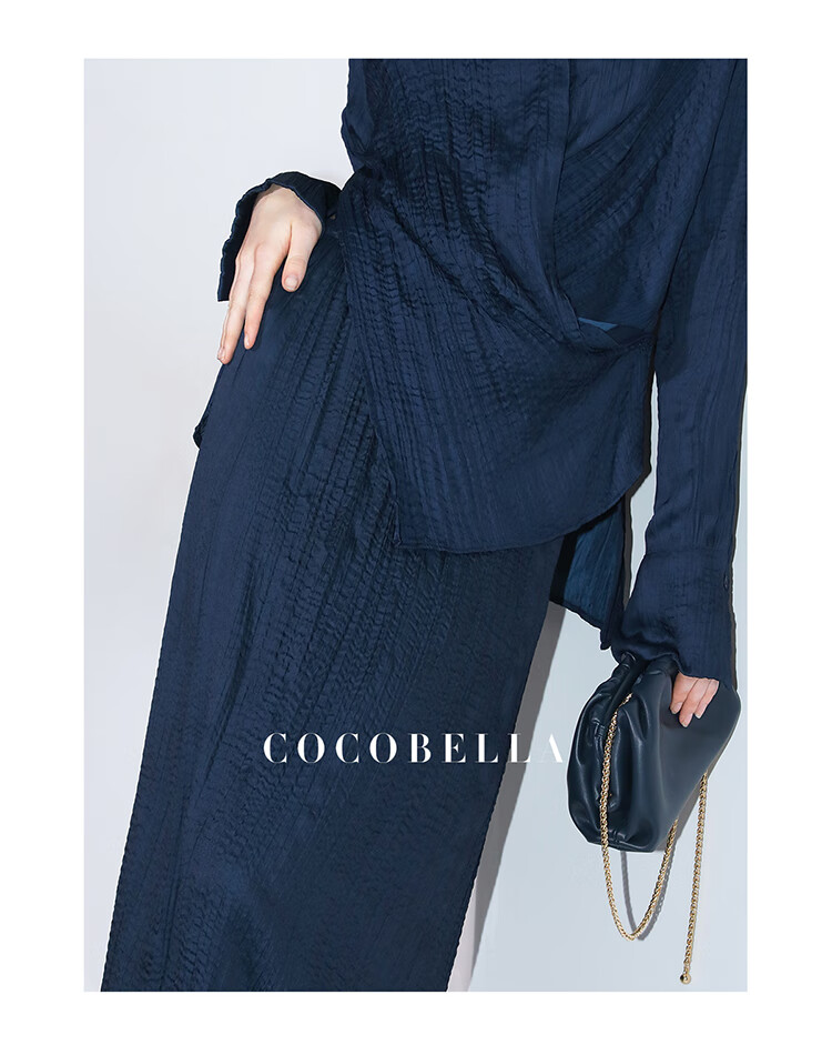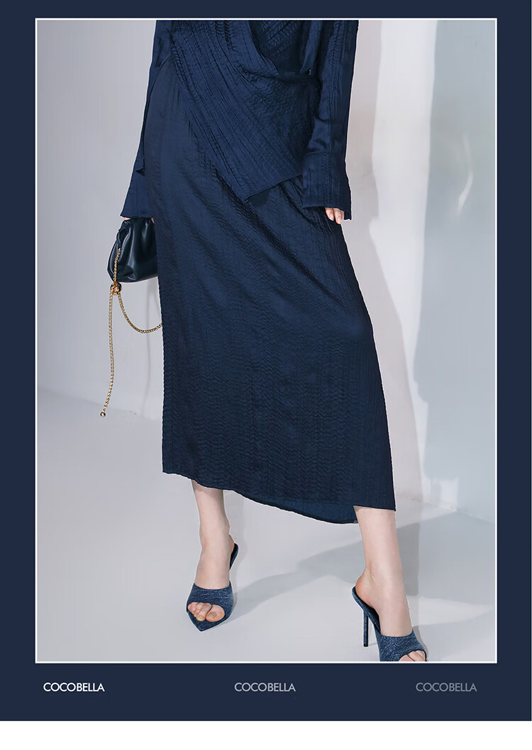 COCOBELLA丝光缎面压褶气质通勤半身裙温柔垂顺遮胯筒裙HS7026C