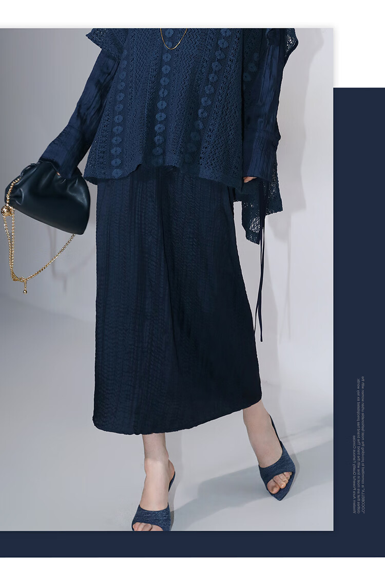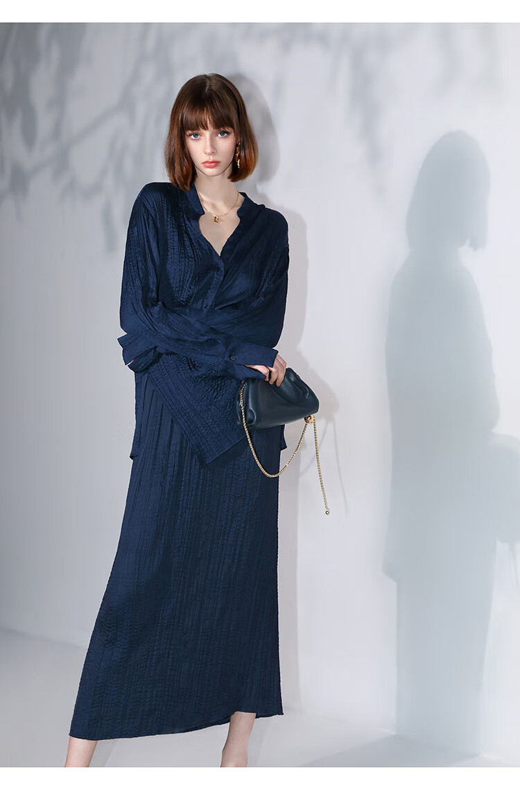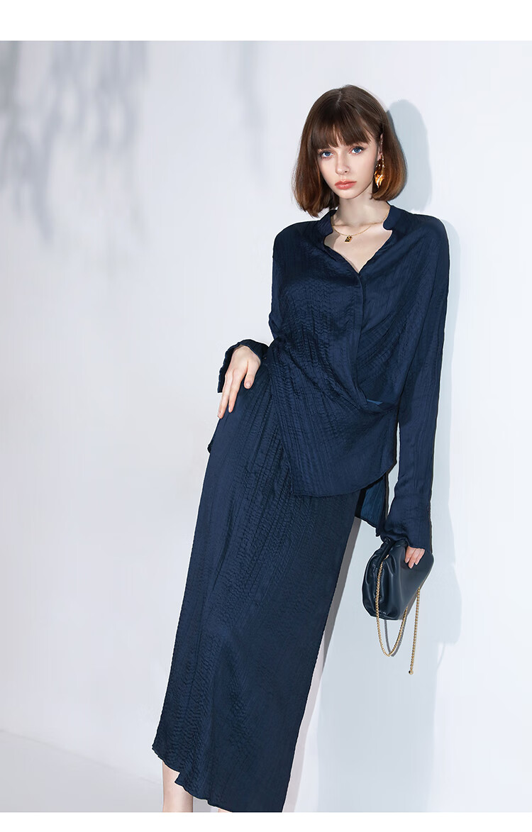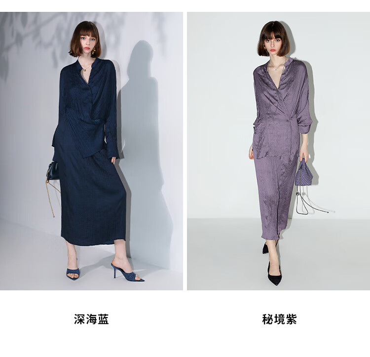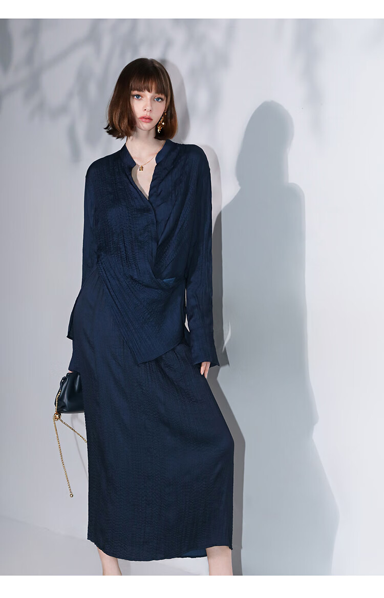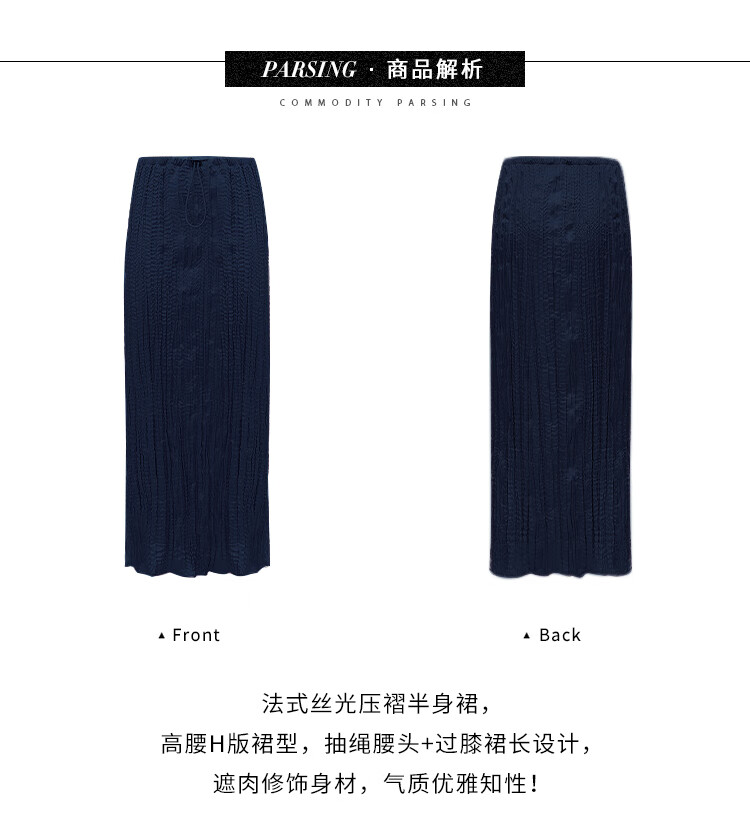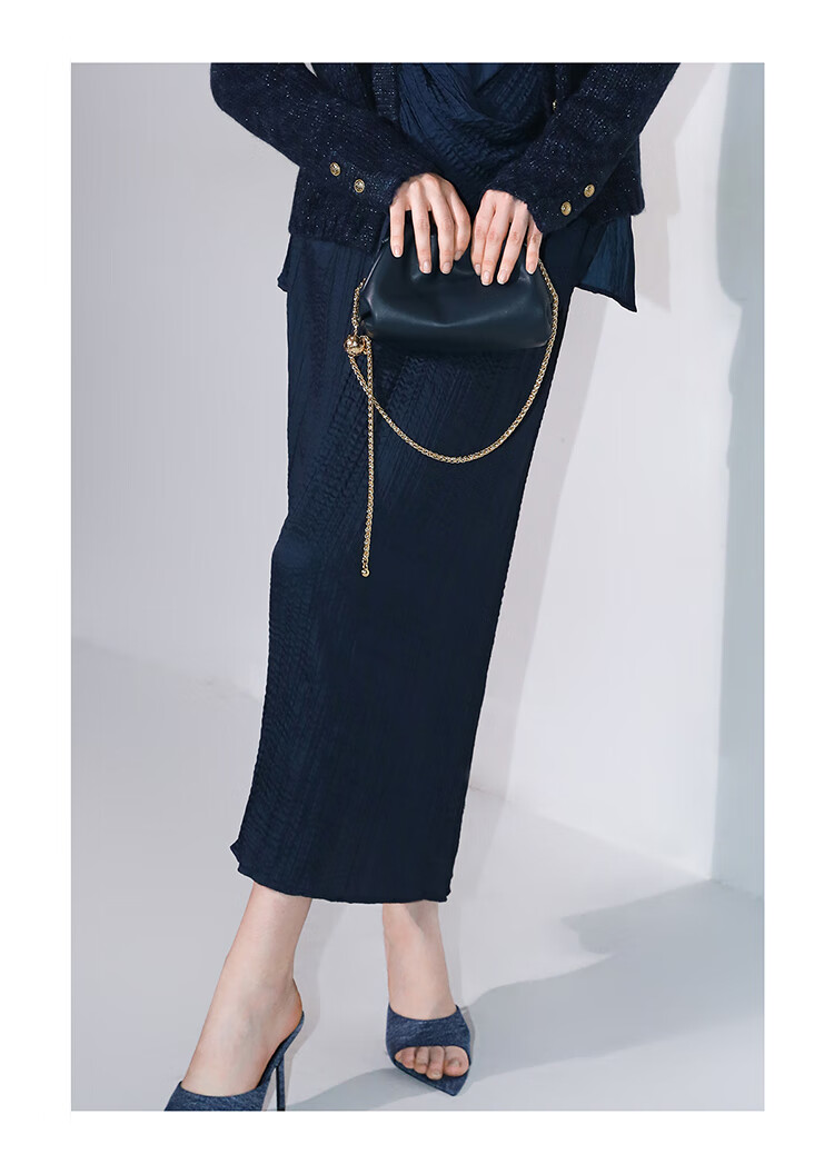 COCOBELLA丝光缎面压褶气质通勤半身裙温柔垂顺遮胯筒裙HS7026C