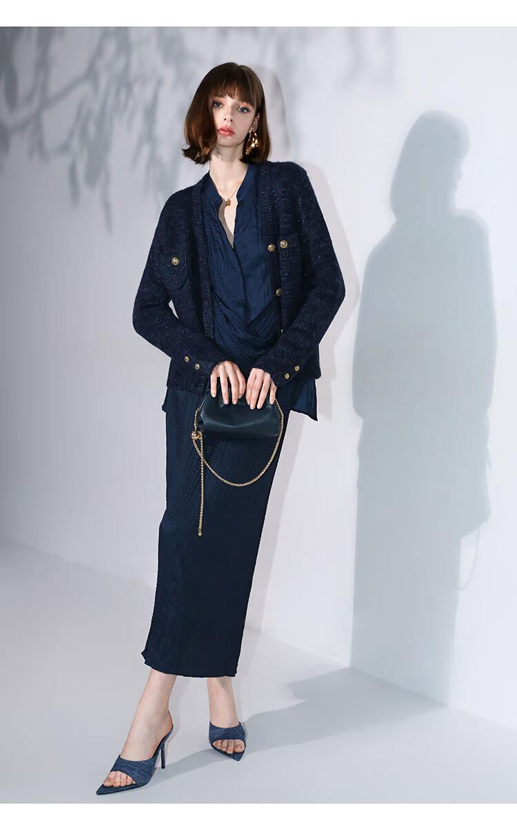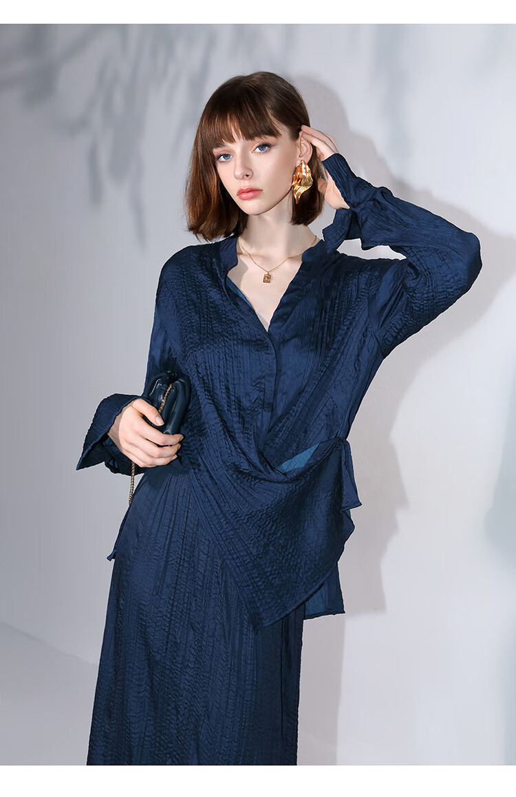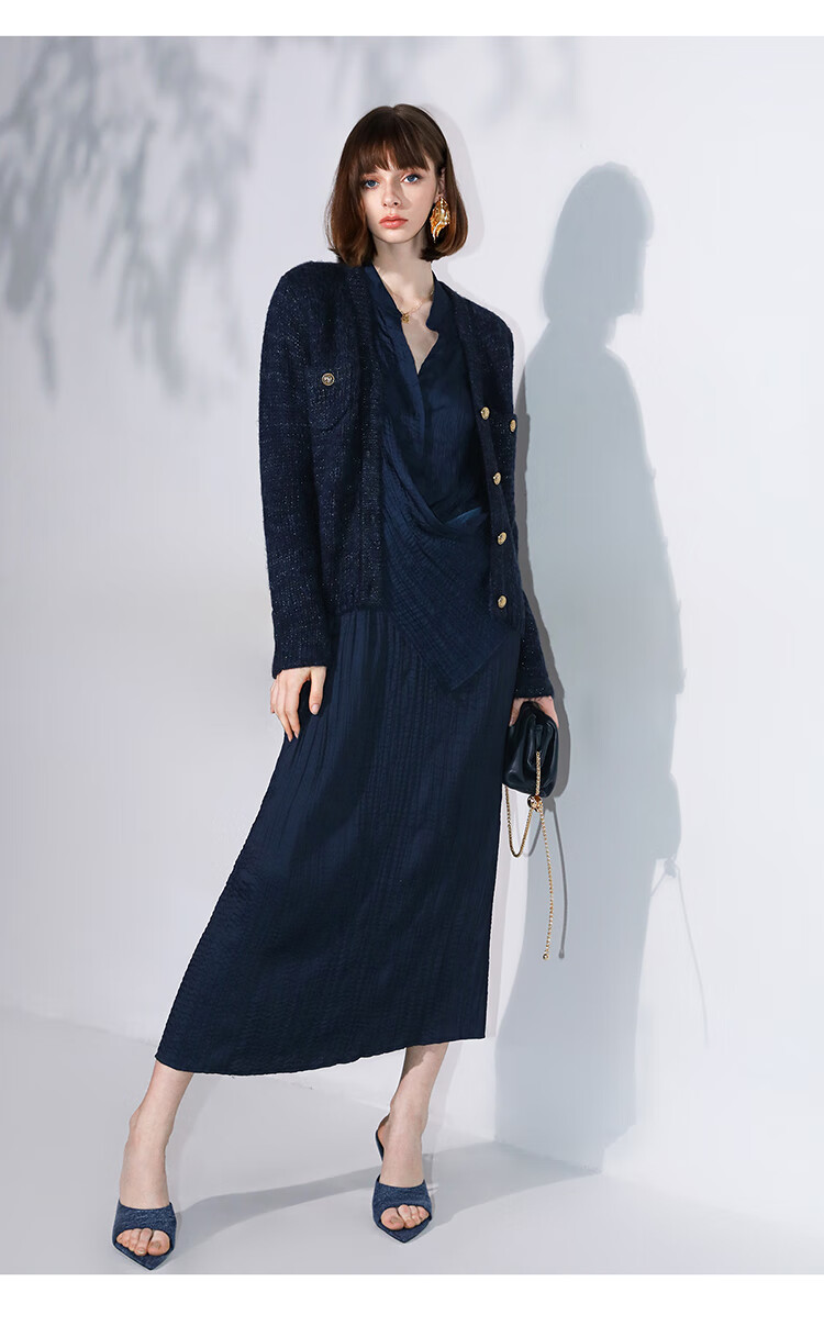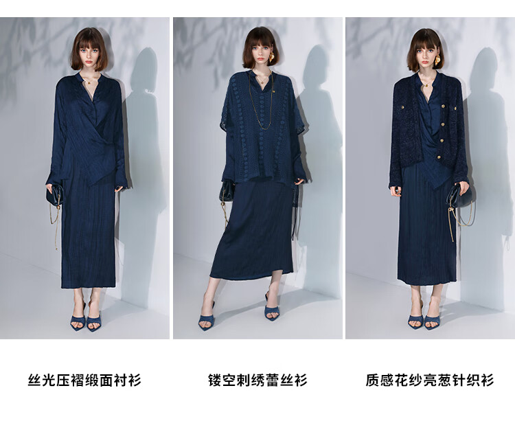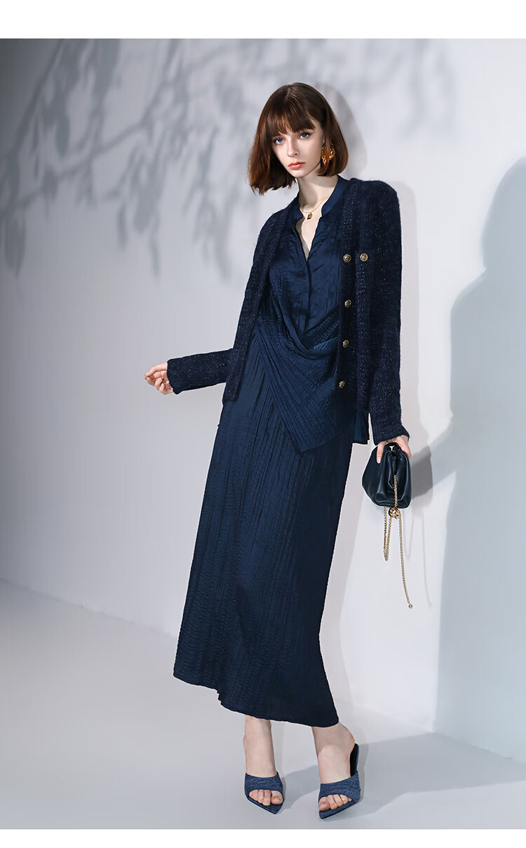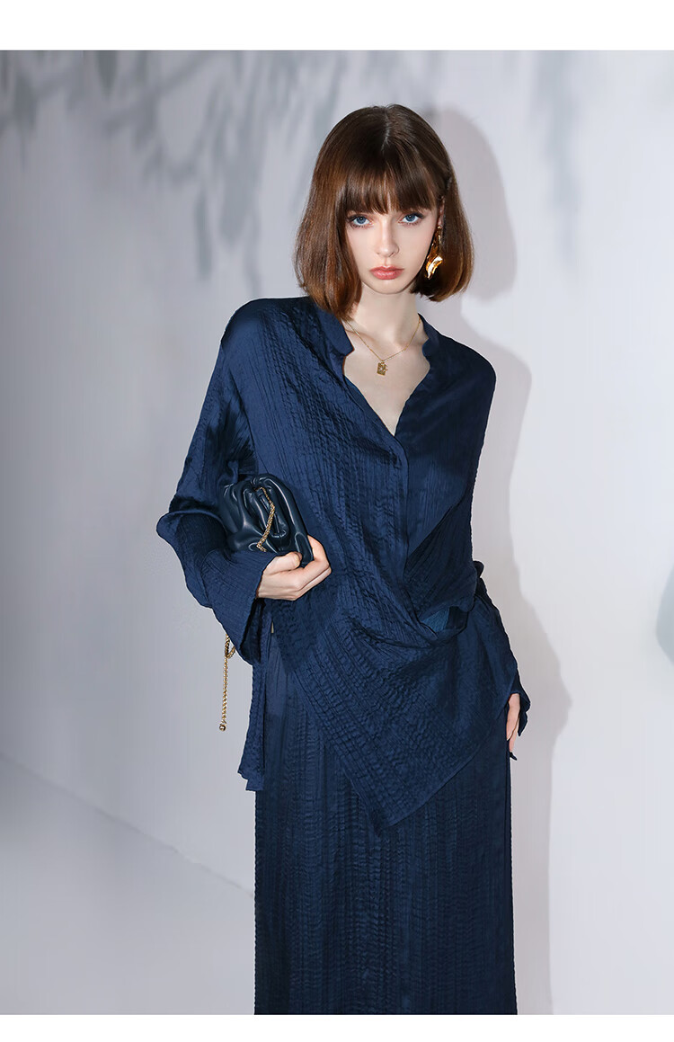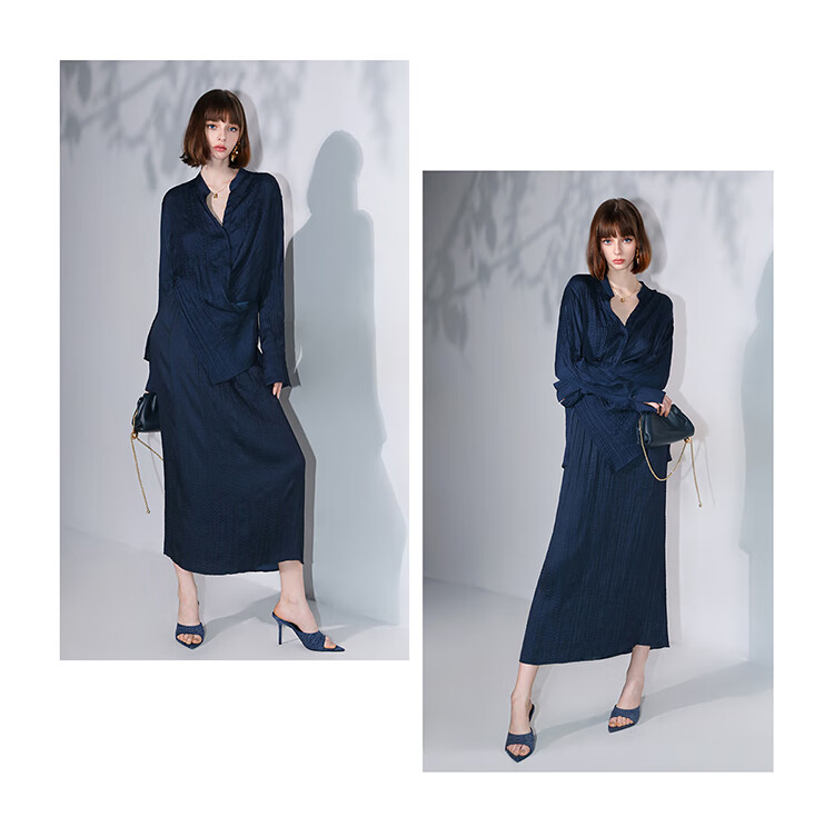 COCOBELLA丝光缎面压褶气质通勤半身裙温柔垂顺遮胯筒裙HS7026C