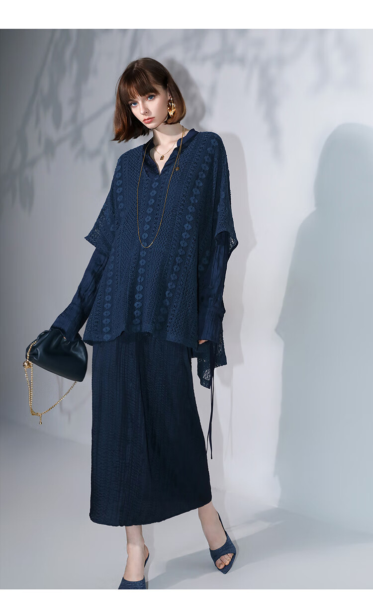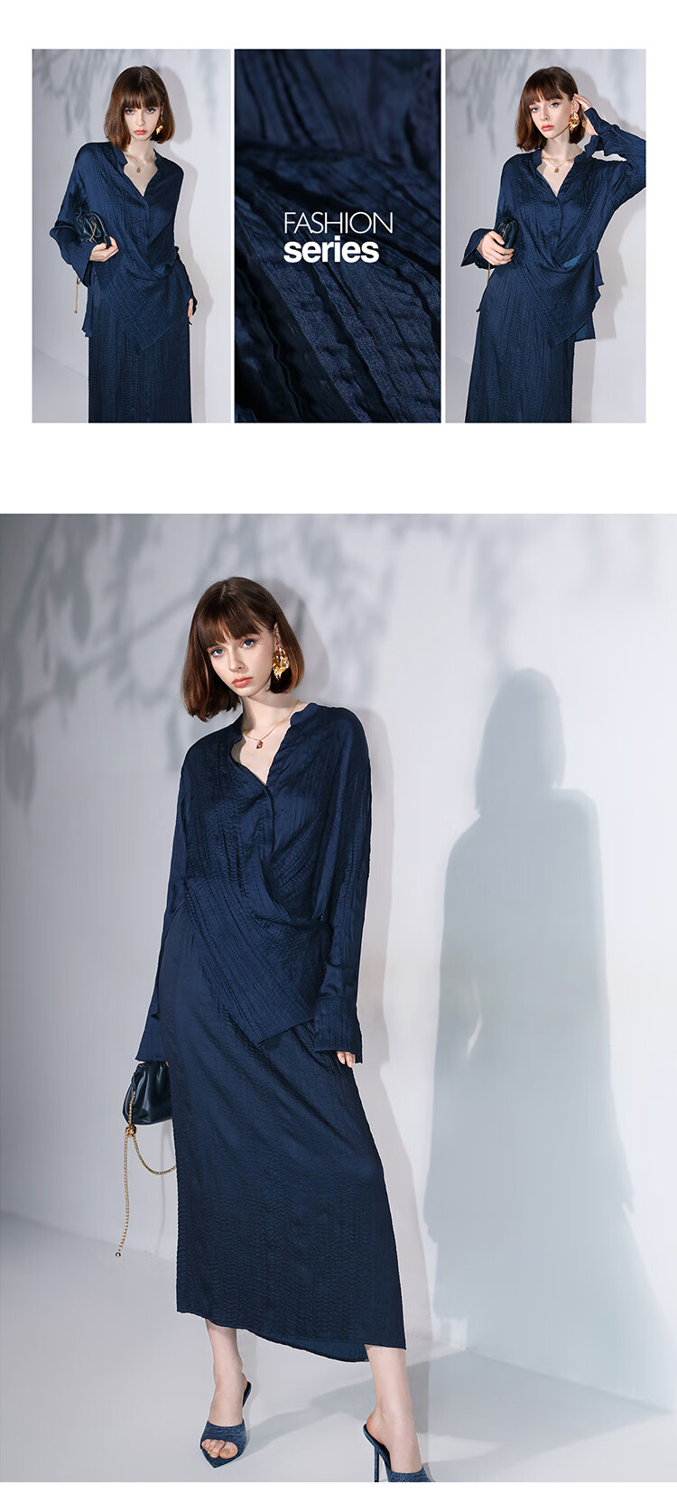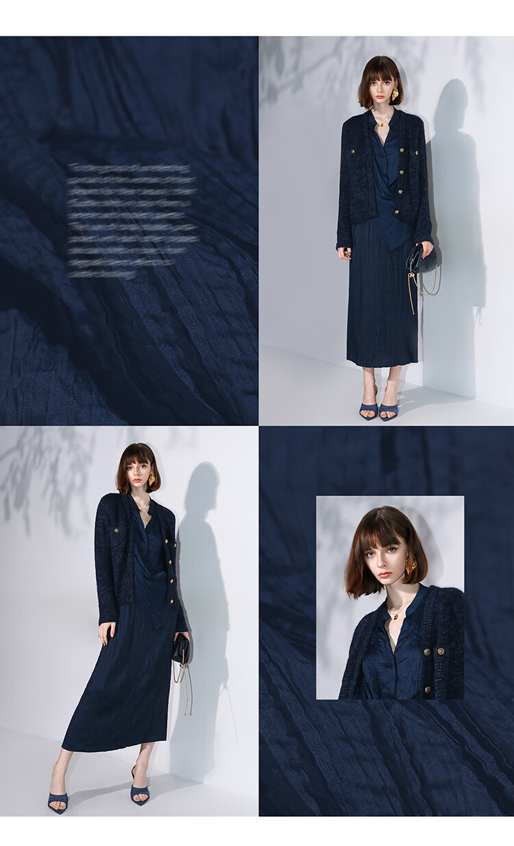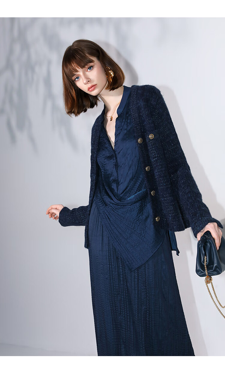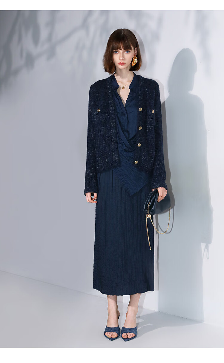 COCOBELLA丝光缎面压褶气质通勤半身裙温柔垂顺遮胯筒裙HS7026C