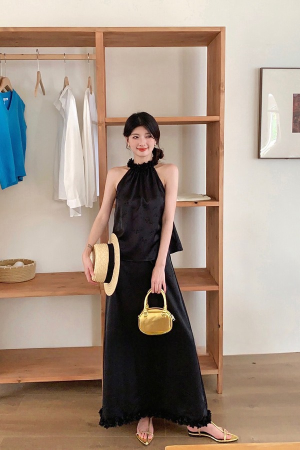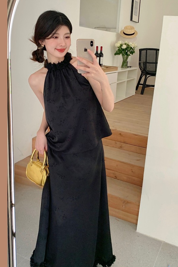 ELLA JADE 优雅立体花朵挂脖背心+高腰显瘦半身裙 20479
