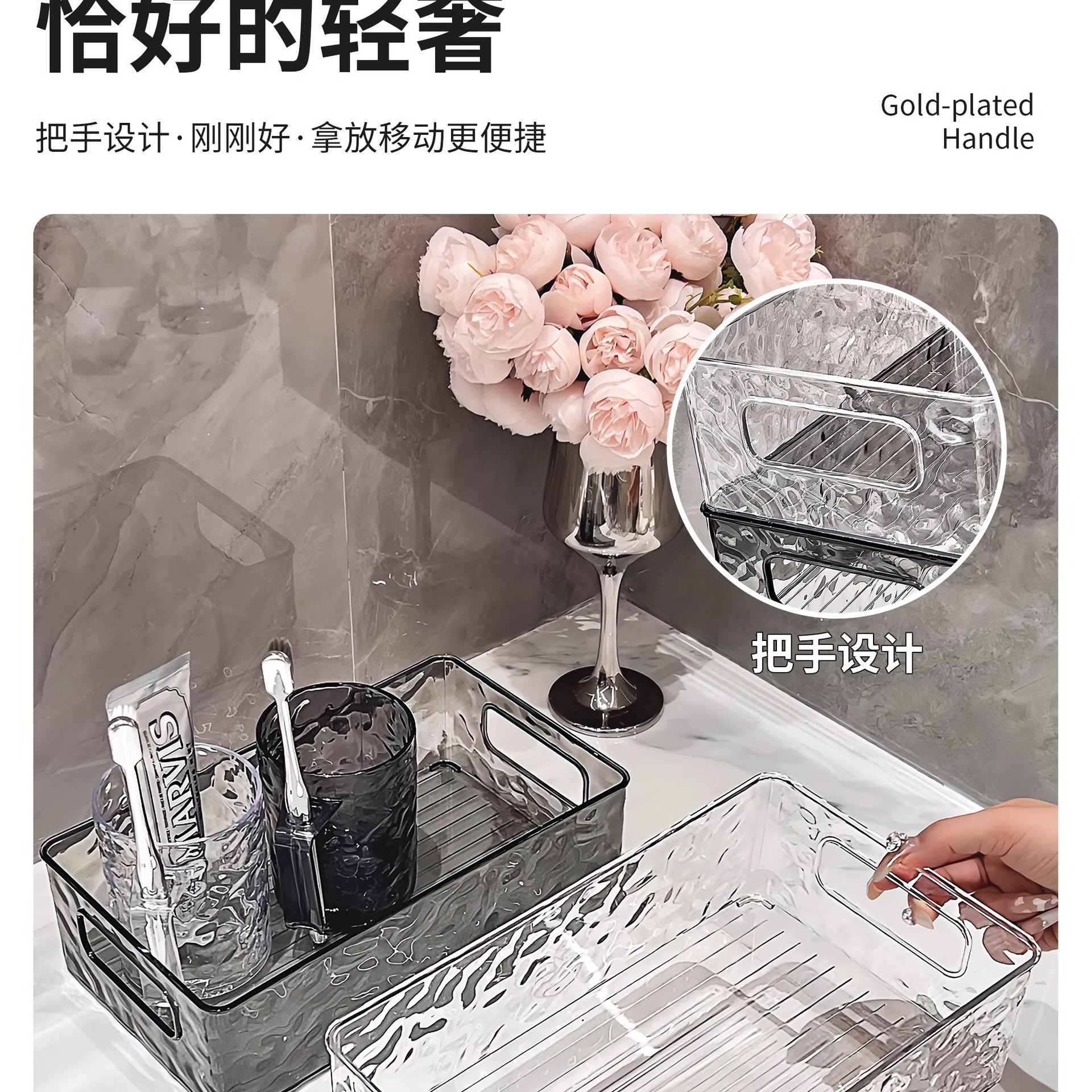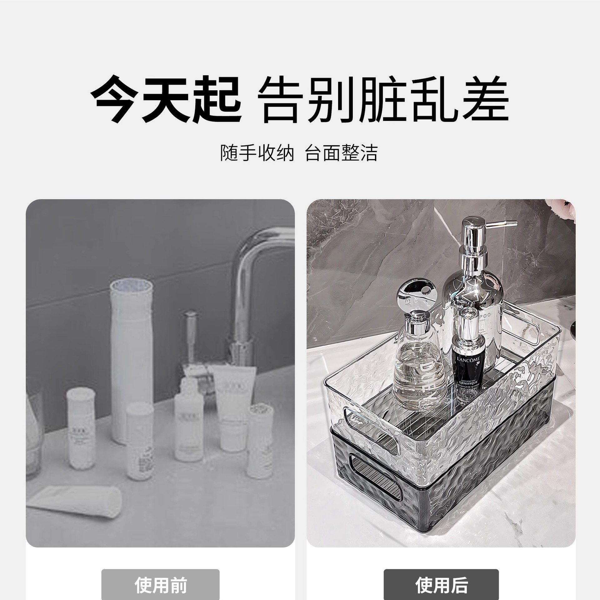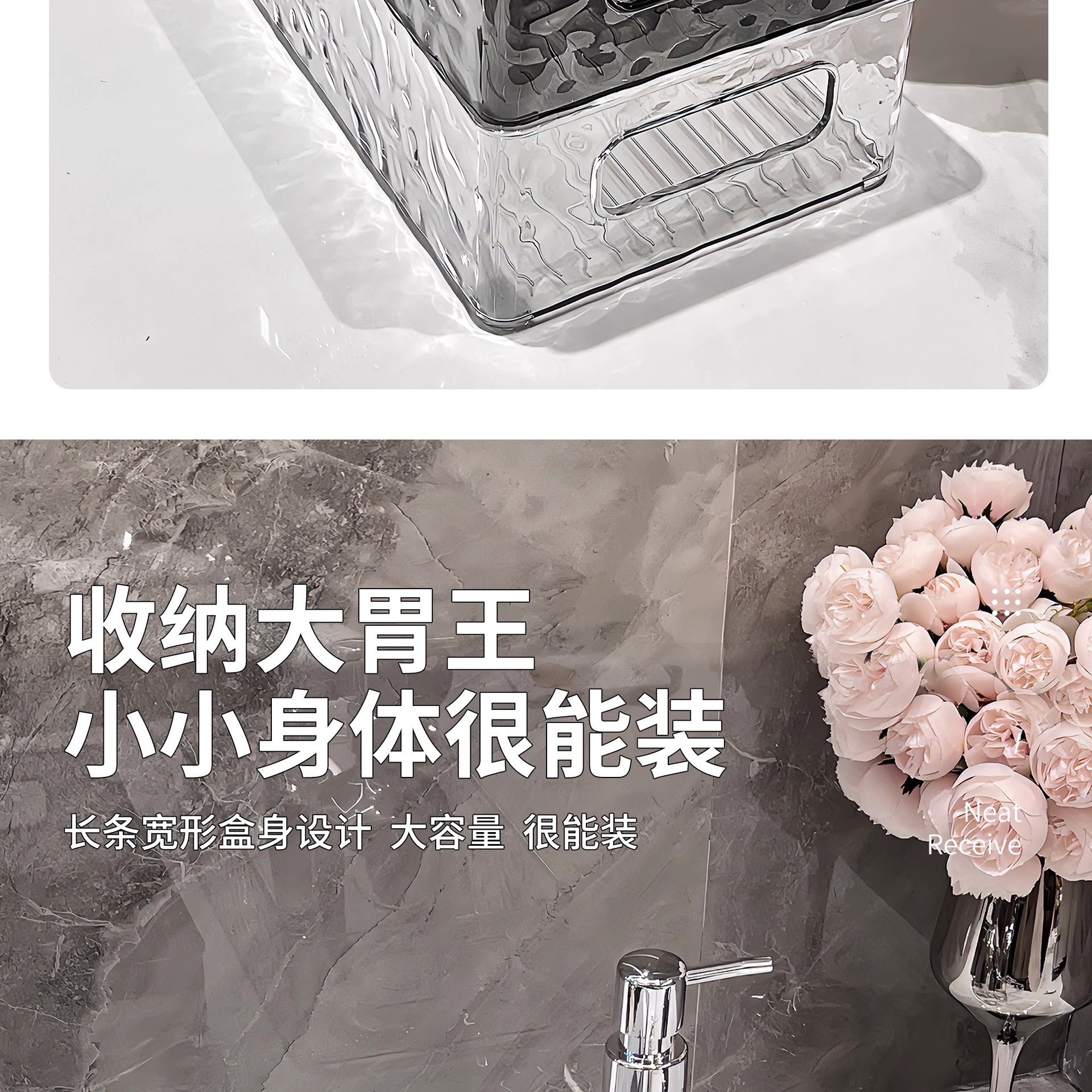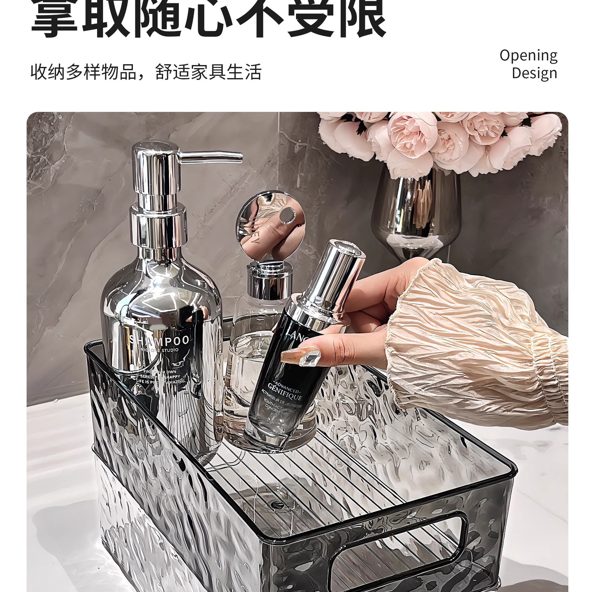 冰川纹化妆品收纳盒 轻奢高颜值卫生间桌面整理盒 塑料带提手收纳筐