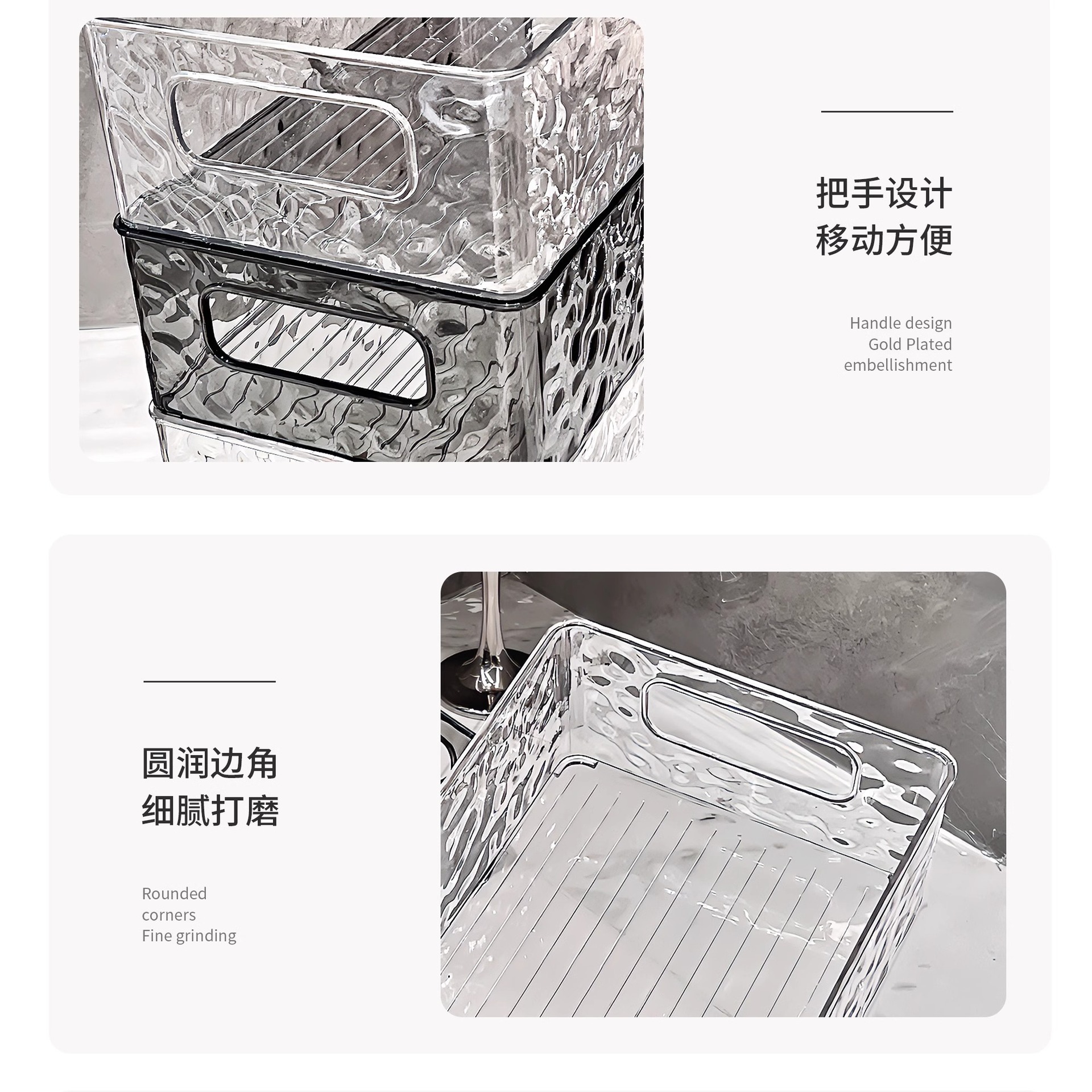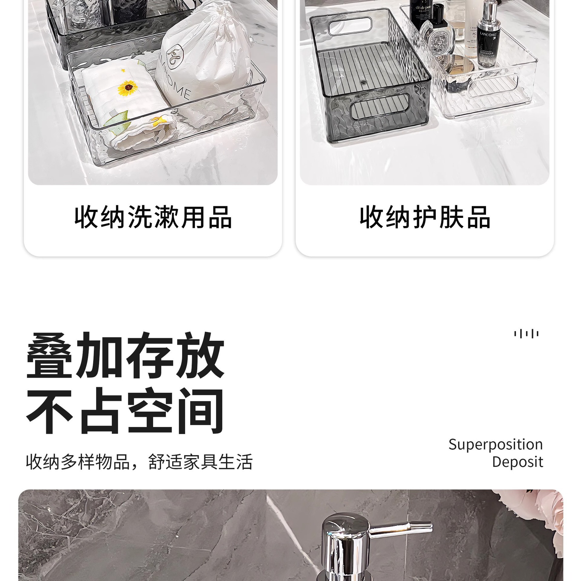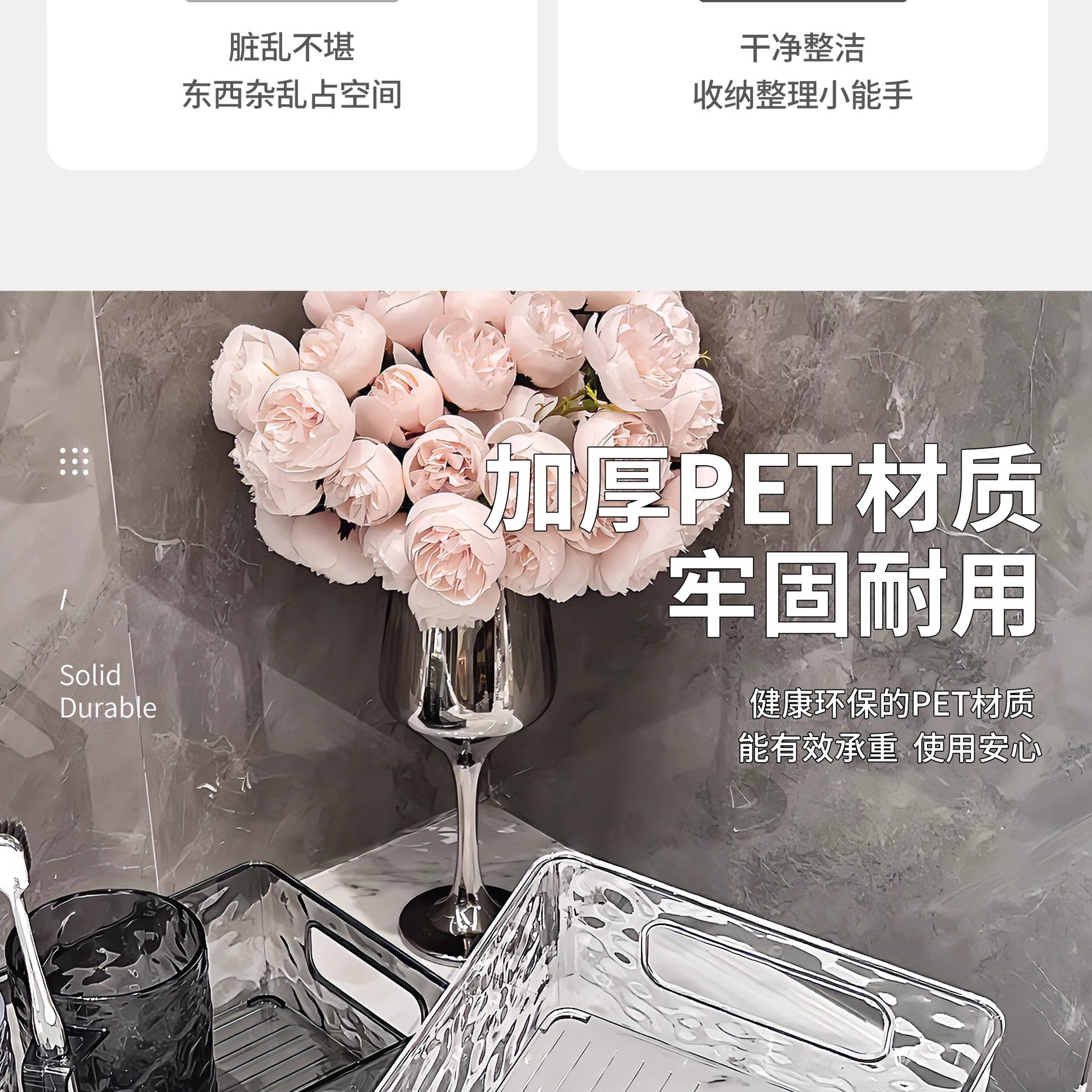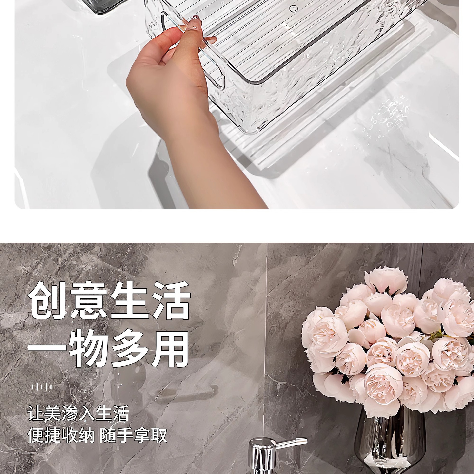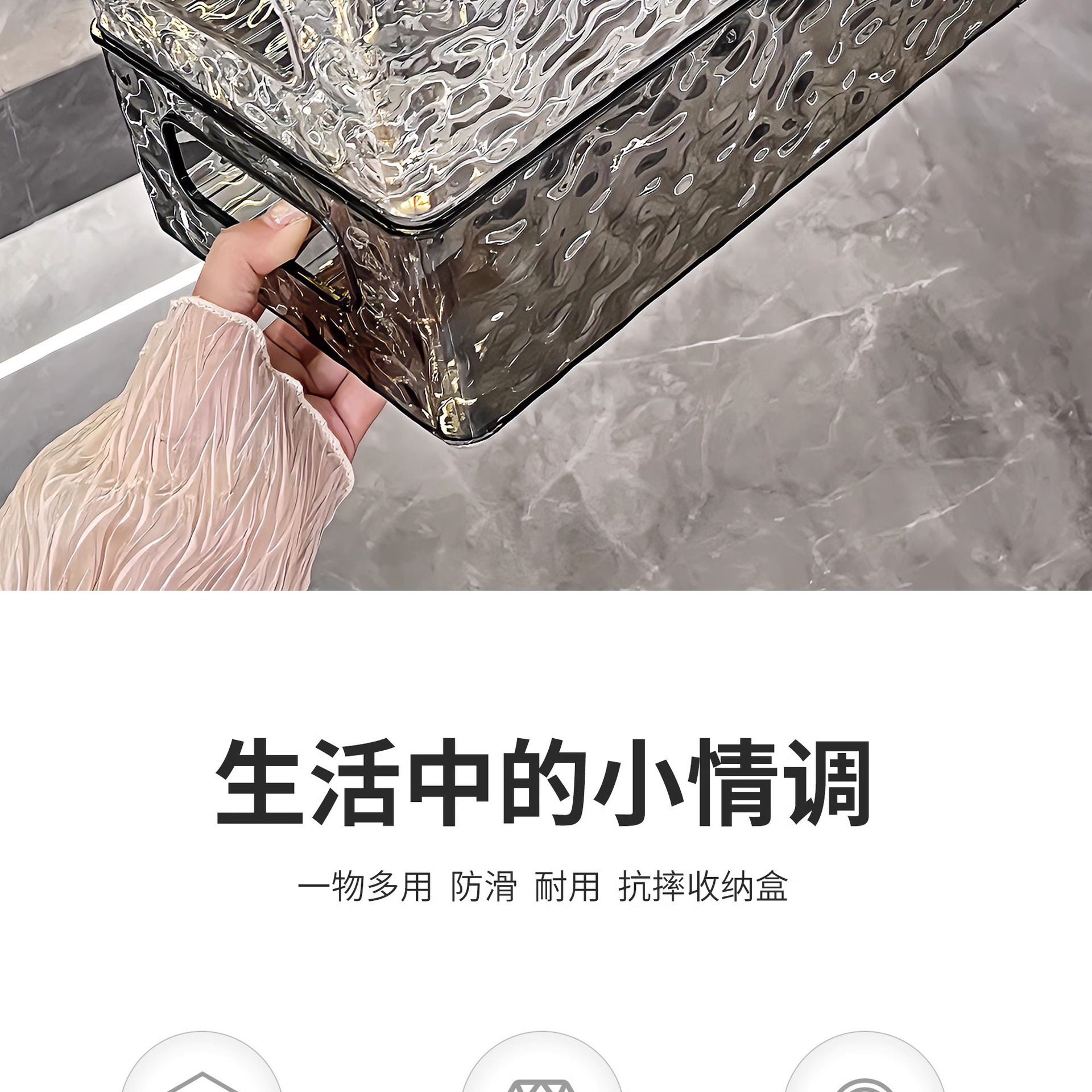 冰川纹化妆品收纳盒 轻奢高颜值卫生间桌面整理盒 塑料带提手收纳筐