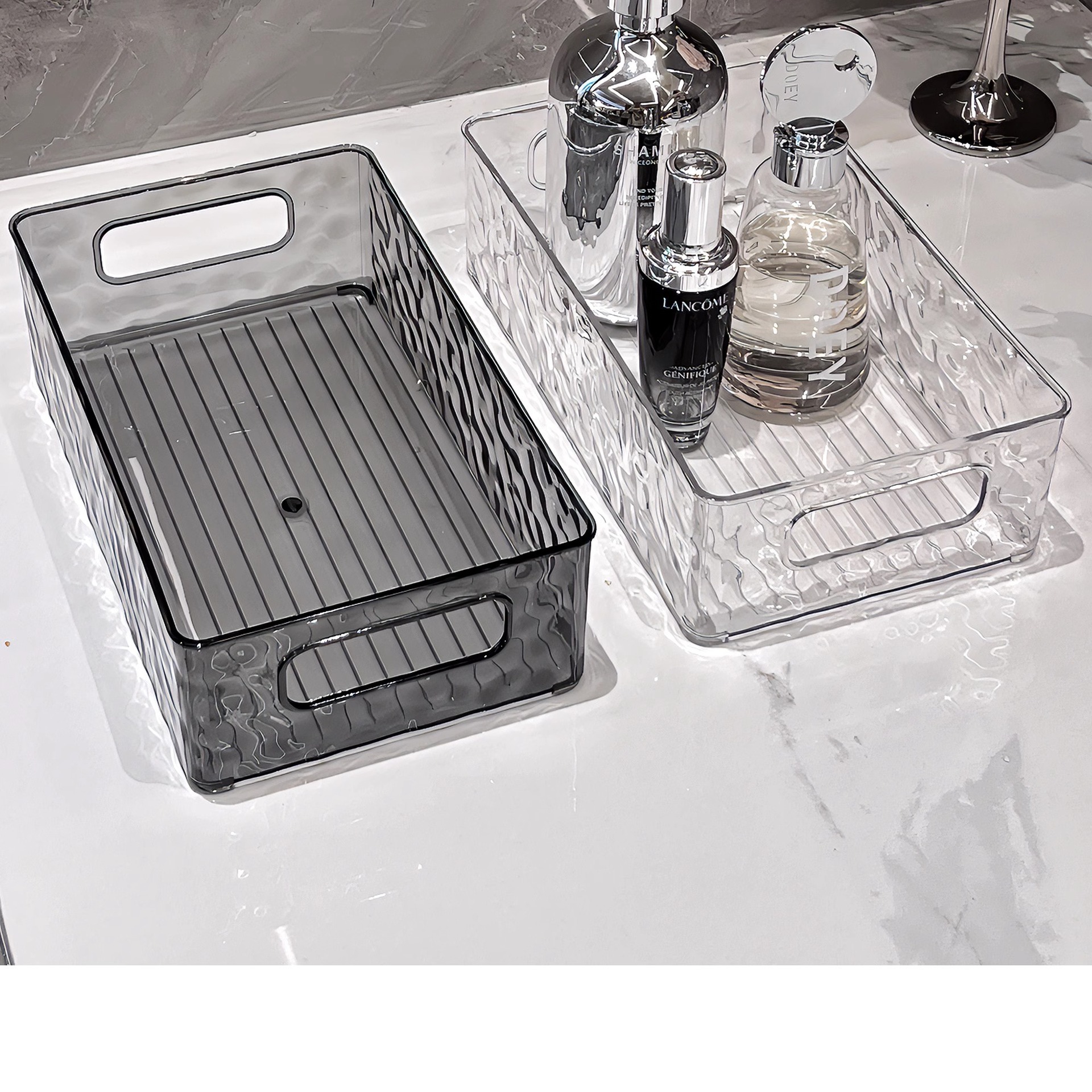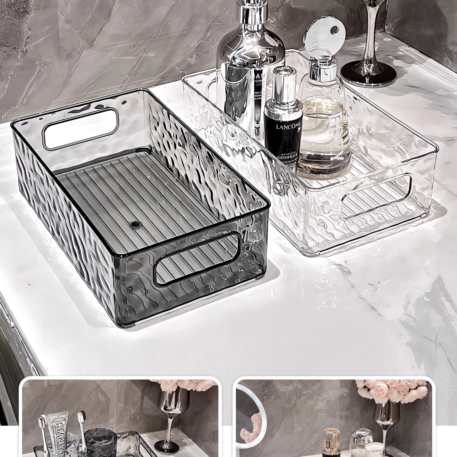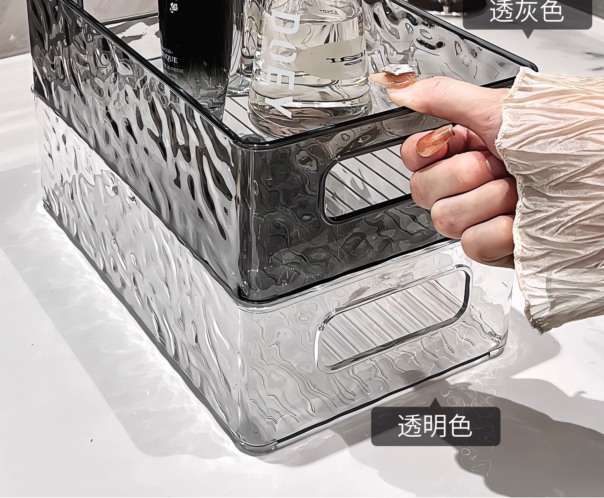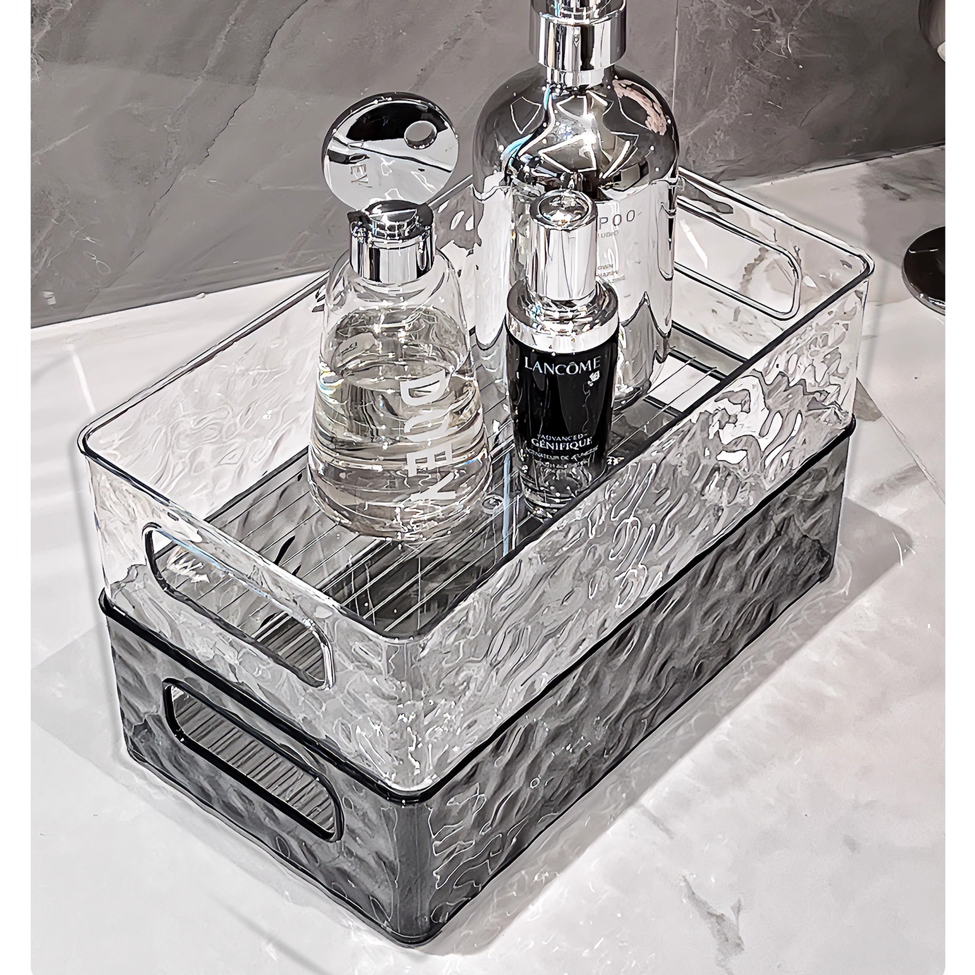 冰川纹化妆品收纳盒 轻奢高颜值卫生间桌面整理盒 塑料带提手收纳筐