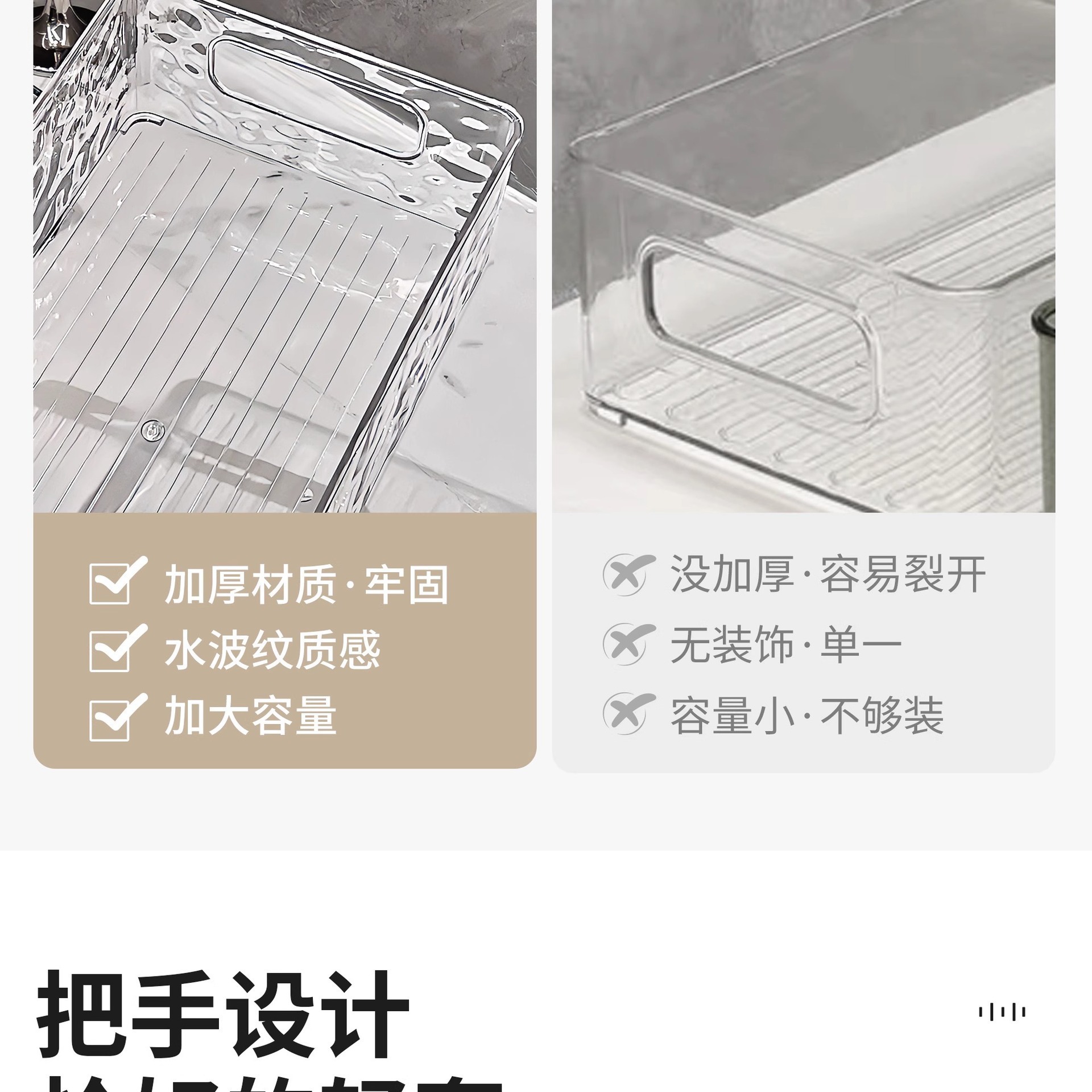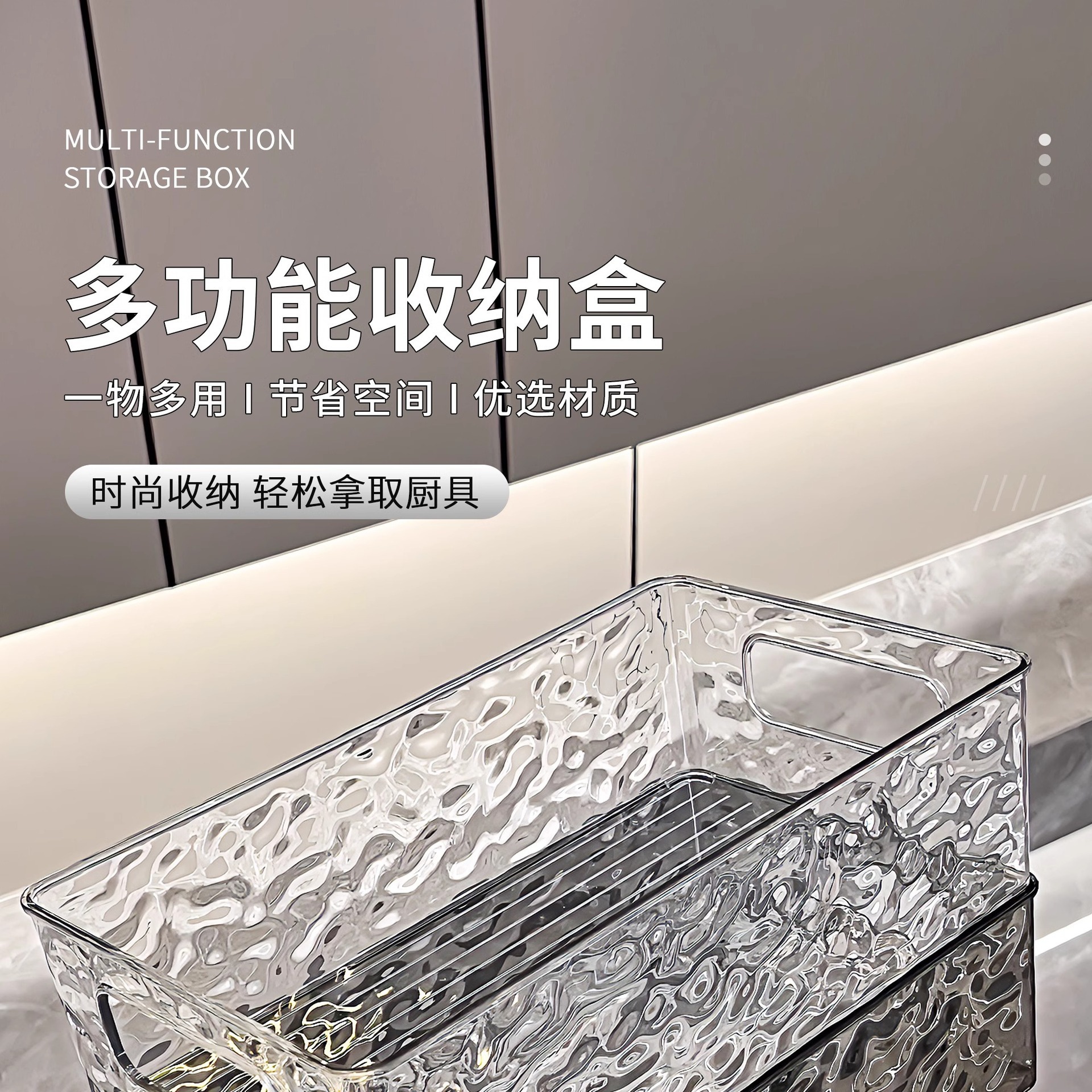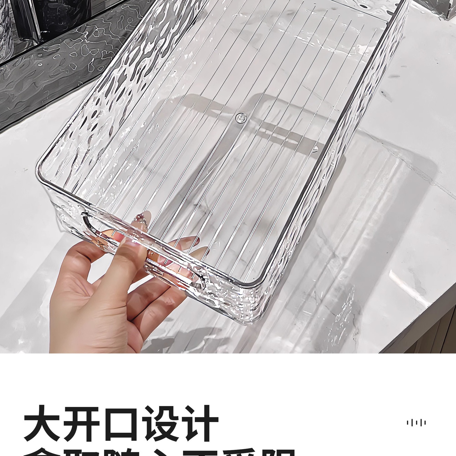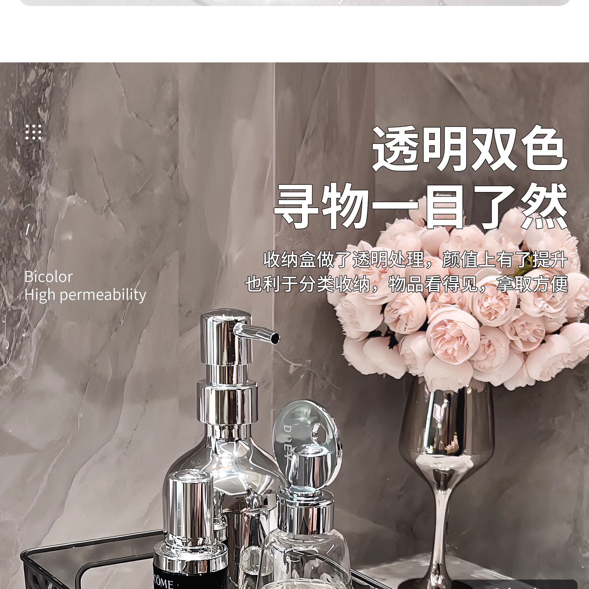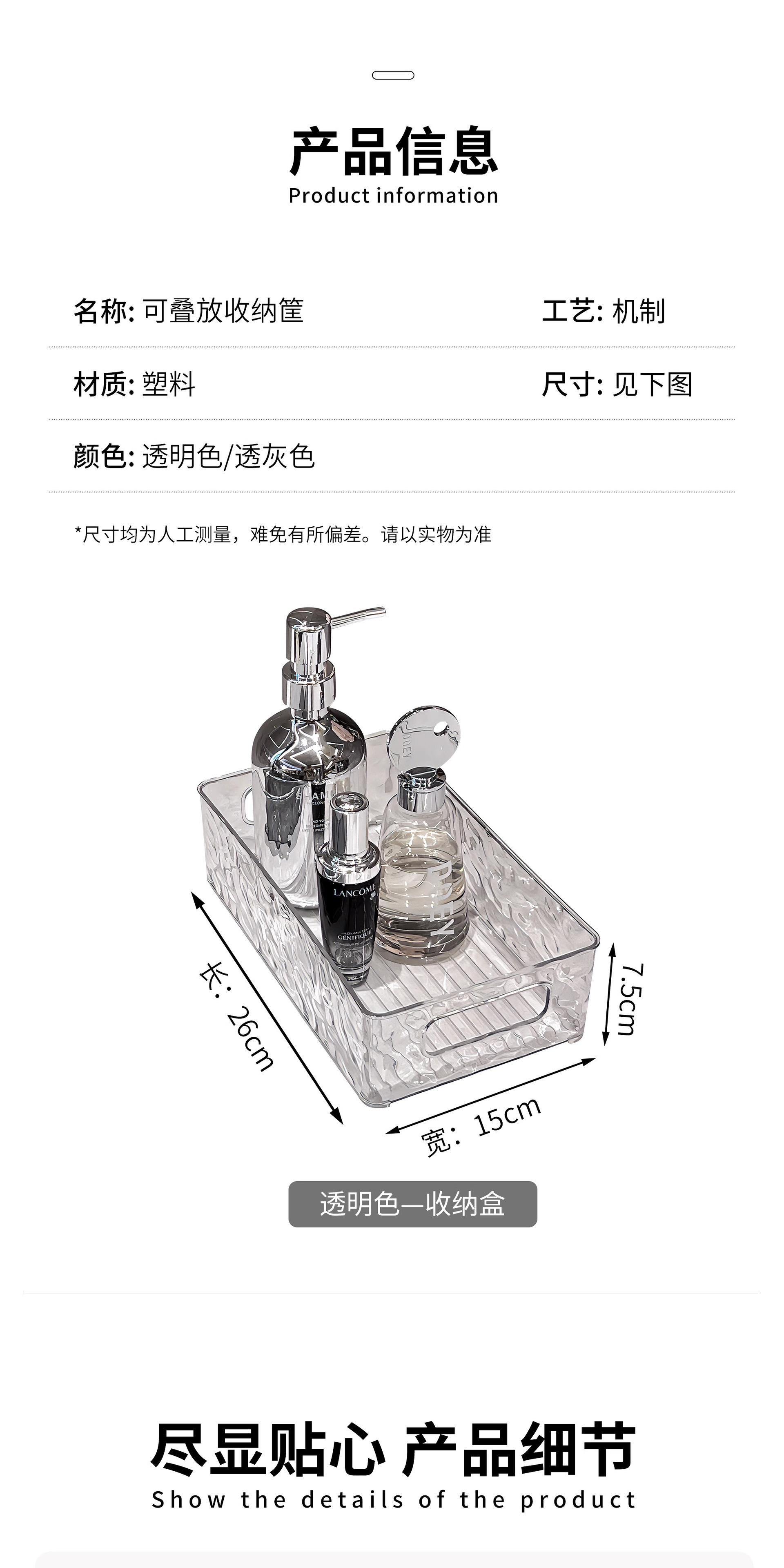 冰川纹化妆品收纳盒 轻奢高颜值卫生间桌面整理盒 塑料带提手收纳筐