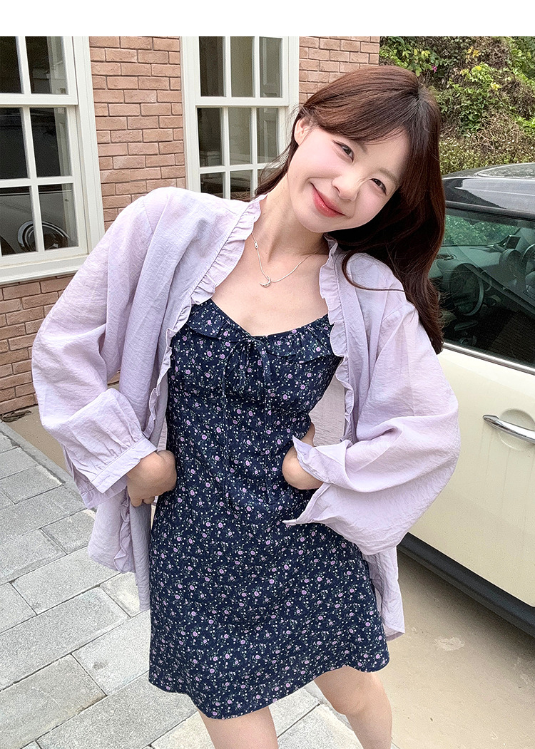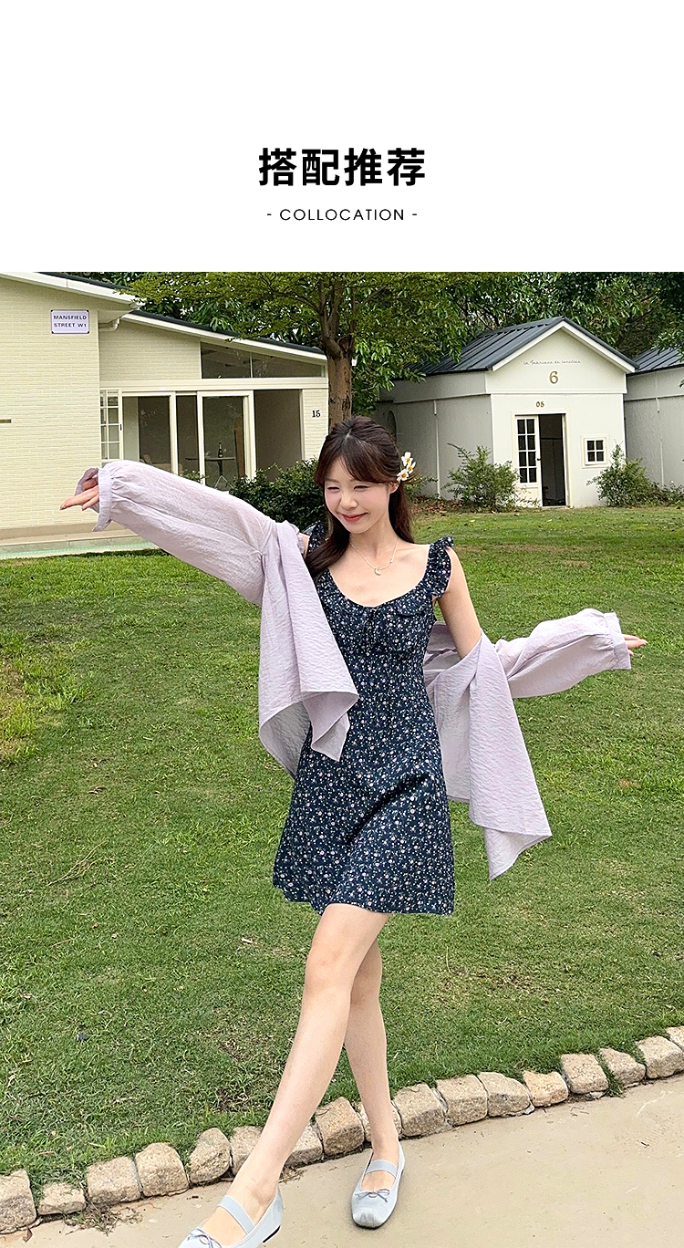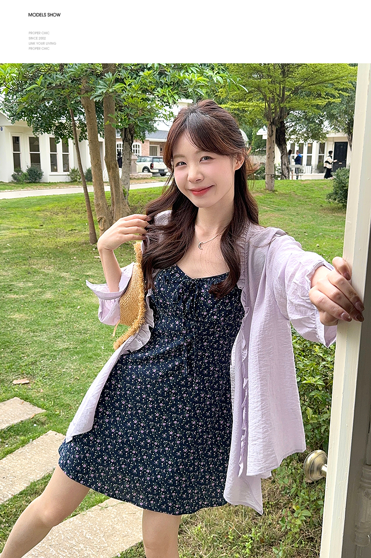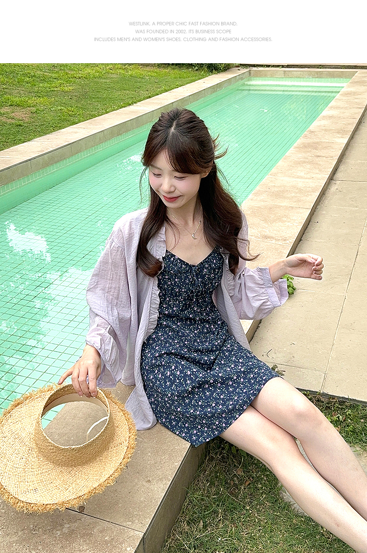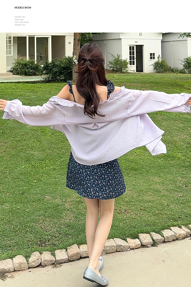 西遇薄款宽松衬衫套装女夏季新款荷叶边碎花吊带裙两件套SS050482/SS050483