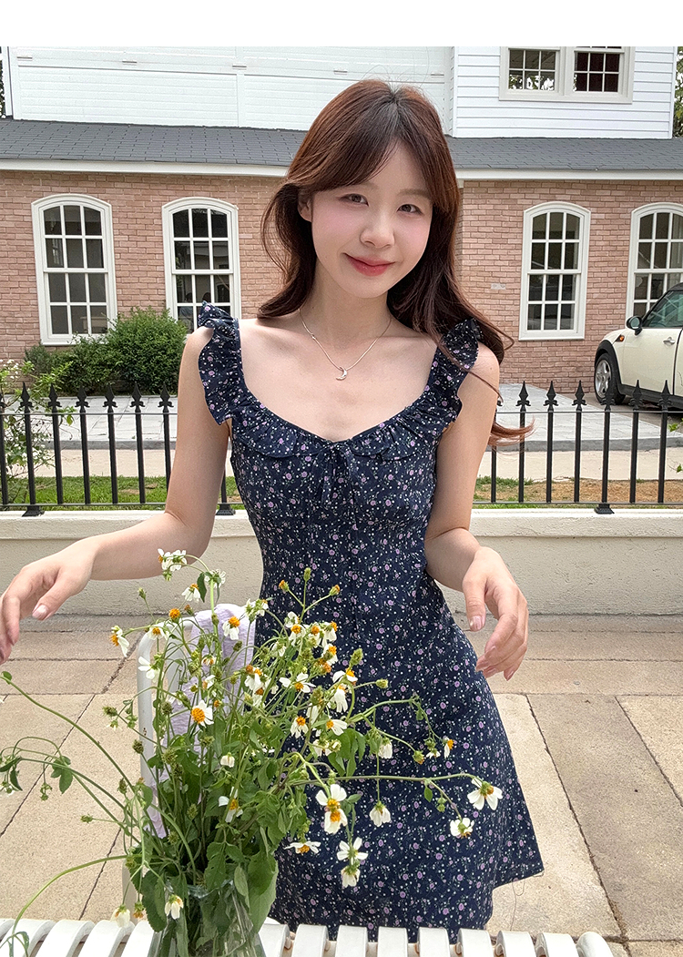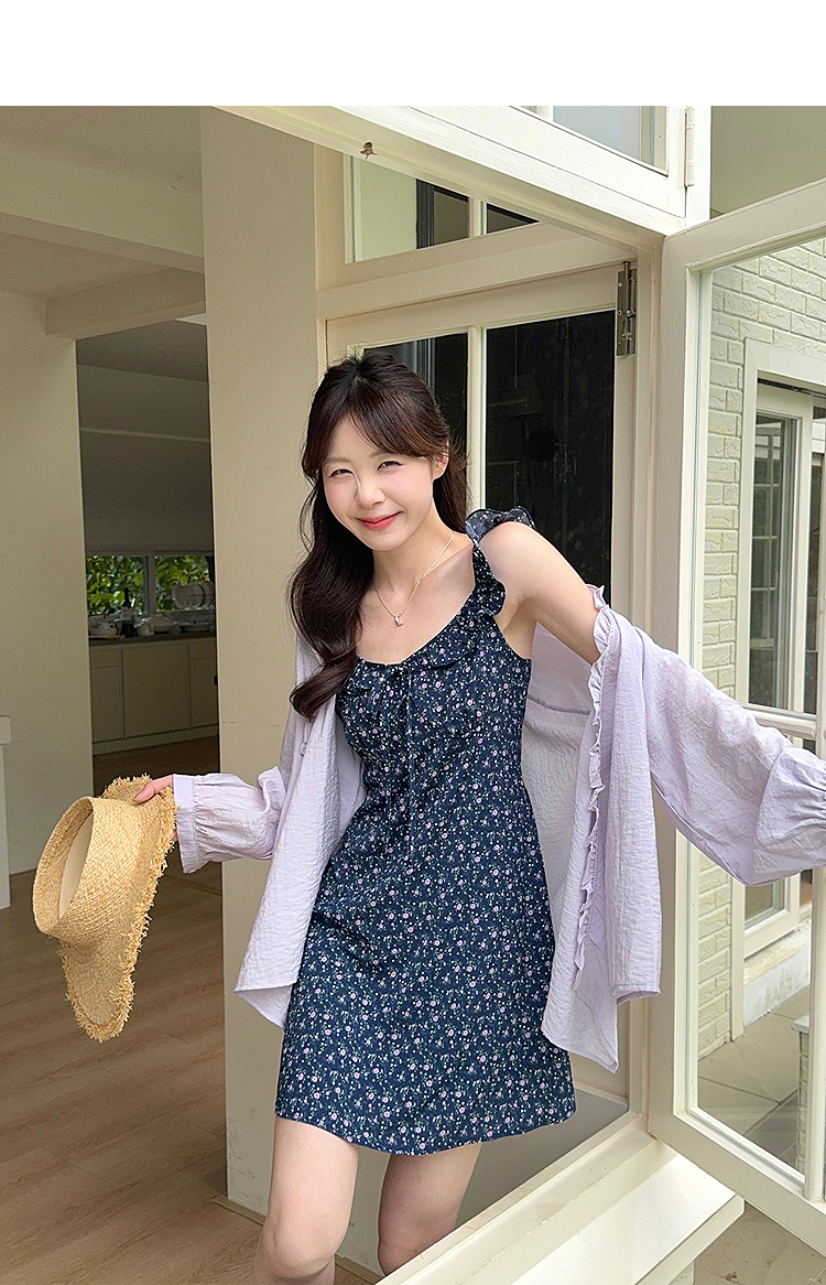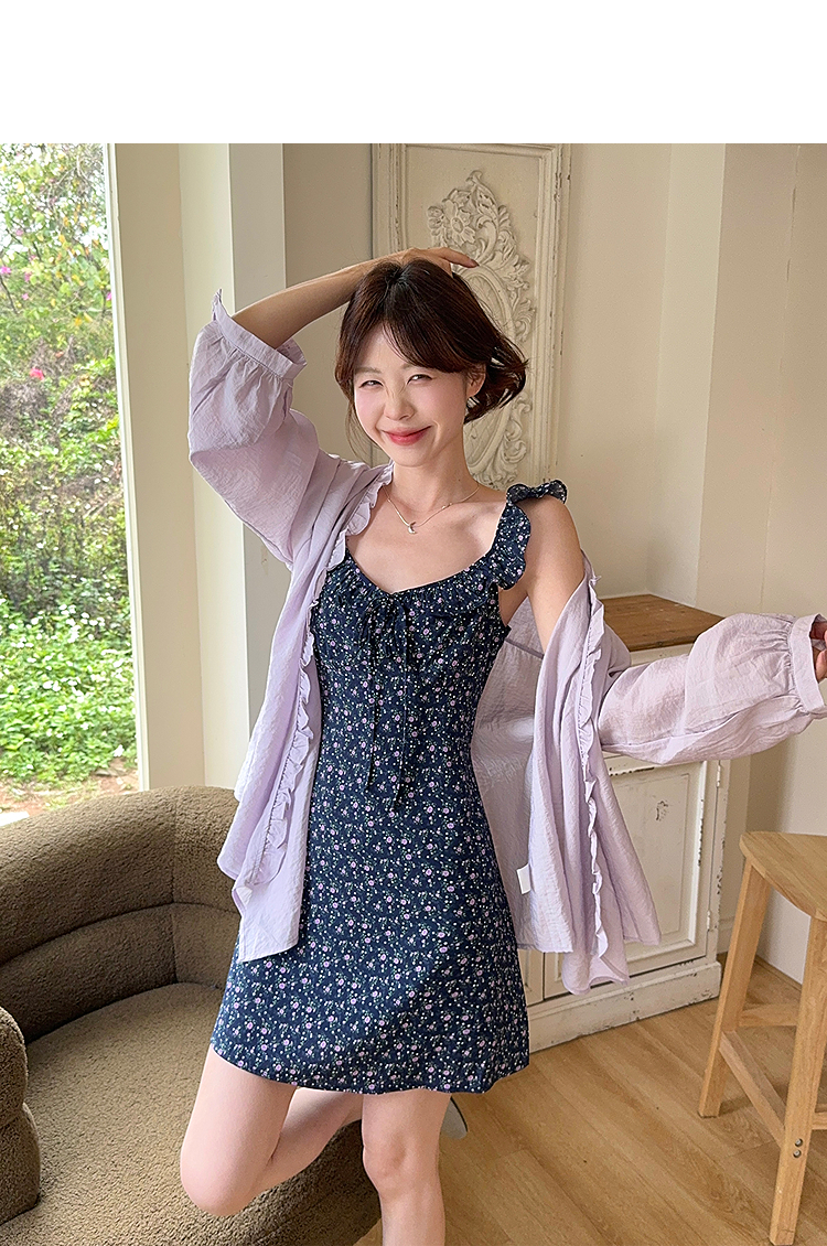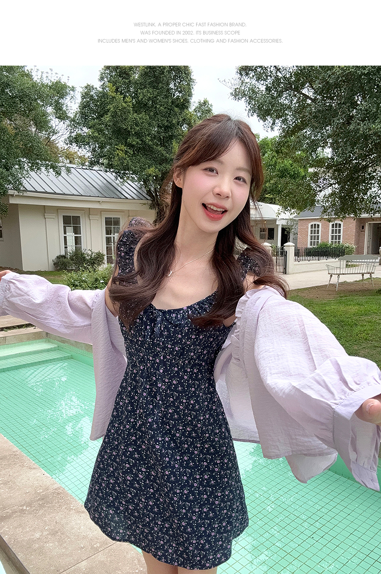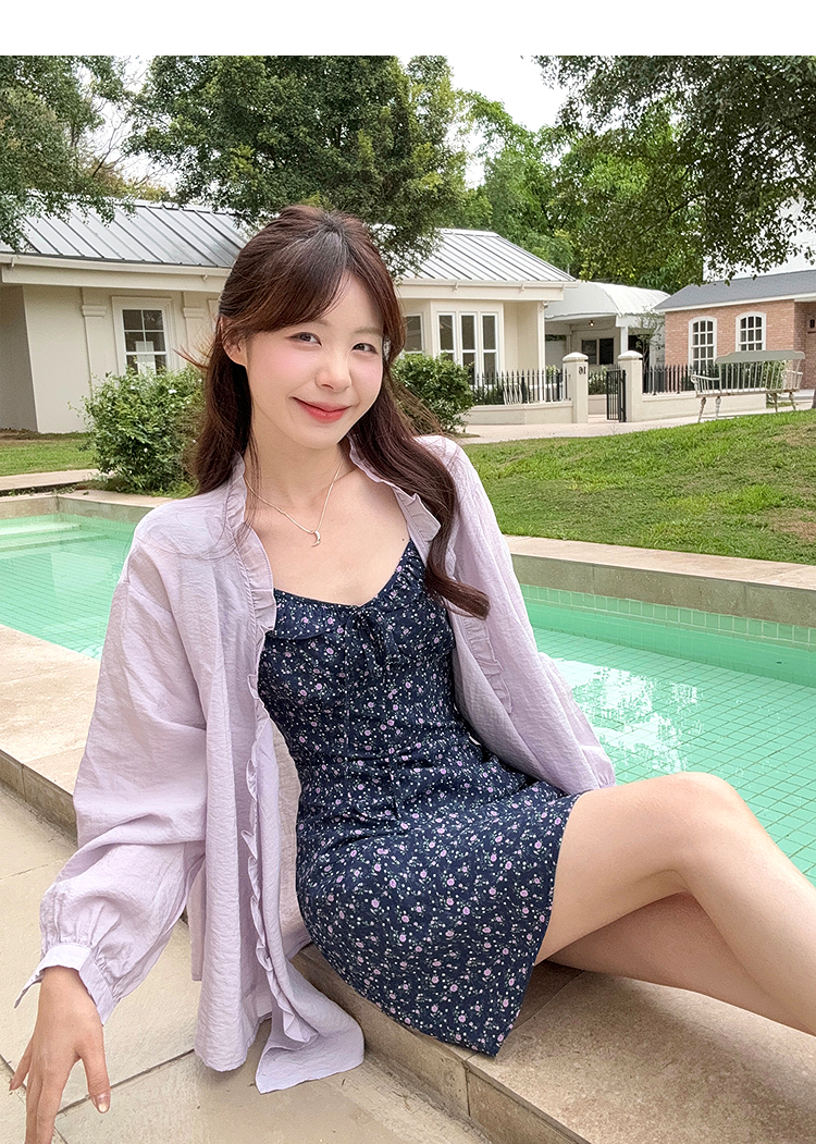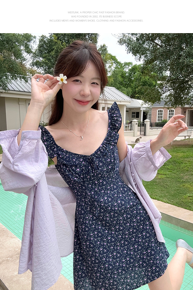 西遇薄款宽松衬衫套装女夏季新款荷叶边碎花吊带裙两件套SS050482/SS050483