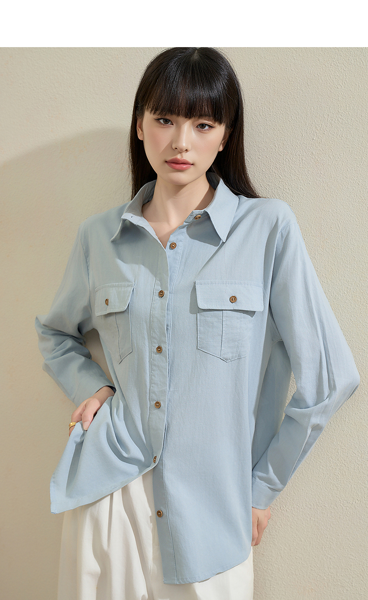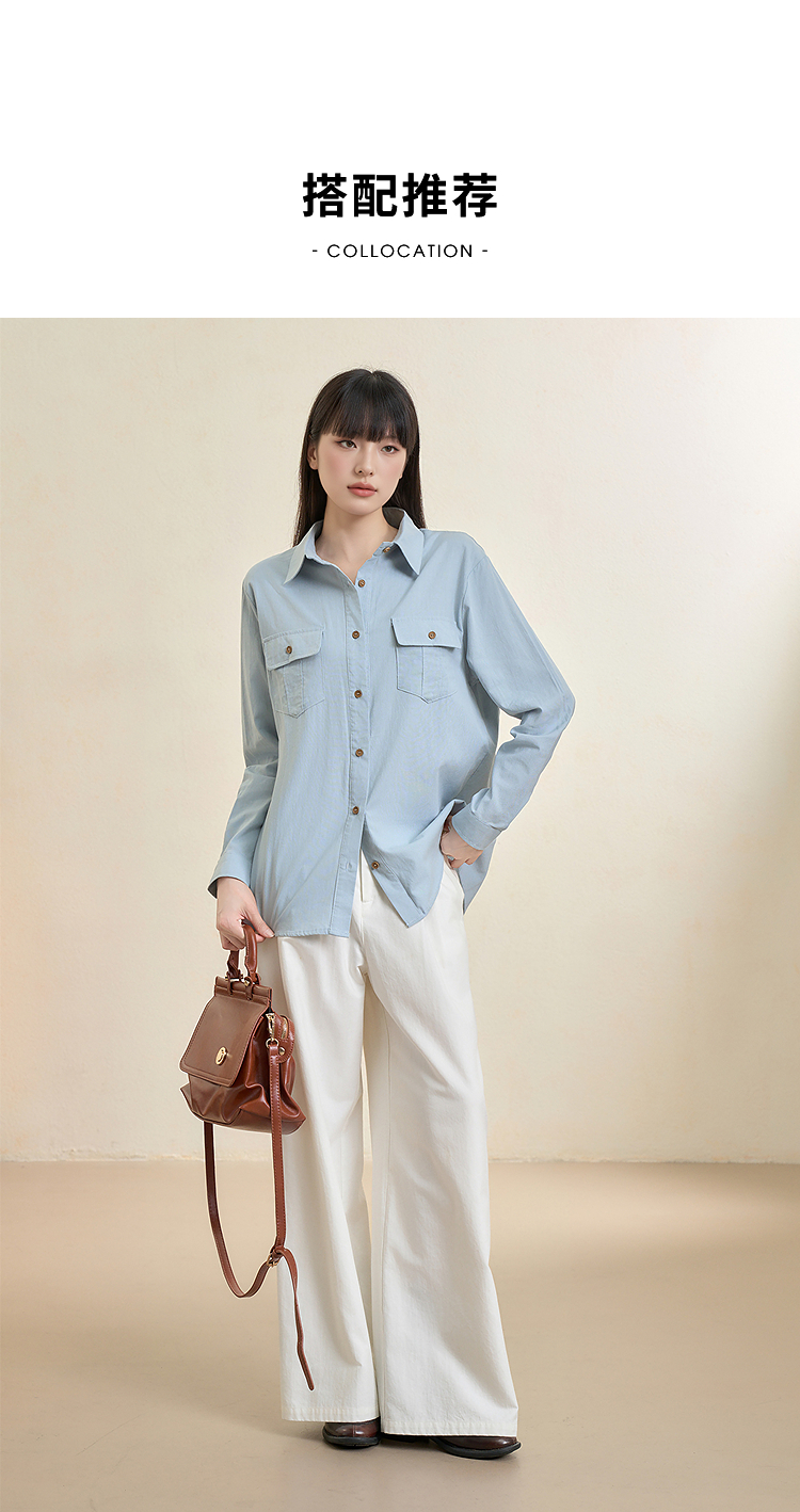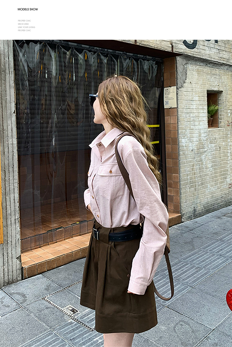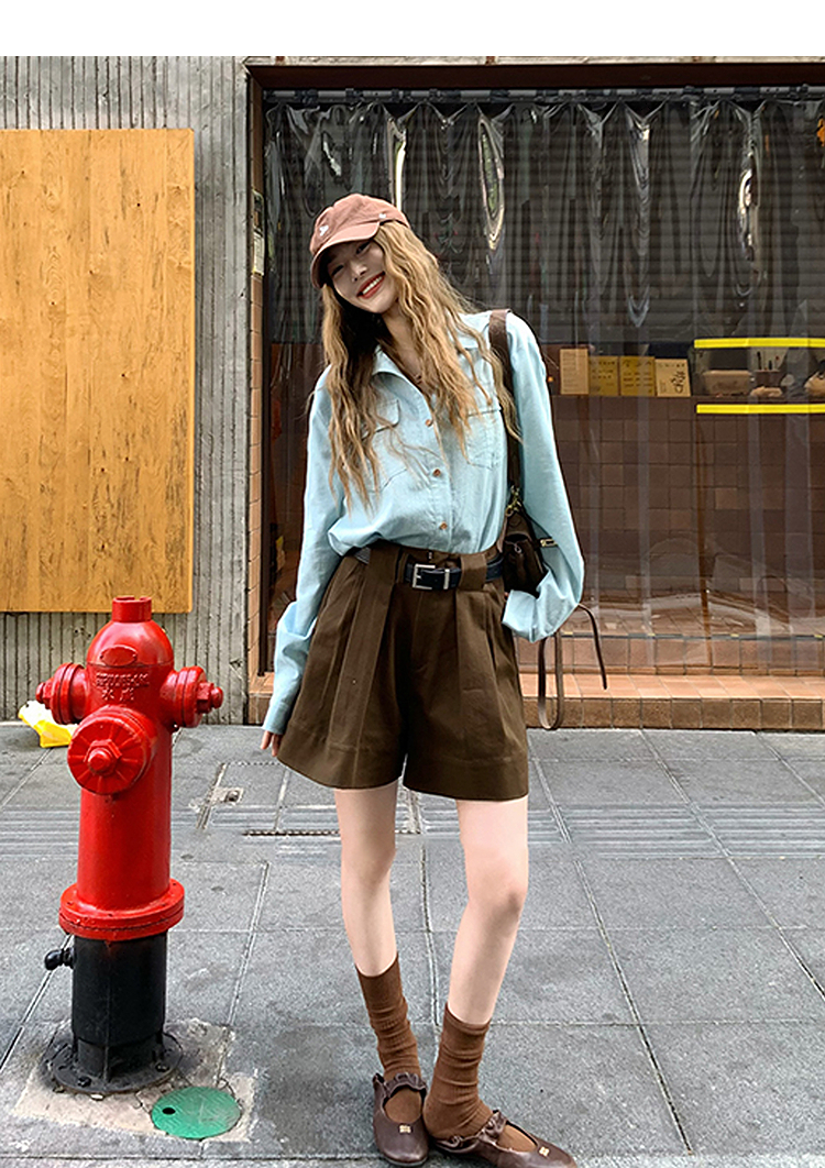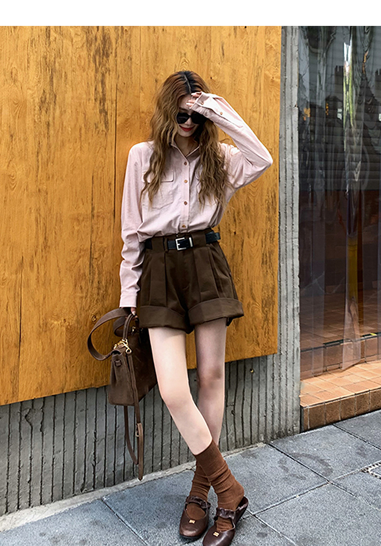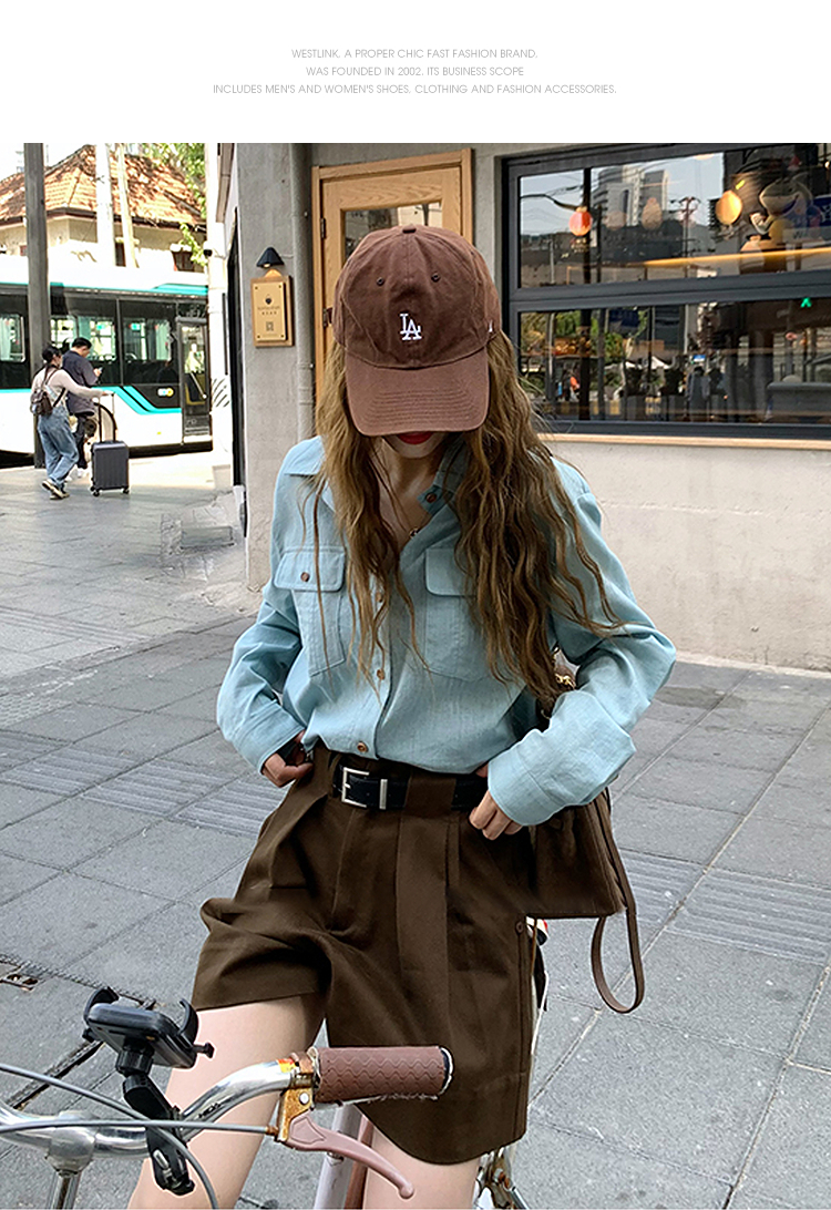 西遇老钱风亚麻衬衫套装女秋季新款通勤高腰宽松短裤两件套SS051331/SS051332