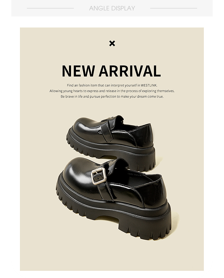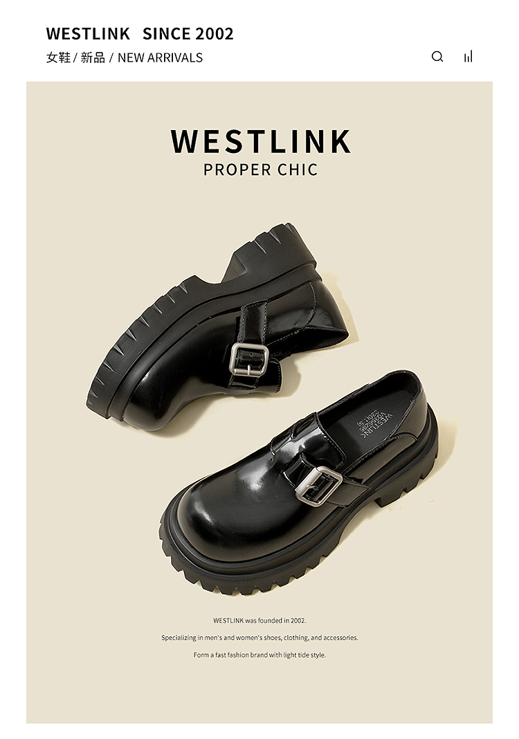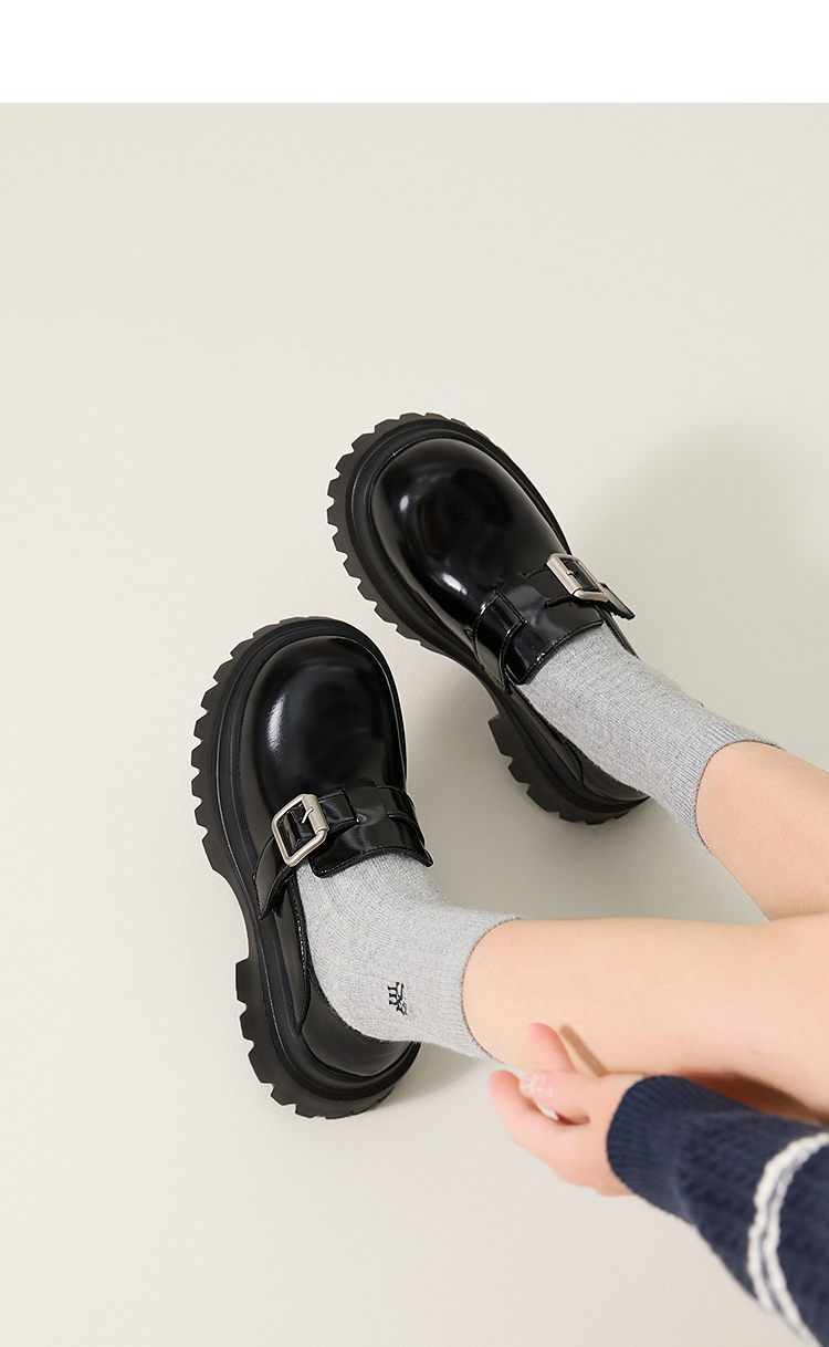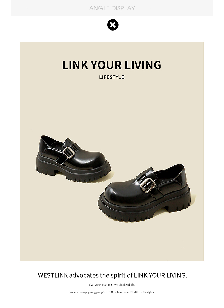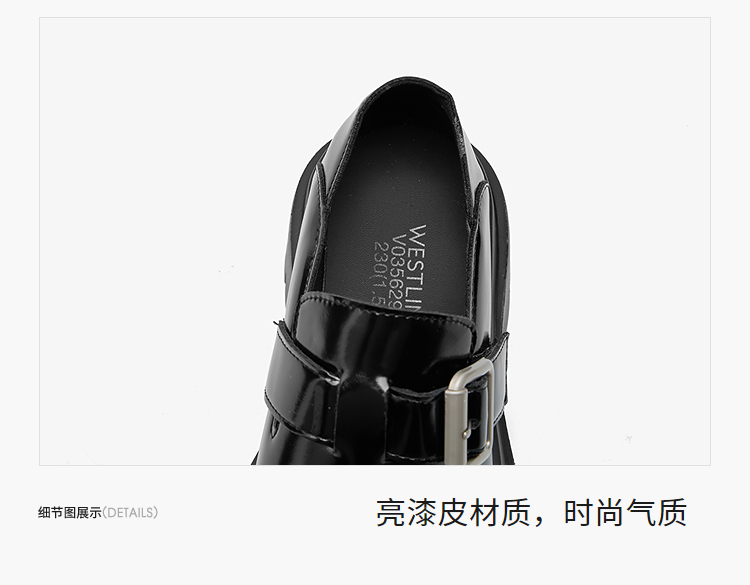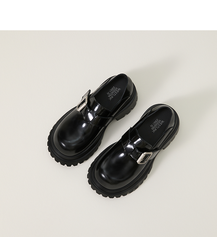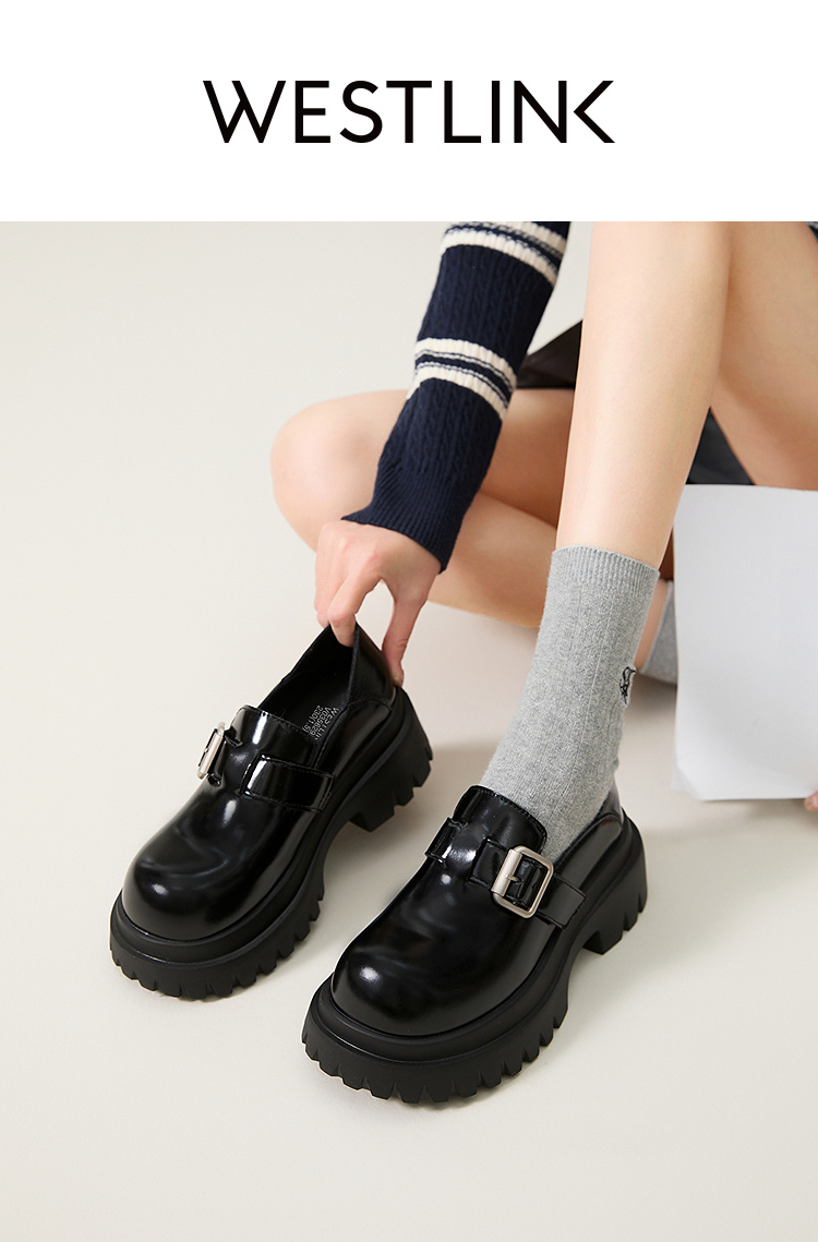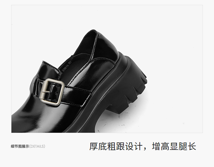 西遇增高厚底乐福鞋女新款一脚蹬黑色勃肯鞋英伦小皮鞋V0356295