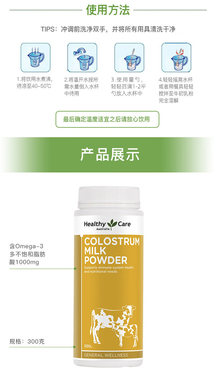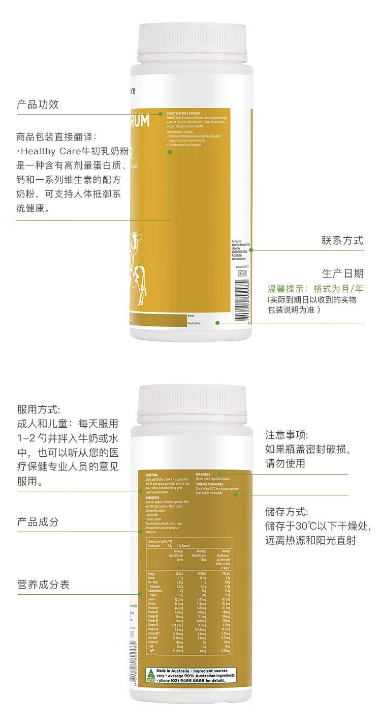 【海豚美购】澳大利亚Healthy Care澳世康 牛初乳粉 300g