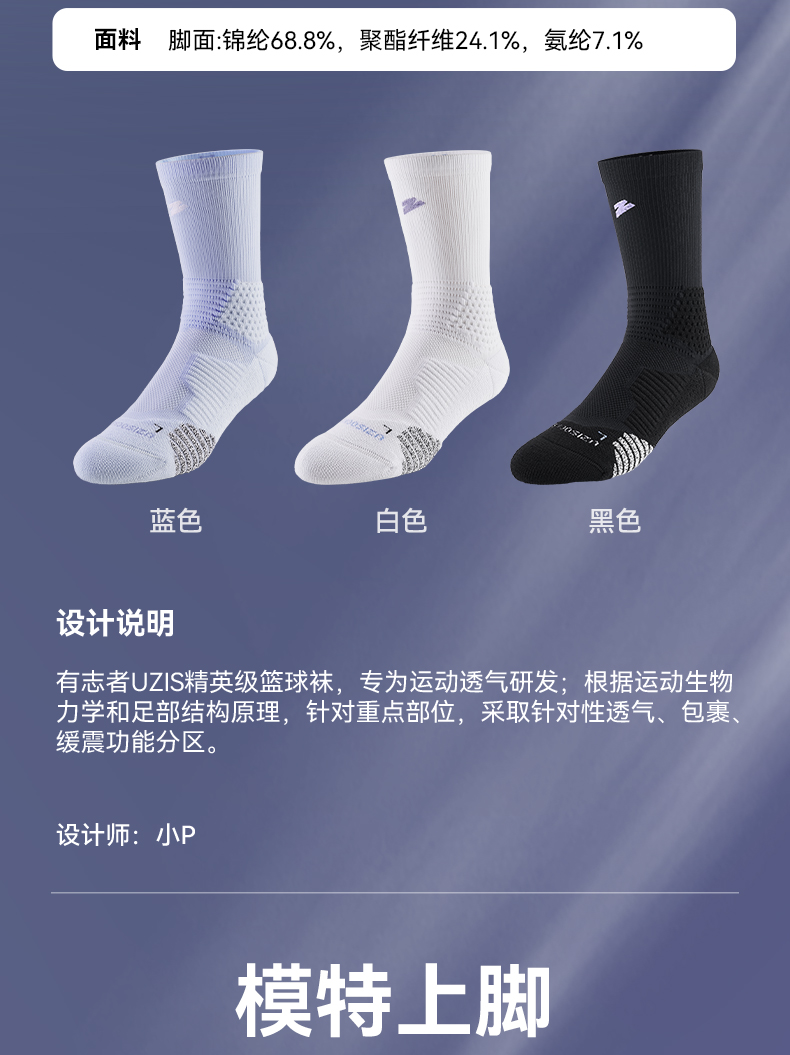 有志者UZIS男款精英篮球袜运动实战美式专业力量跑步长筒光标2.0