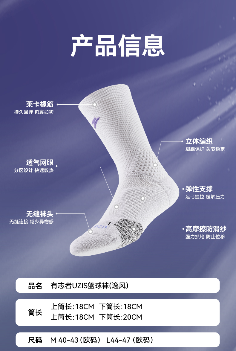 有志者UZIS美式精英篮球袜男夏季透气专业防滑实战训练长筒袜逸风