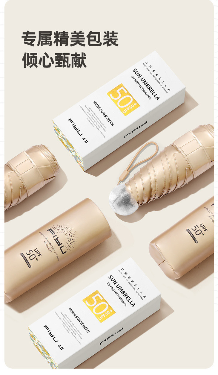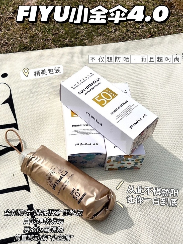 小金伞4.0是FIYU推出的行业首款护肤美容伞,拥有卓越的防晒与美肌功能。