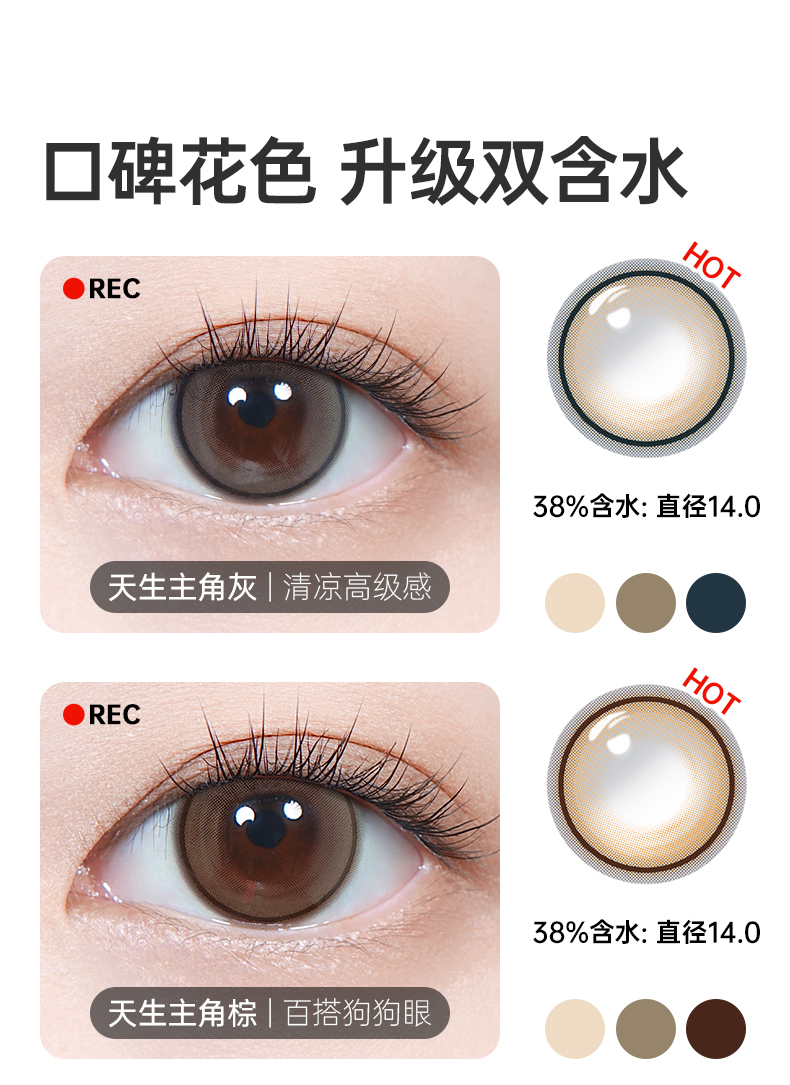 kilala可啦啦天生主角镜头感玻尿酸美瞳彩色隐形眼镜日抛2片10片装