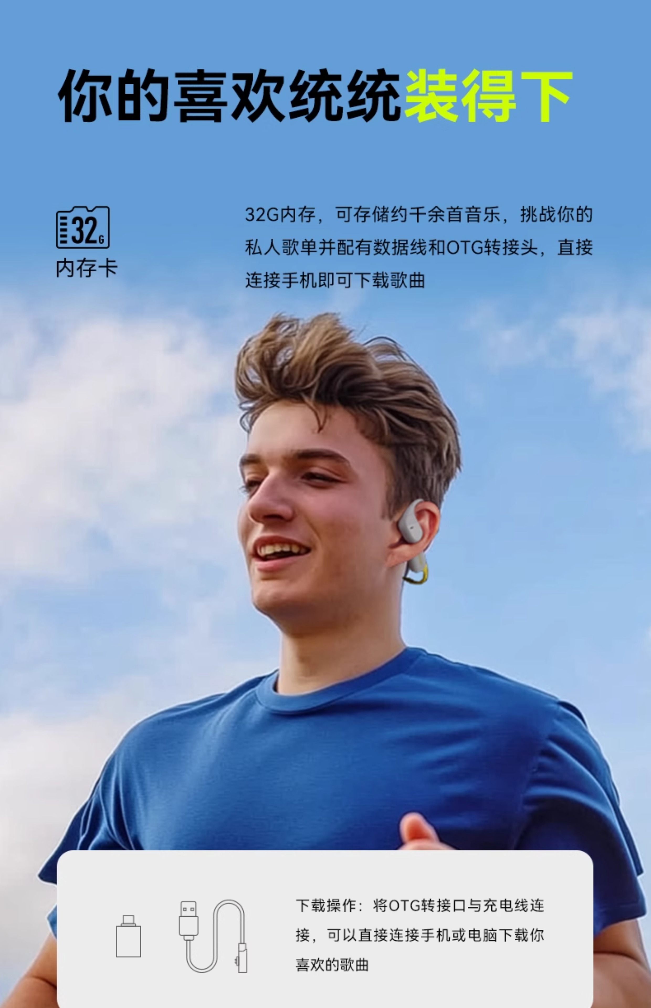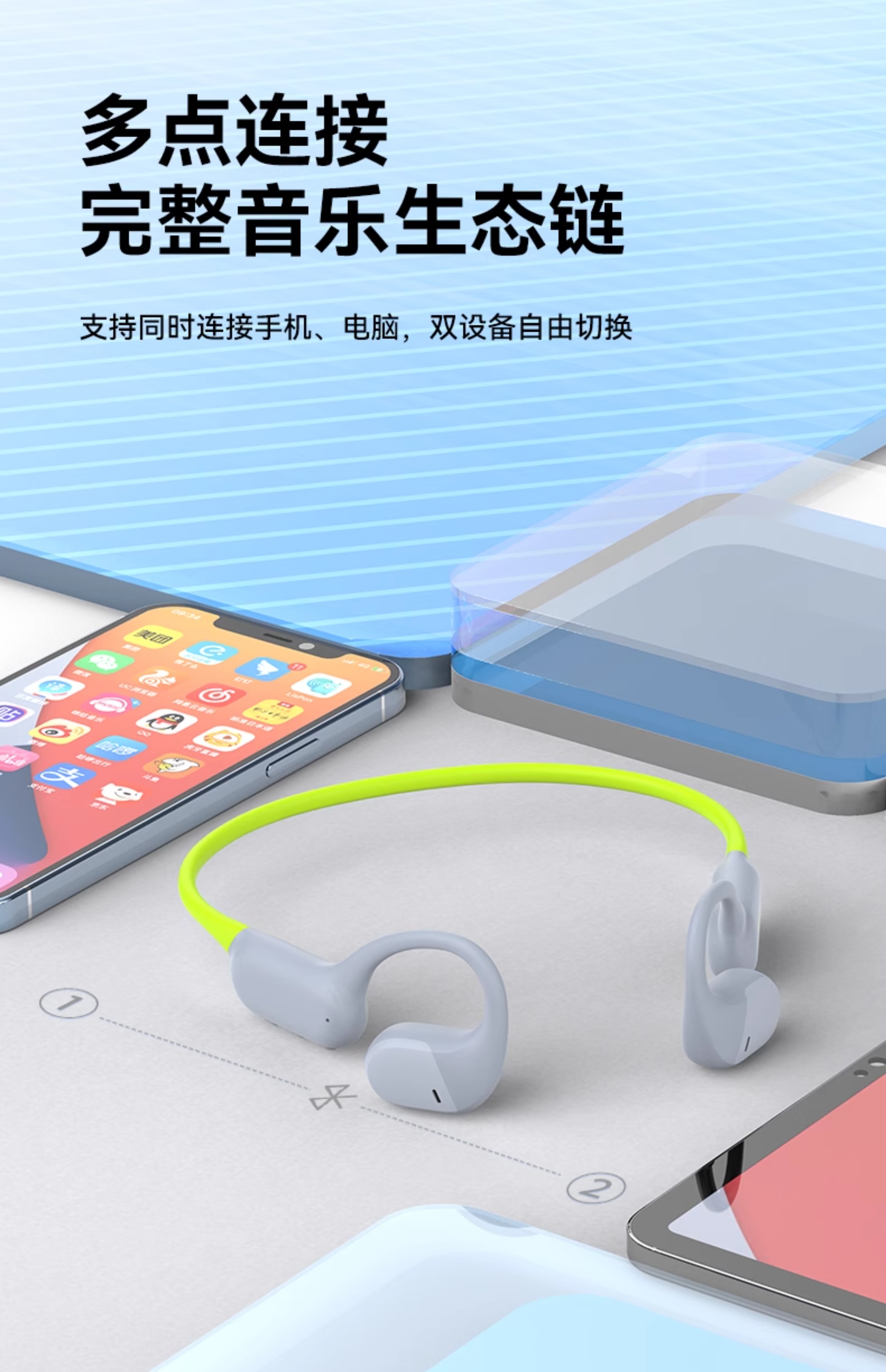 尝鲜-兰士顿耳机 BE19绿 气传导运动耳机