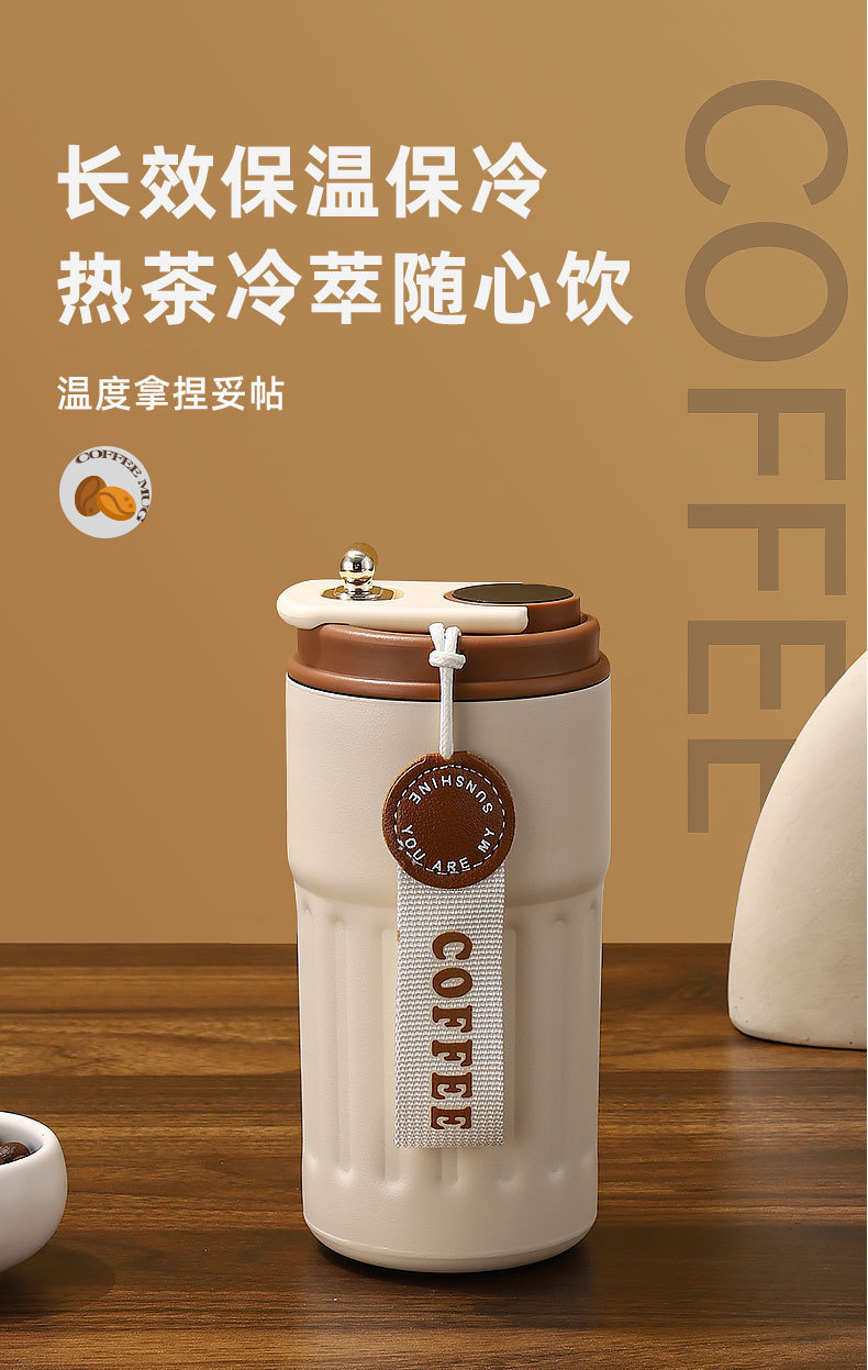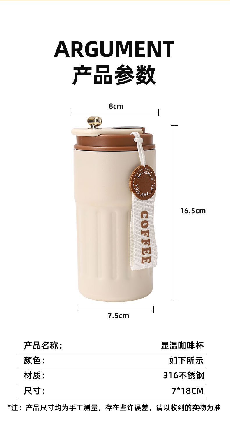 智能显温咖啡杯316不锈钢车载真空保温杯男女学生高颜值便携水杯