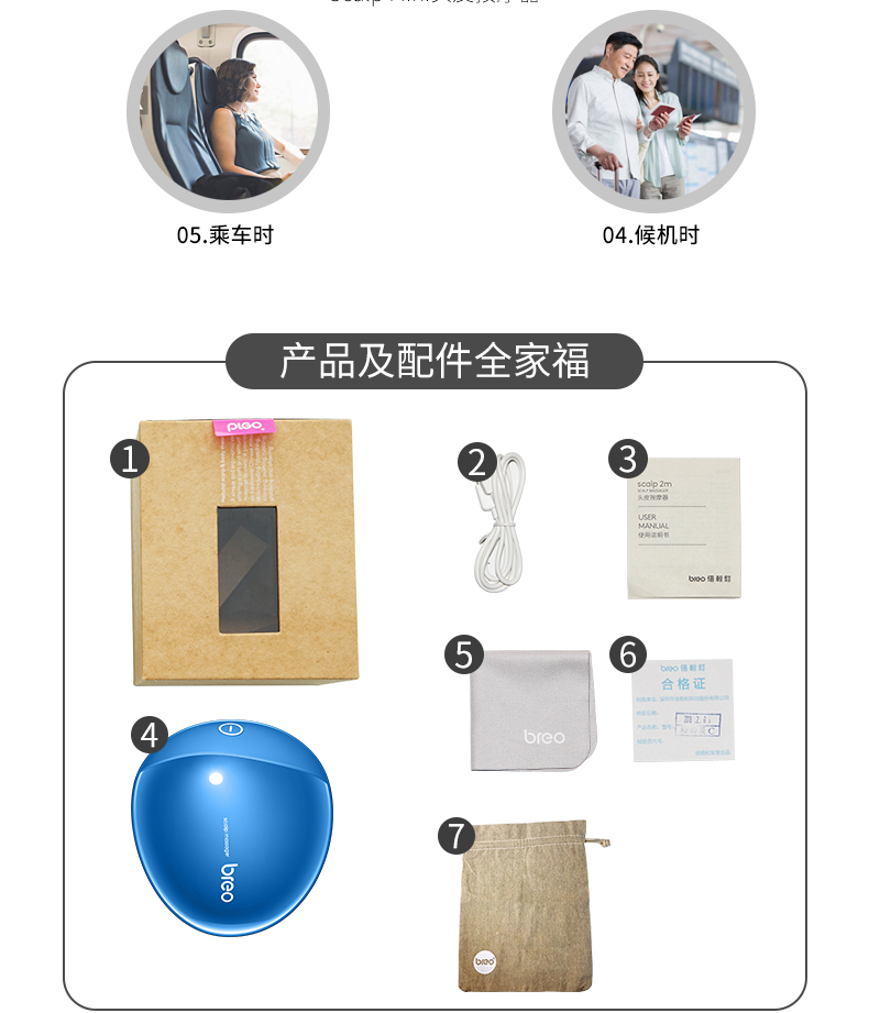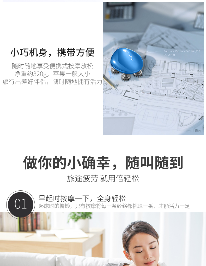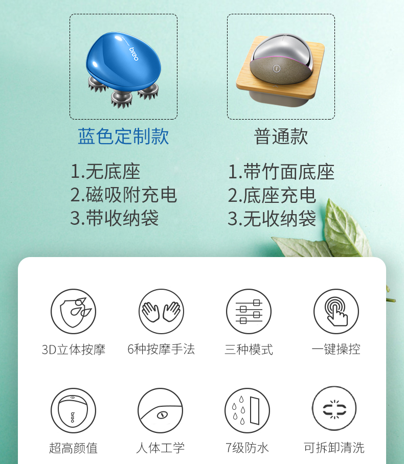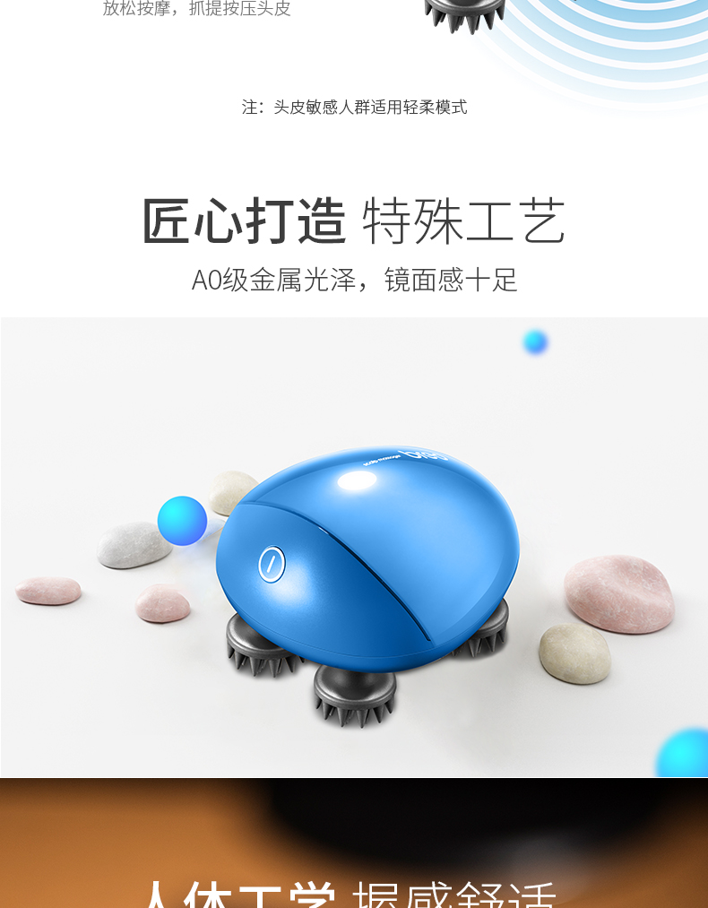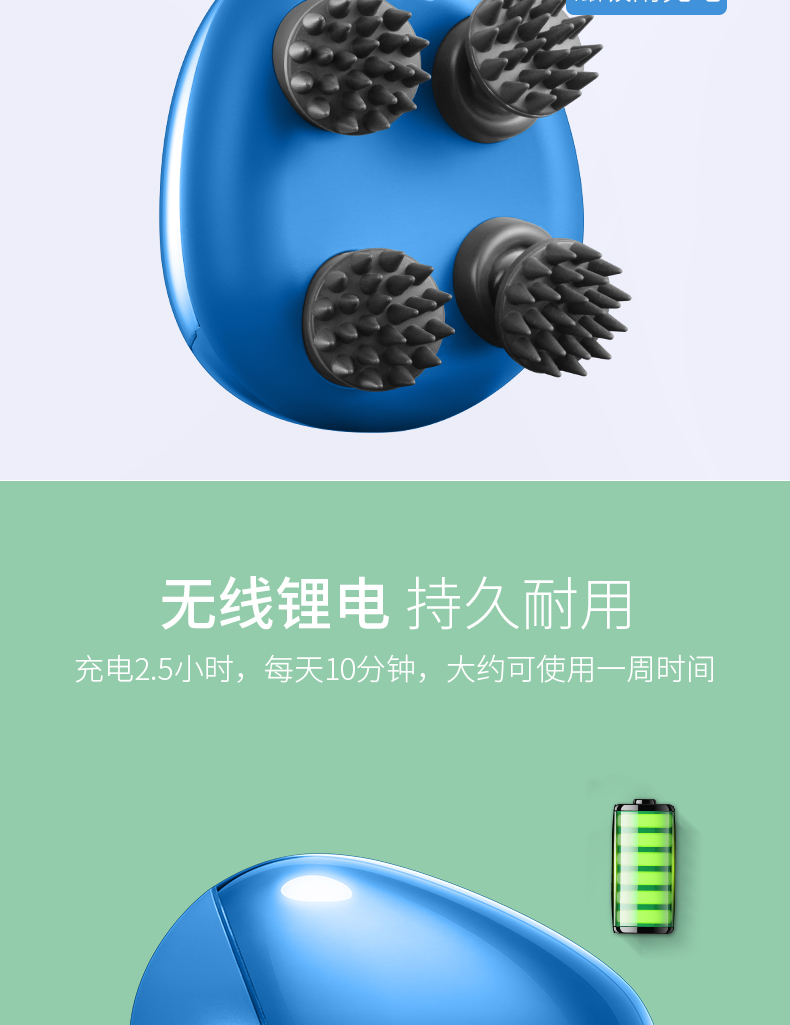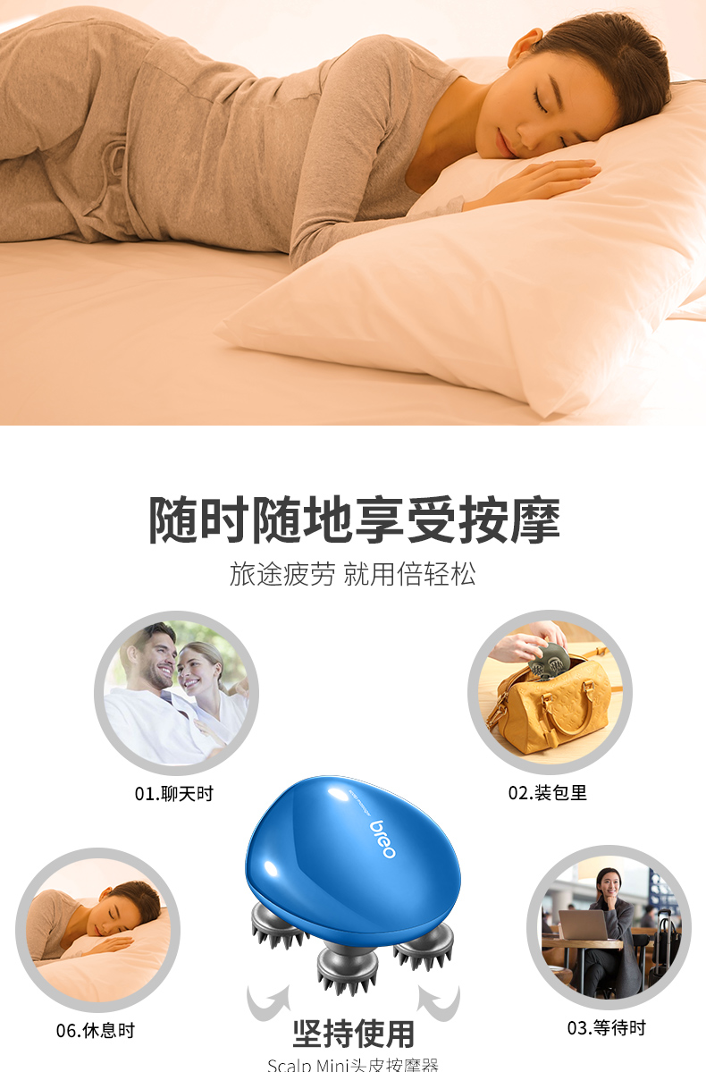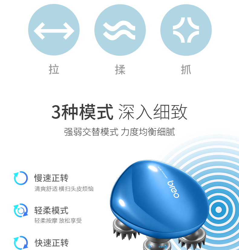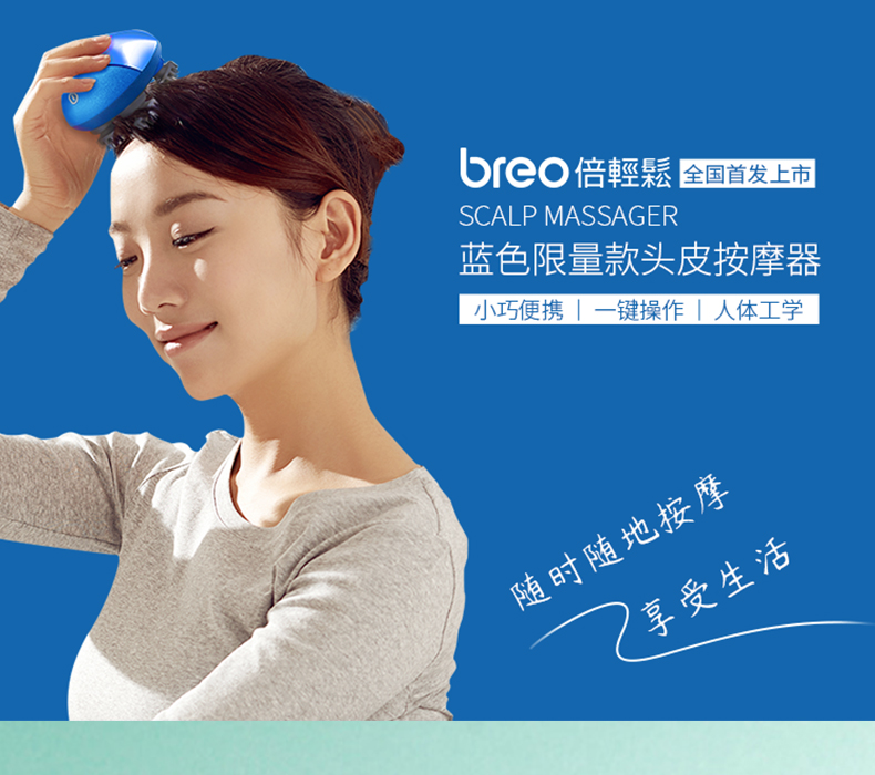 倍轻松(breo)头部按摩器Scalp Mini蓝色