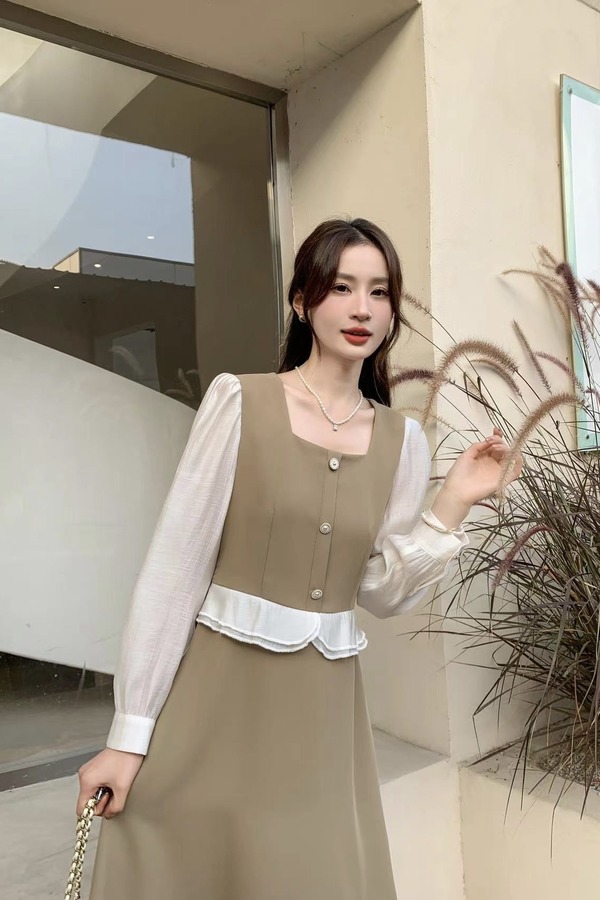 L.Fleuri 拼接式温柔卡其连衣裙 17691