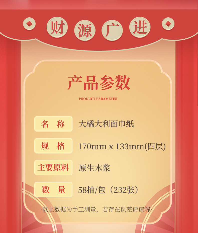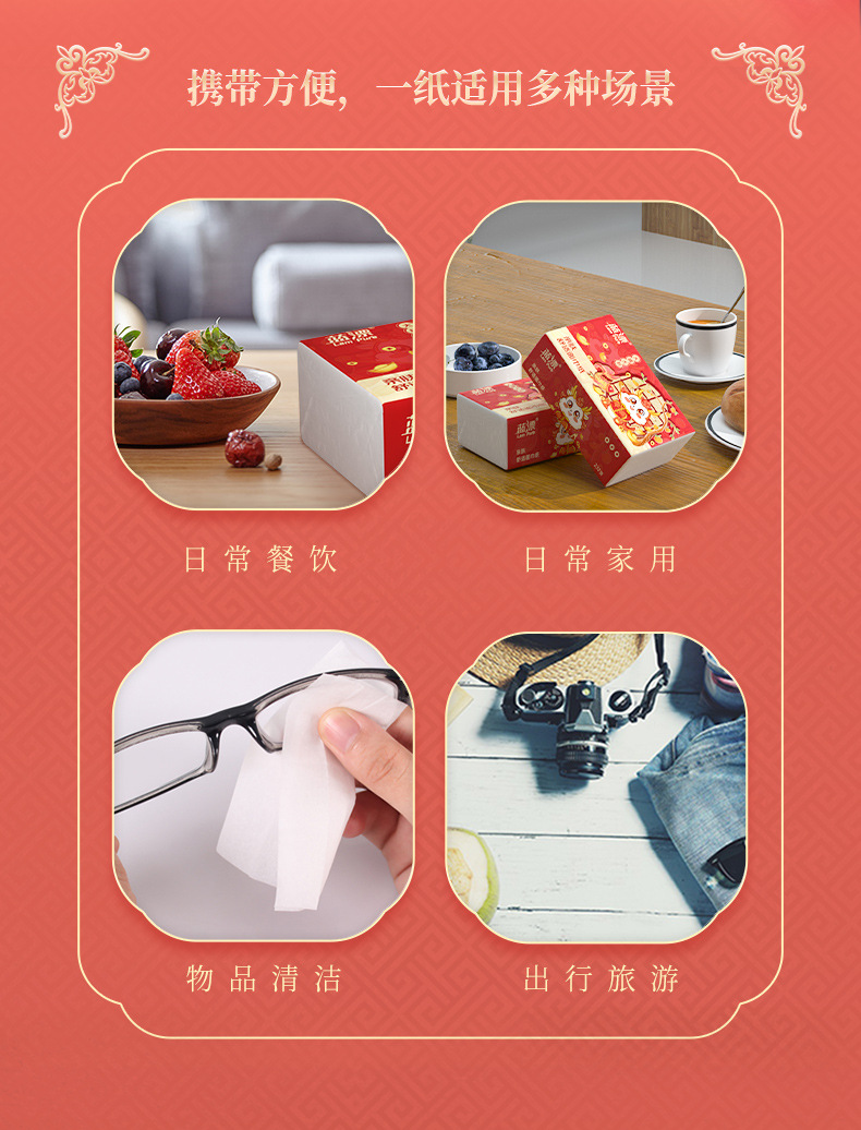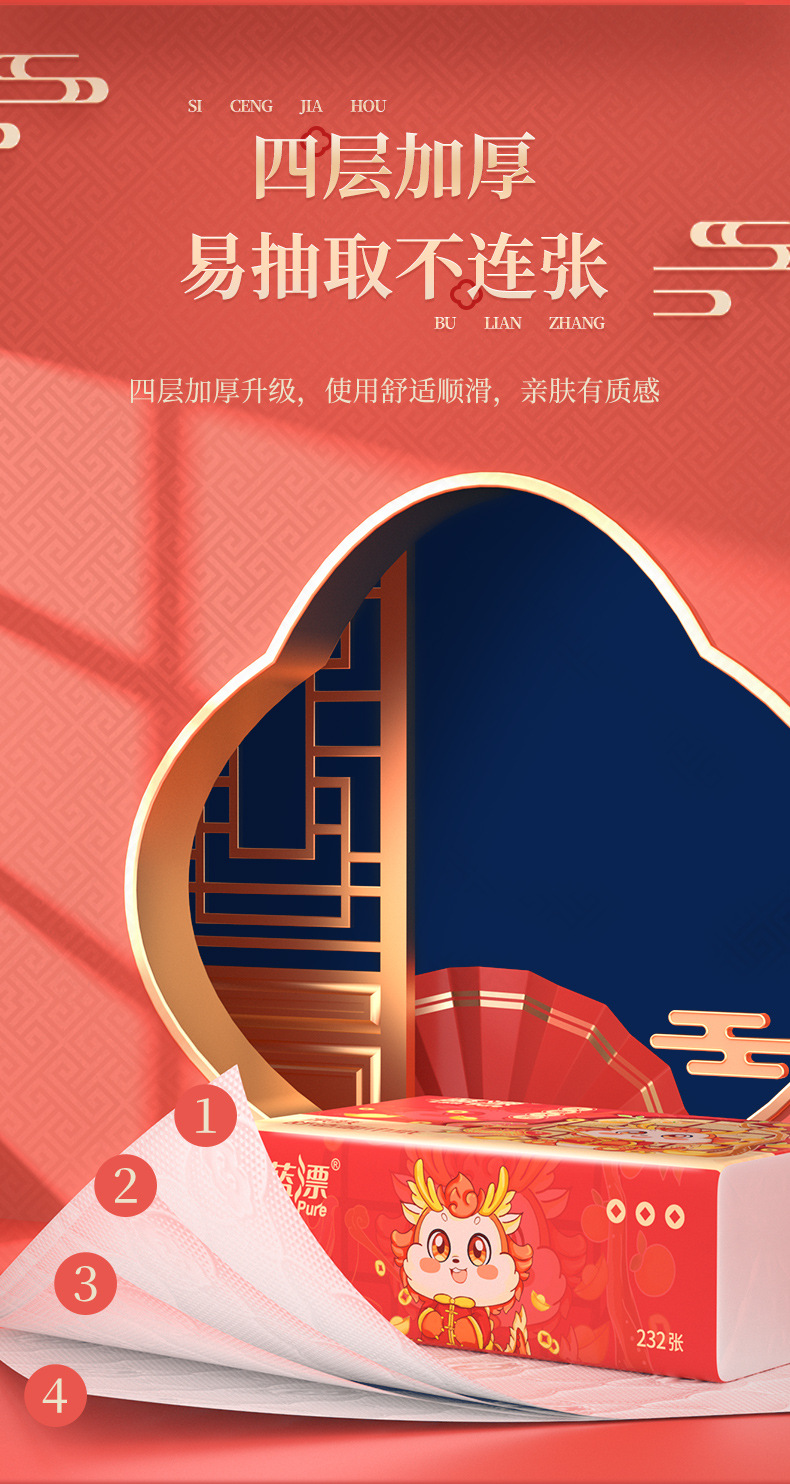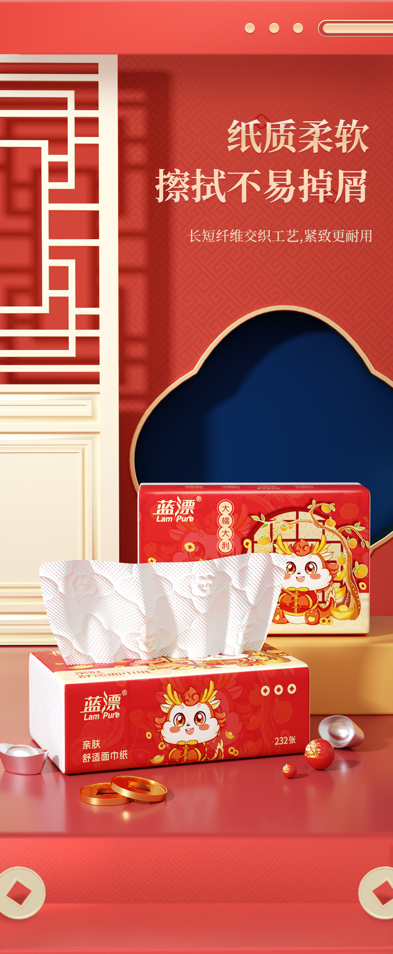 「30包装!龙年新年抽纸」蓝漂居家日用实惠装新年装卫生纸龙年行大运(大橘大利)白色抽纸