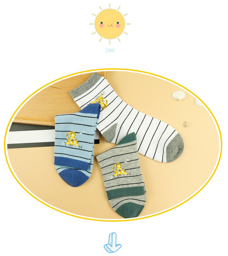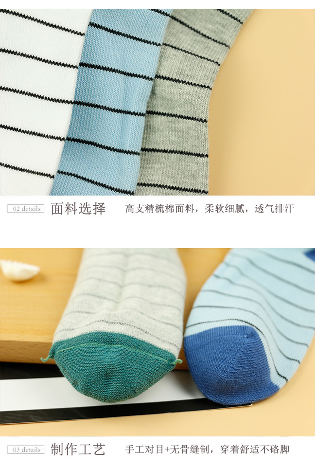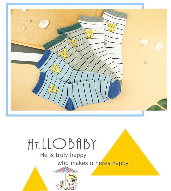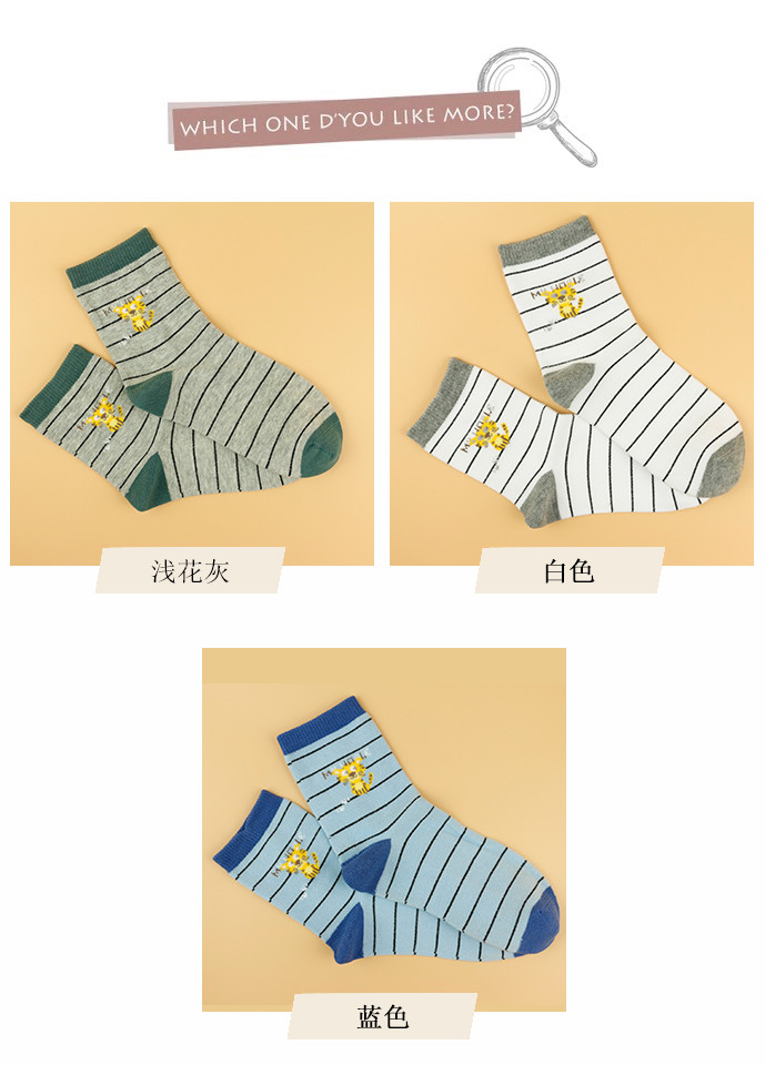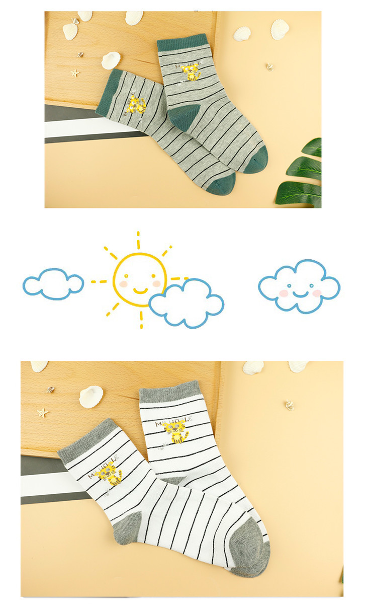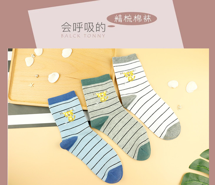 【19元6双】【7-10岁】大童条纹休闲卡通精梳棉袜子 透气舒适【723208】