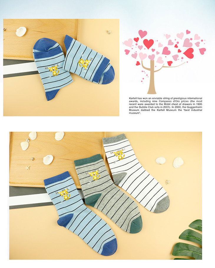 【59元3双】【1双装】女丨条纹简约个性中筒袜子女士ins休闲百搭女袜棉袜子【2412520】