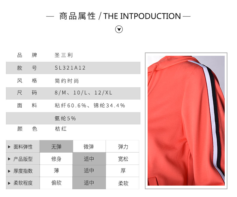圣三利女装纯色连帽款休闲上衣SL321A12