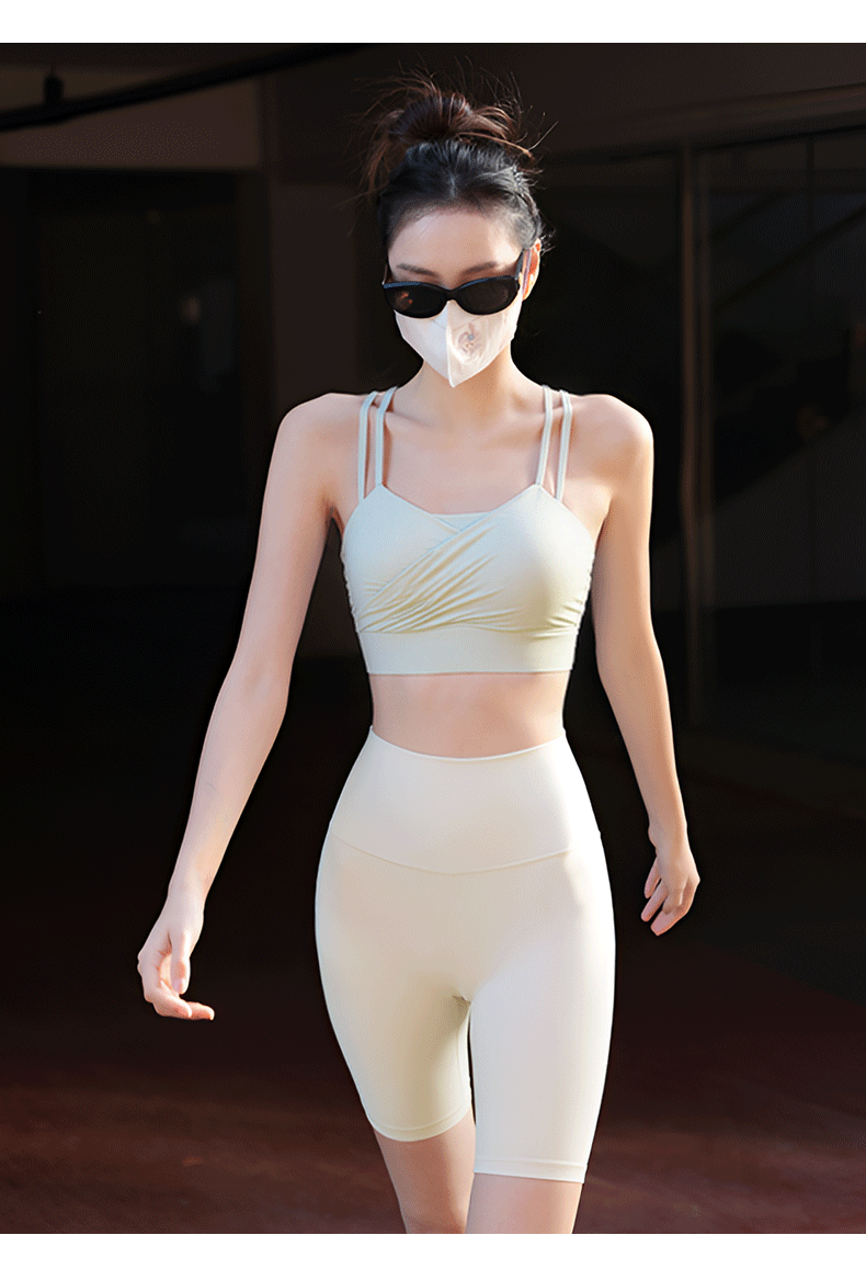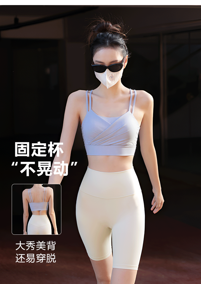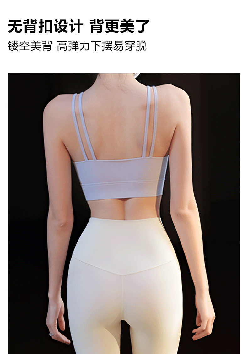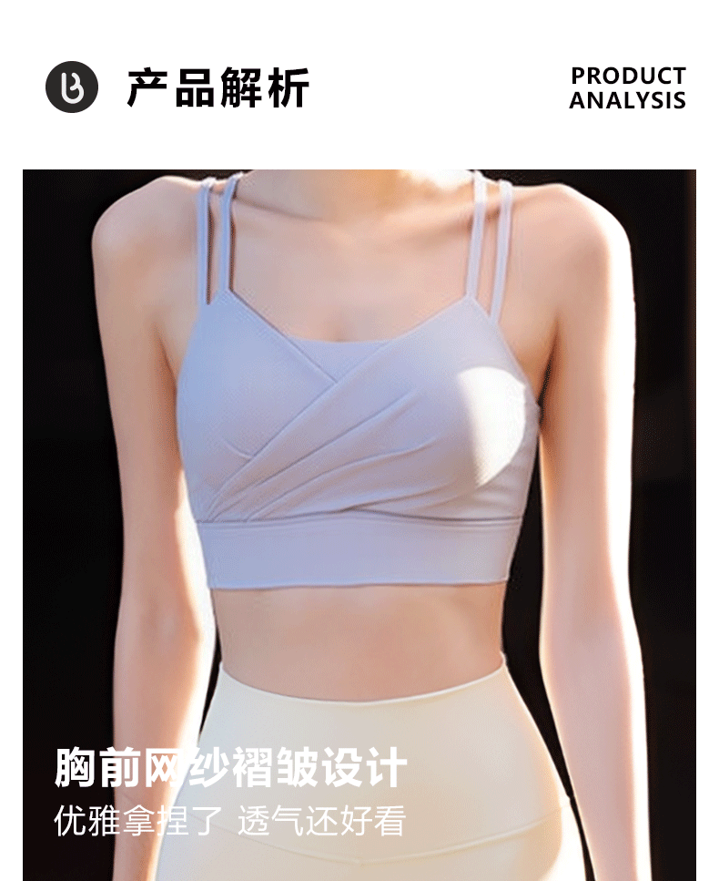Beemen 无背扣设计 + 一体式固定杯 镂空美背中低强度运动文胸 网纱褶皱自带朦胧氛围感 高弹易穿不跑杯