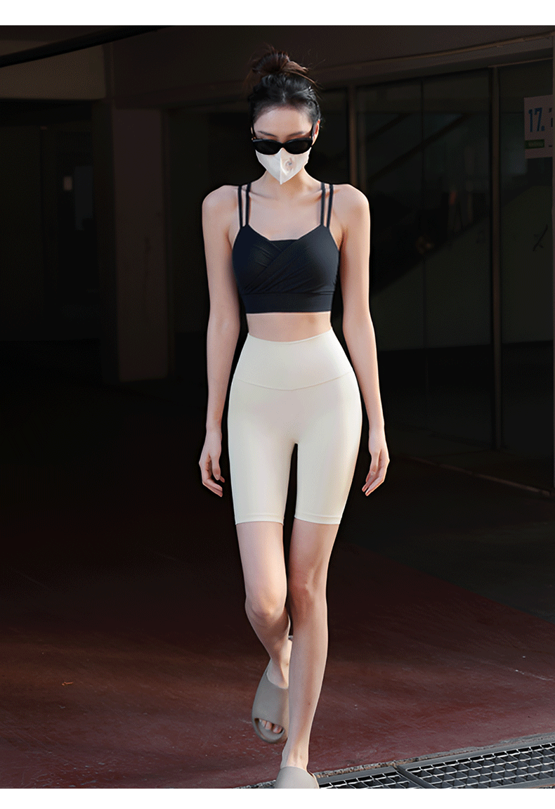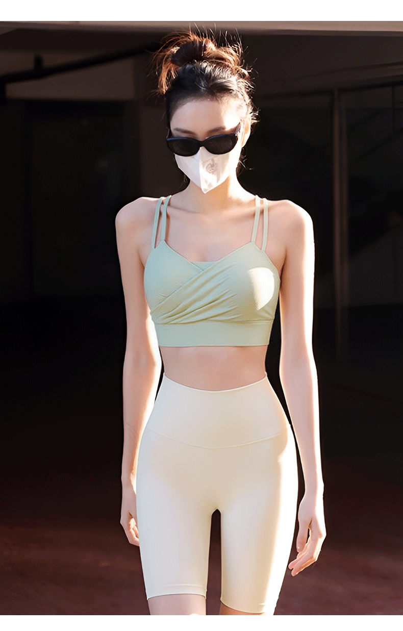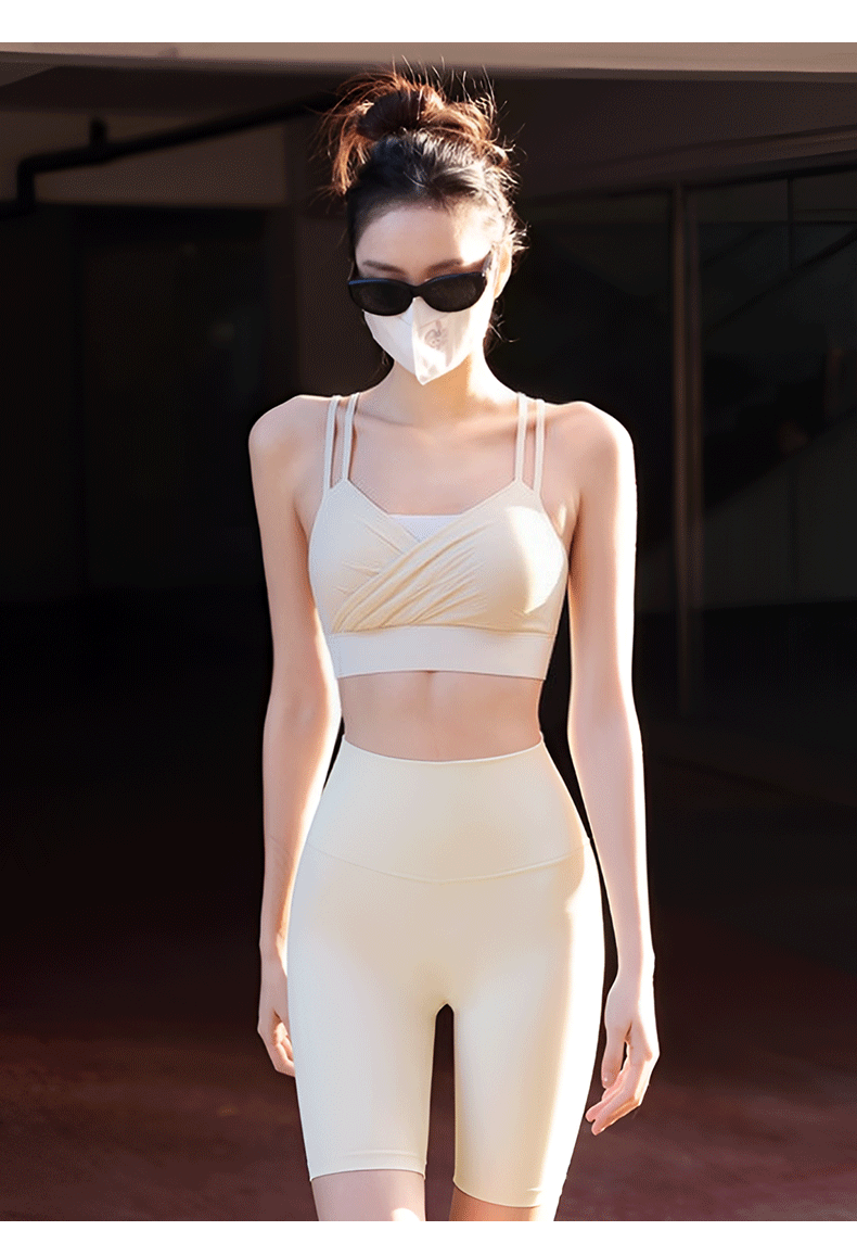 Beemen 无背扣设计 + 一体式固定杯 镂空美背中低强度运动文胸 网纱褶皱自带朦胧氛围感 高弹易穿不跑杯