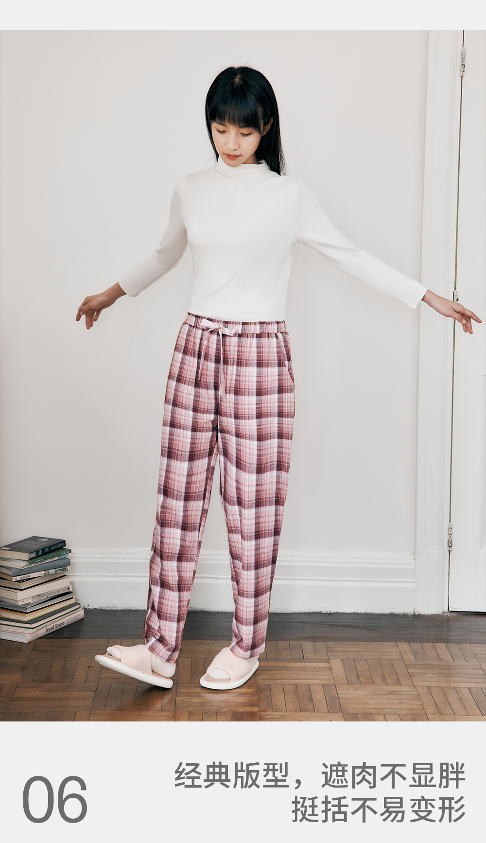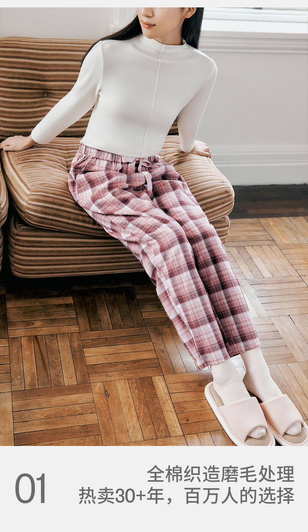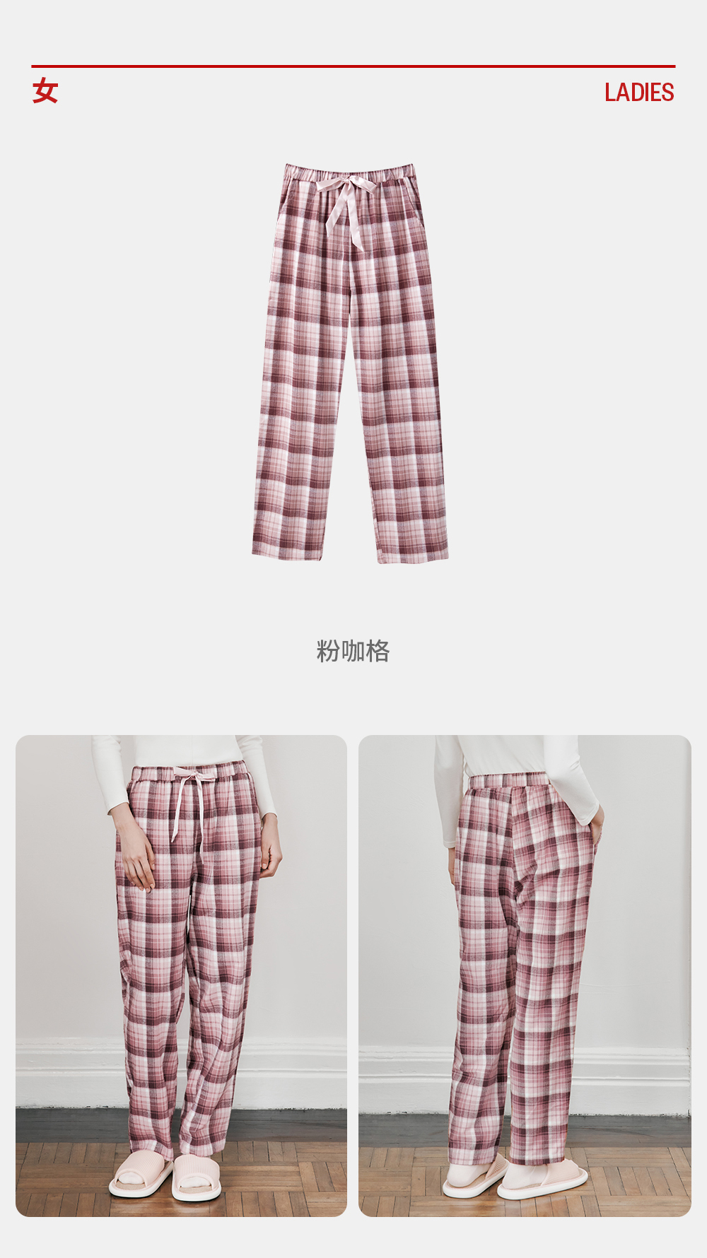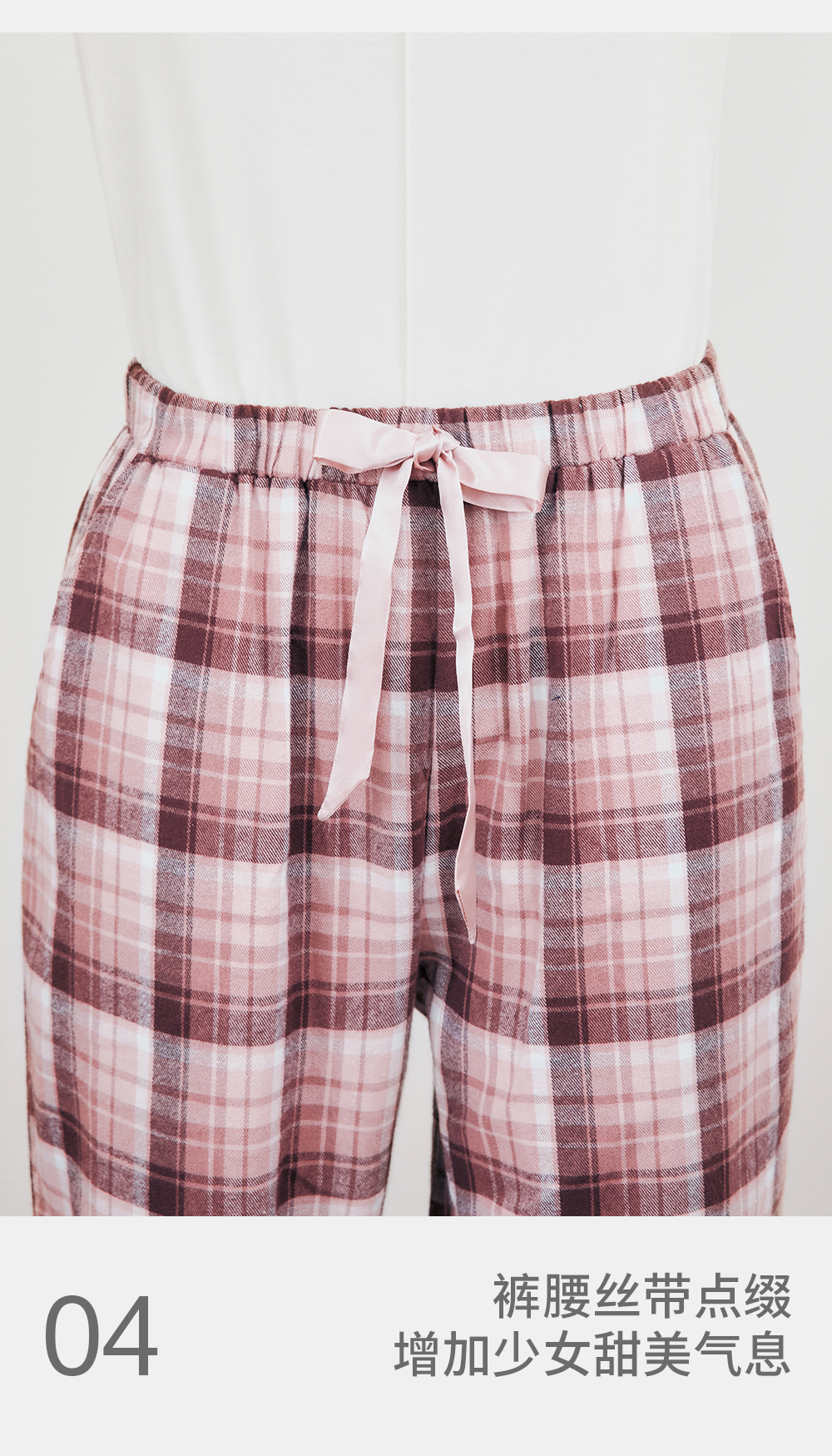 Threegun三枪 【彩格绒布】女士家居长裤睡裤-61346B011
