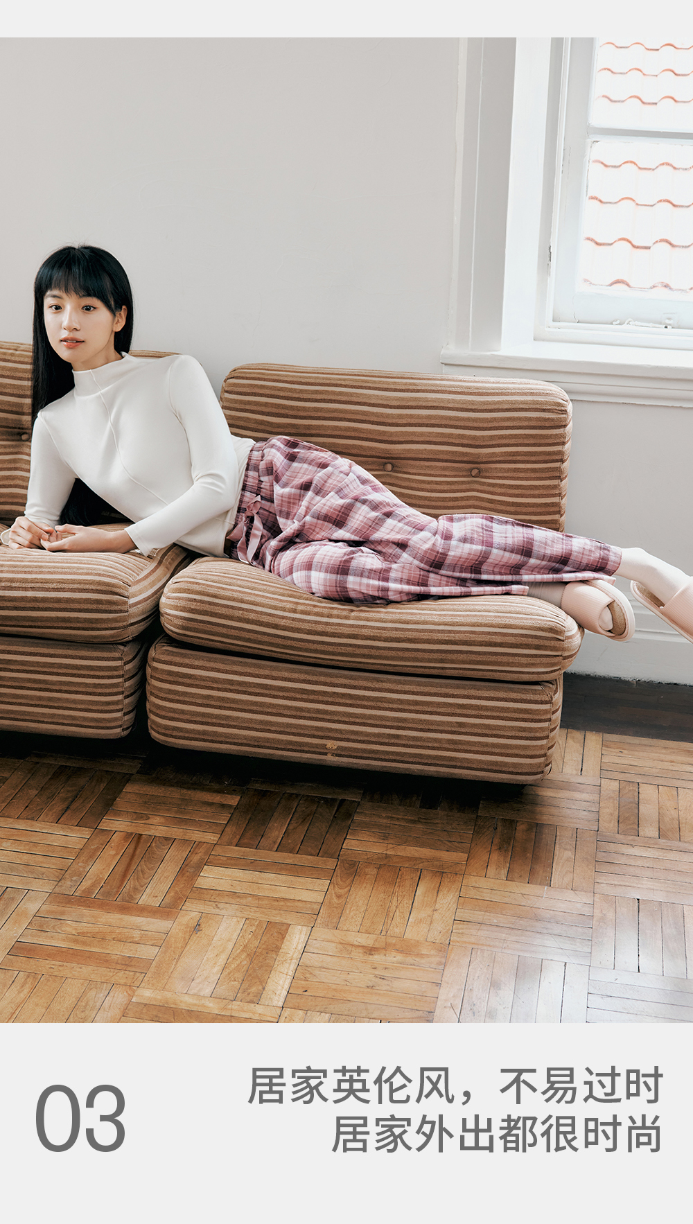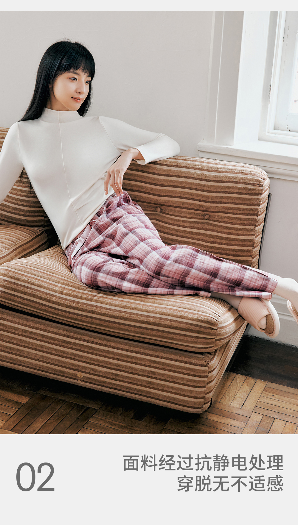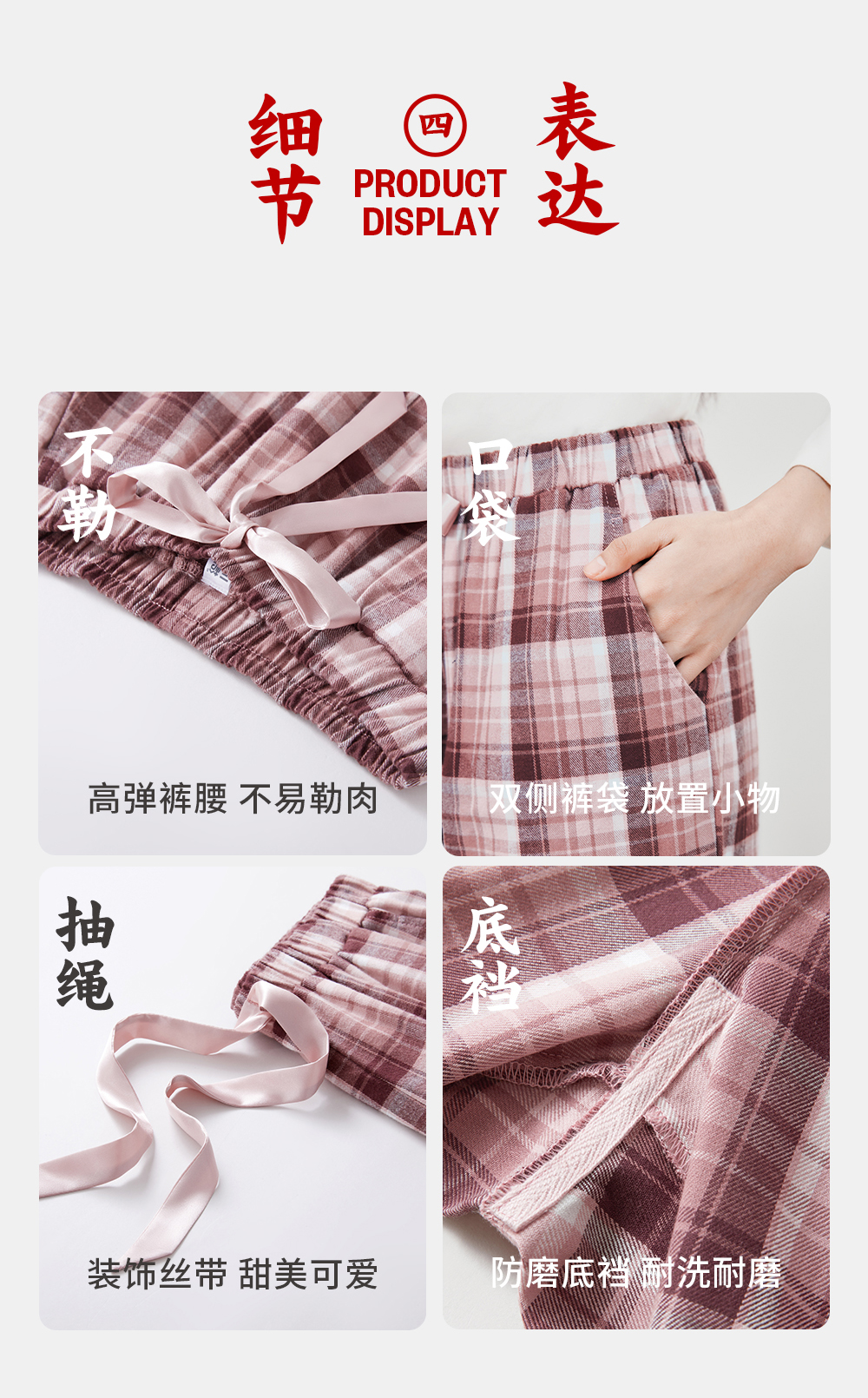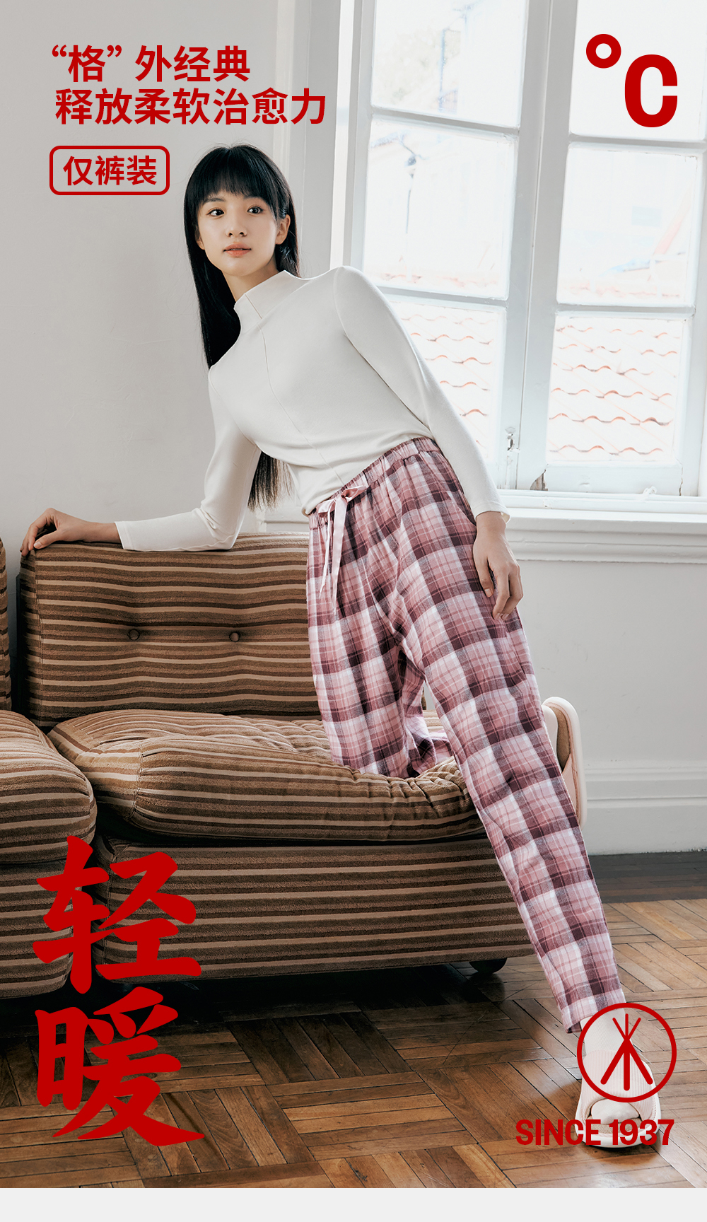 Threegun三枪 【彩格绒布】女士家居长裤睡裤-61346B011