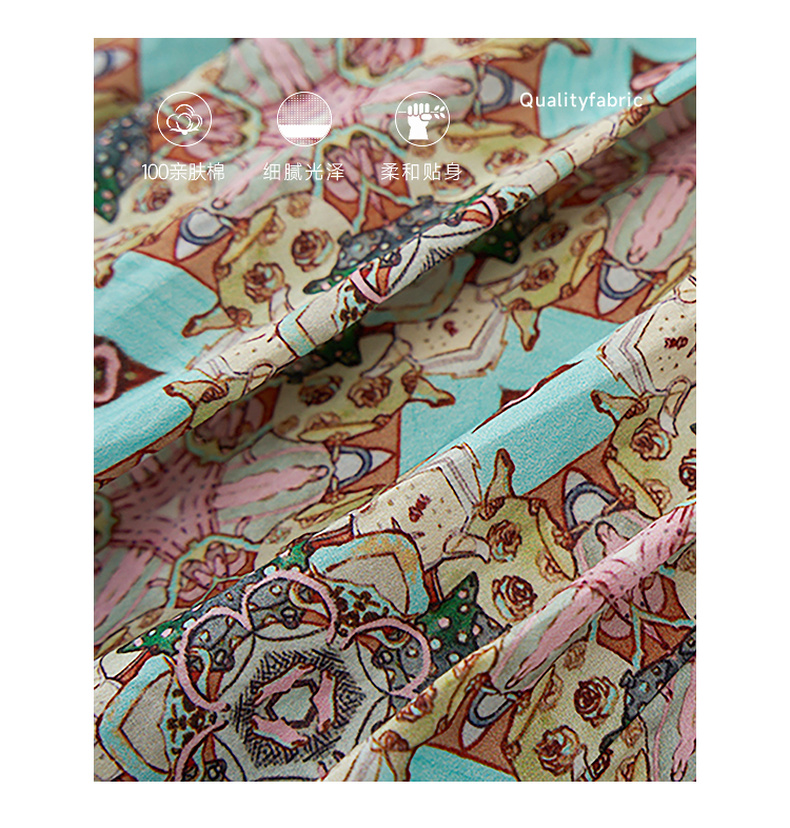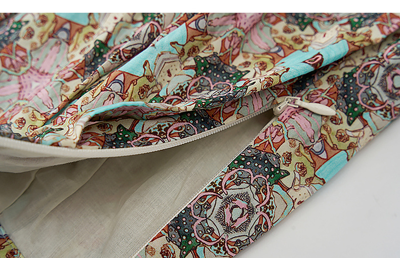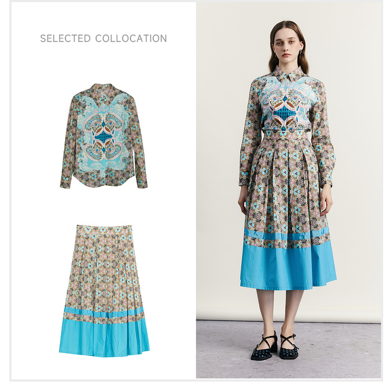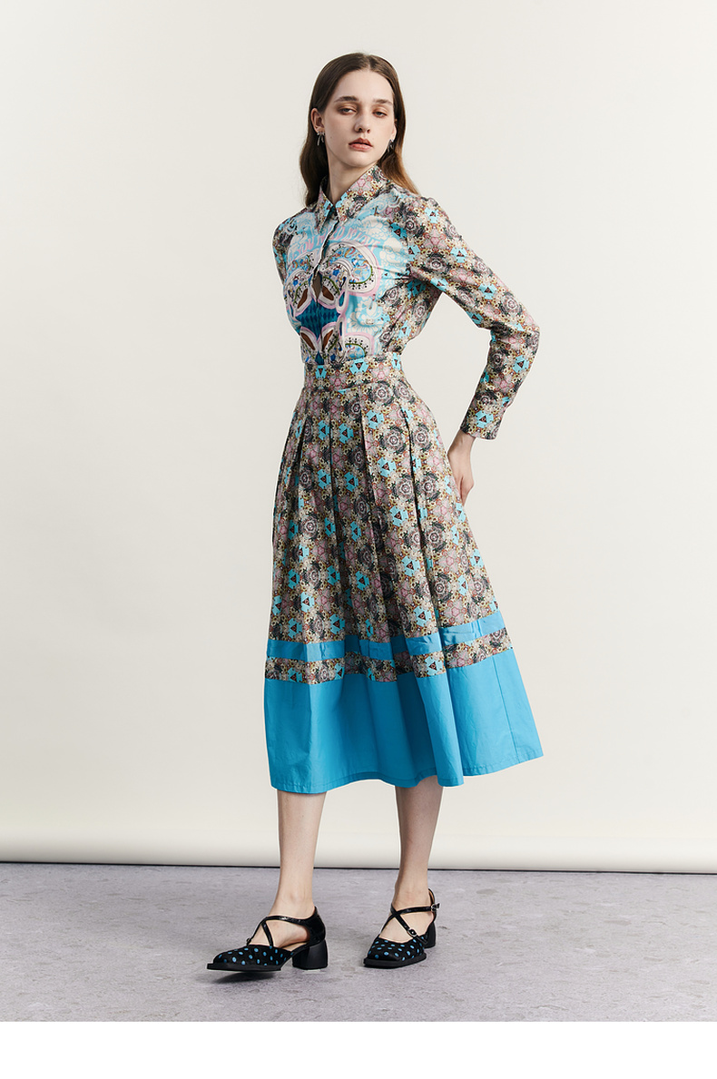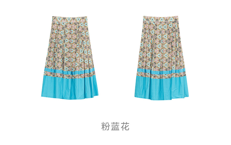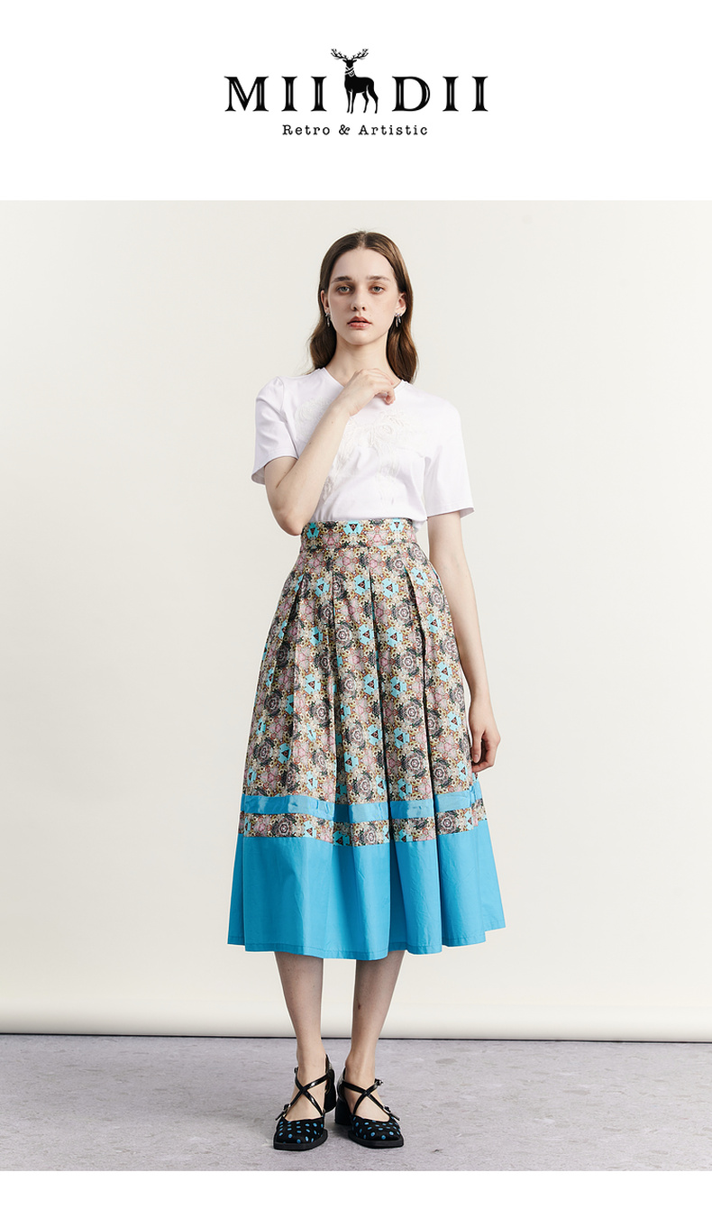谜底文艺花色半裙2023秋新款复古浪漫棉质百褶A型半身裙233MB1043