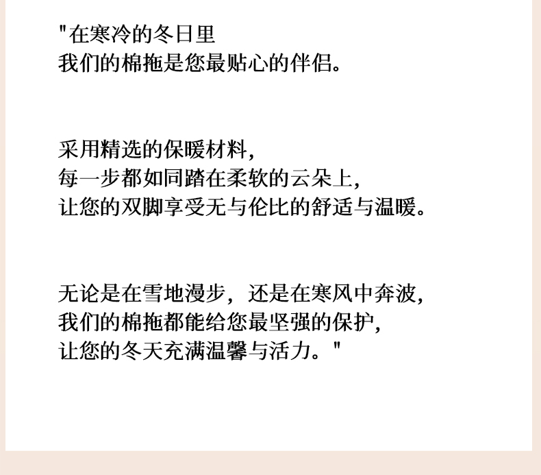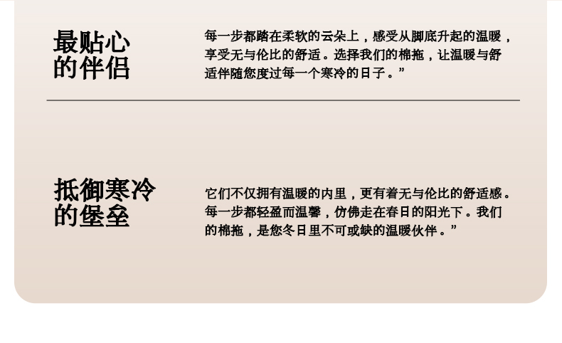 柔软轻盈棉拖鞋,韧性十足,亲肤舒适,聚热保暖,第一次穿上的时候,脚底真心轻快