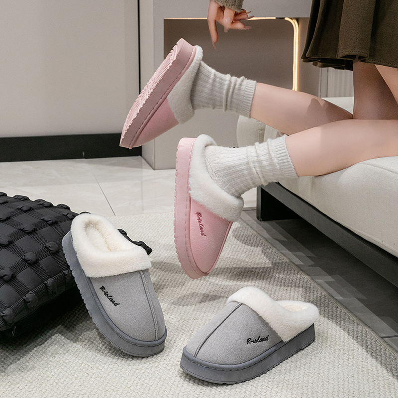 首先鞋子采用pvc+仿鹿皮绒+毛绒材质