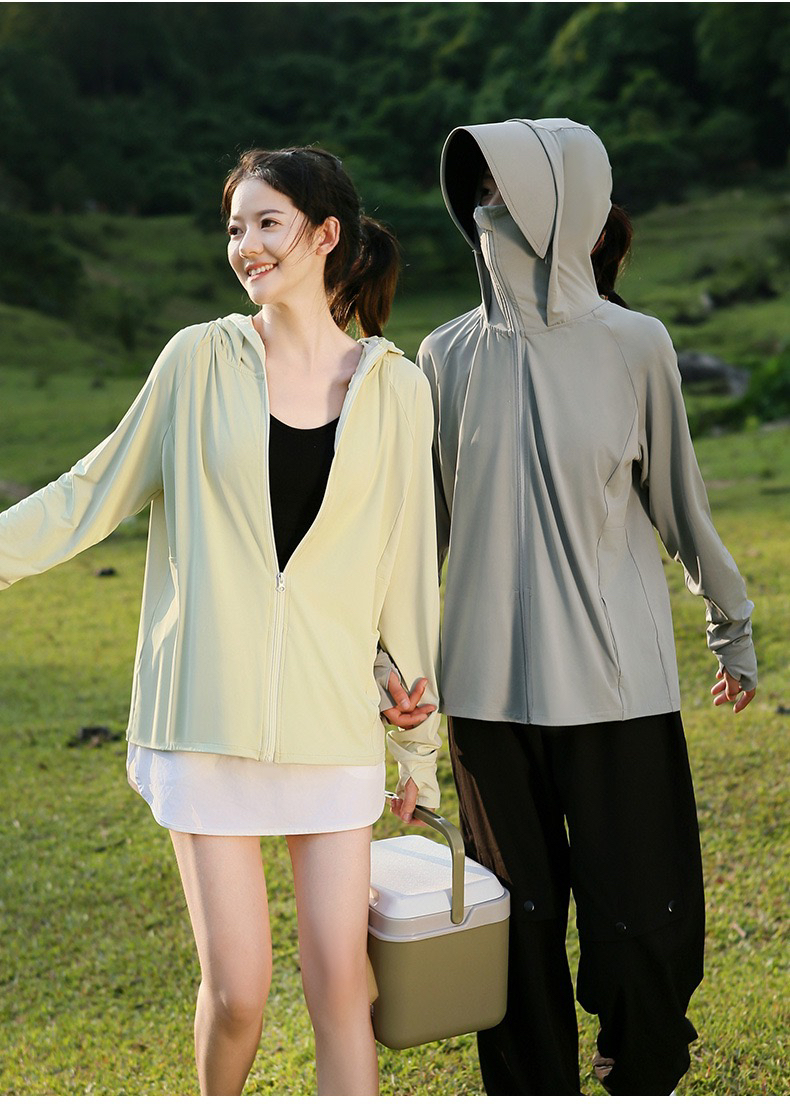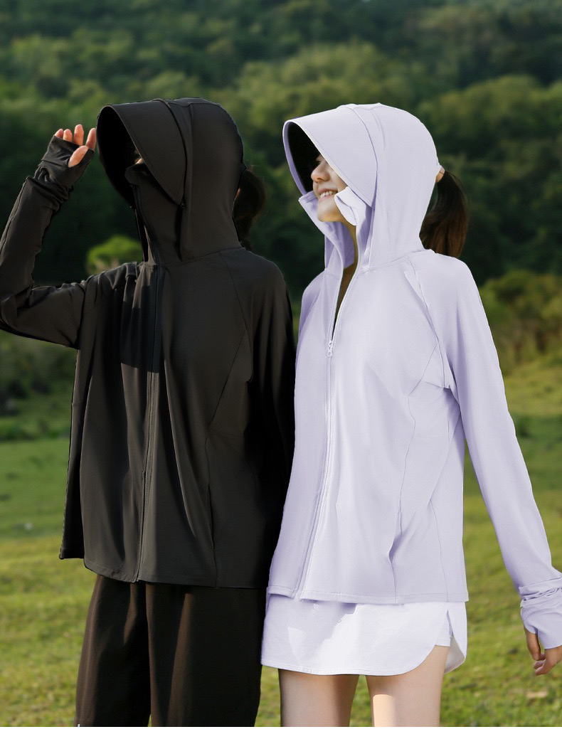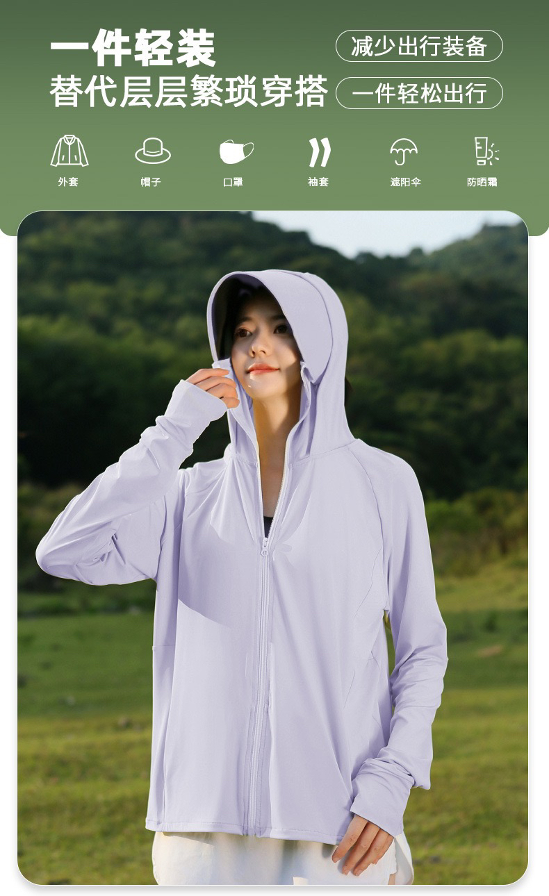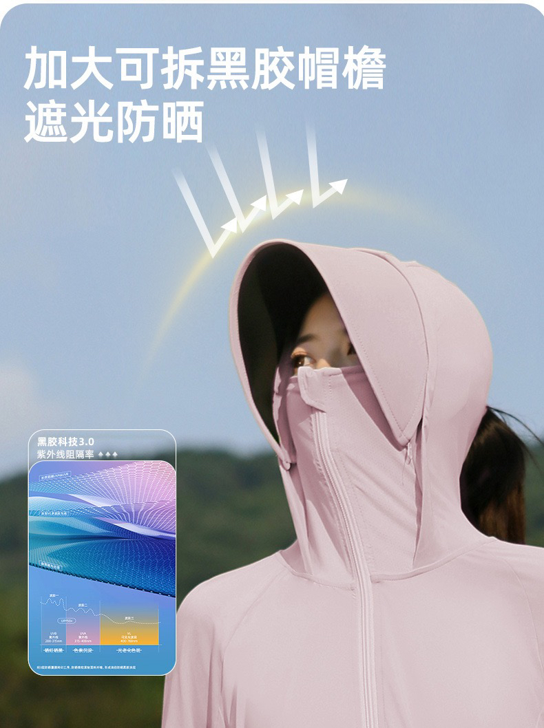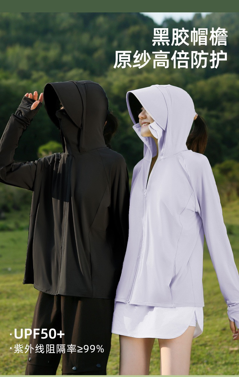 户外防晒衣女夏季防紫外线新款冰丝原纱黑胶帽檐宽松透气薄防晒服