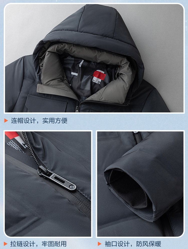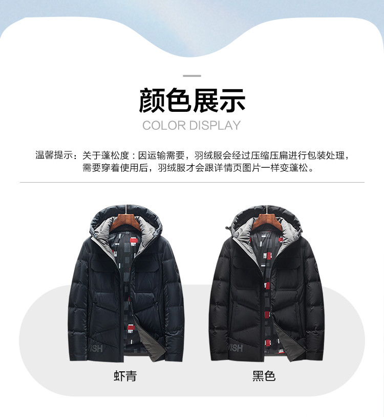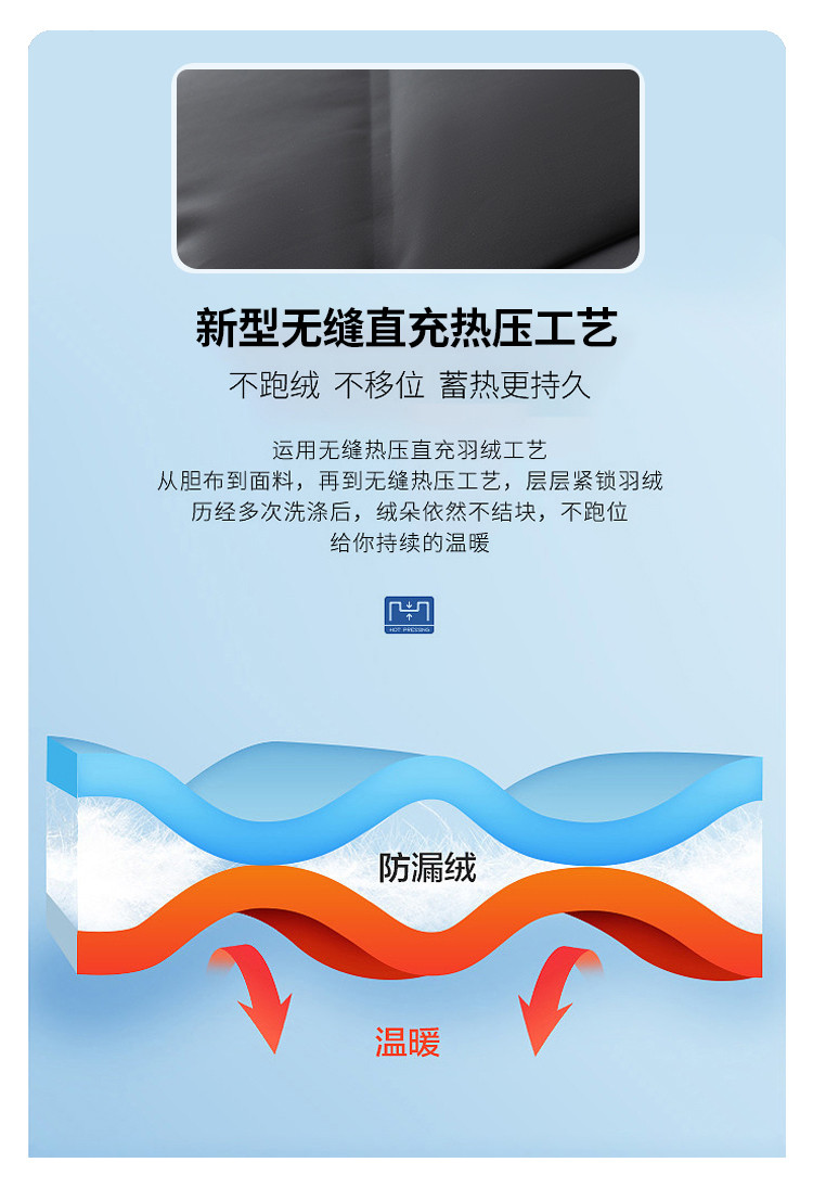 面料:100%聚酯纤维(涂层除外)里料:100%聚酯纤维填充物:白鸭绒(绒子含量85%)