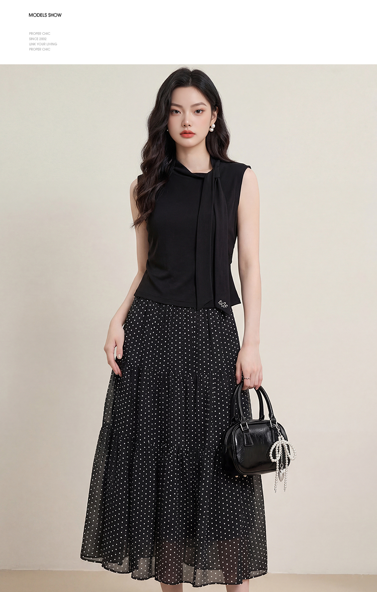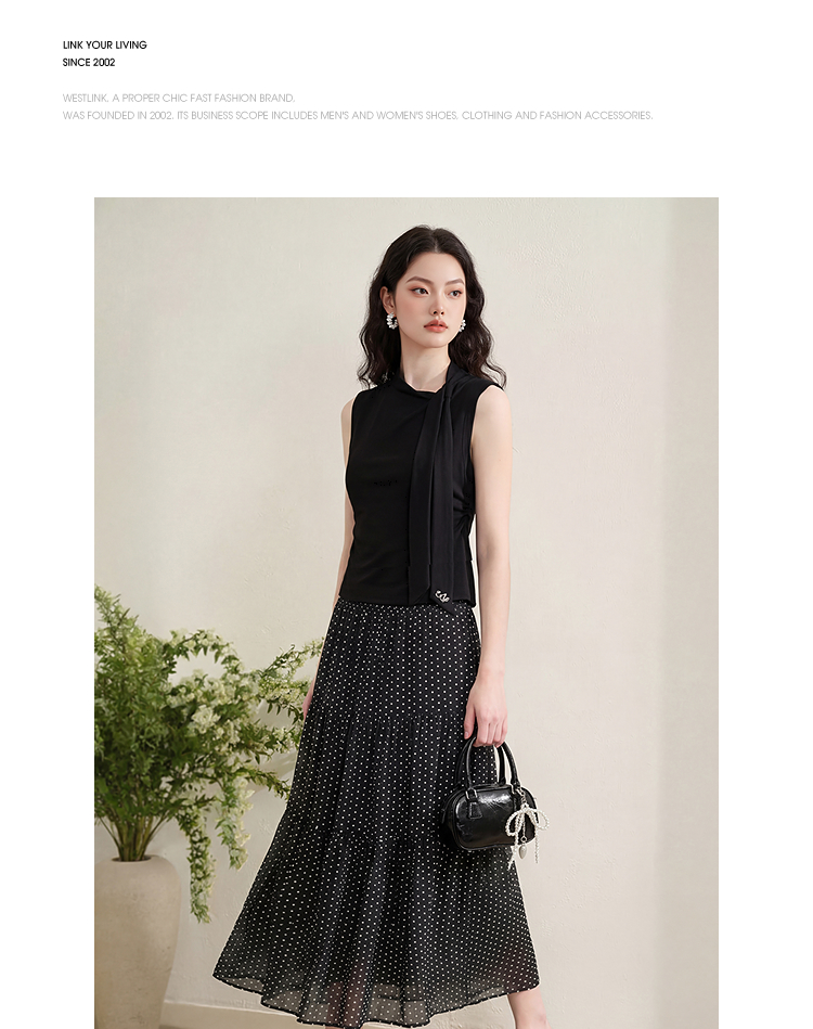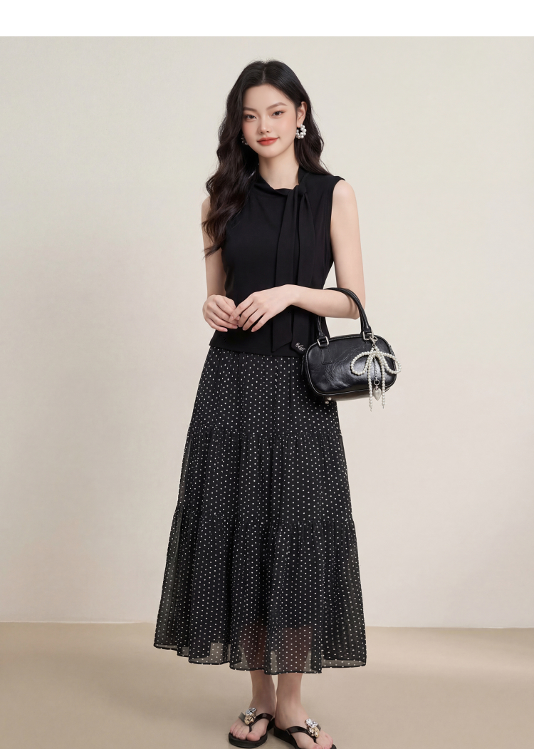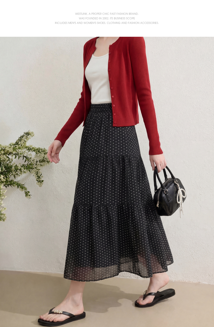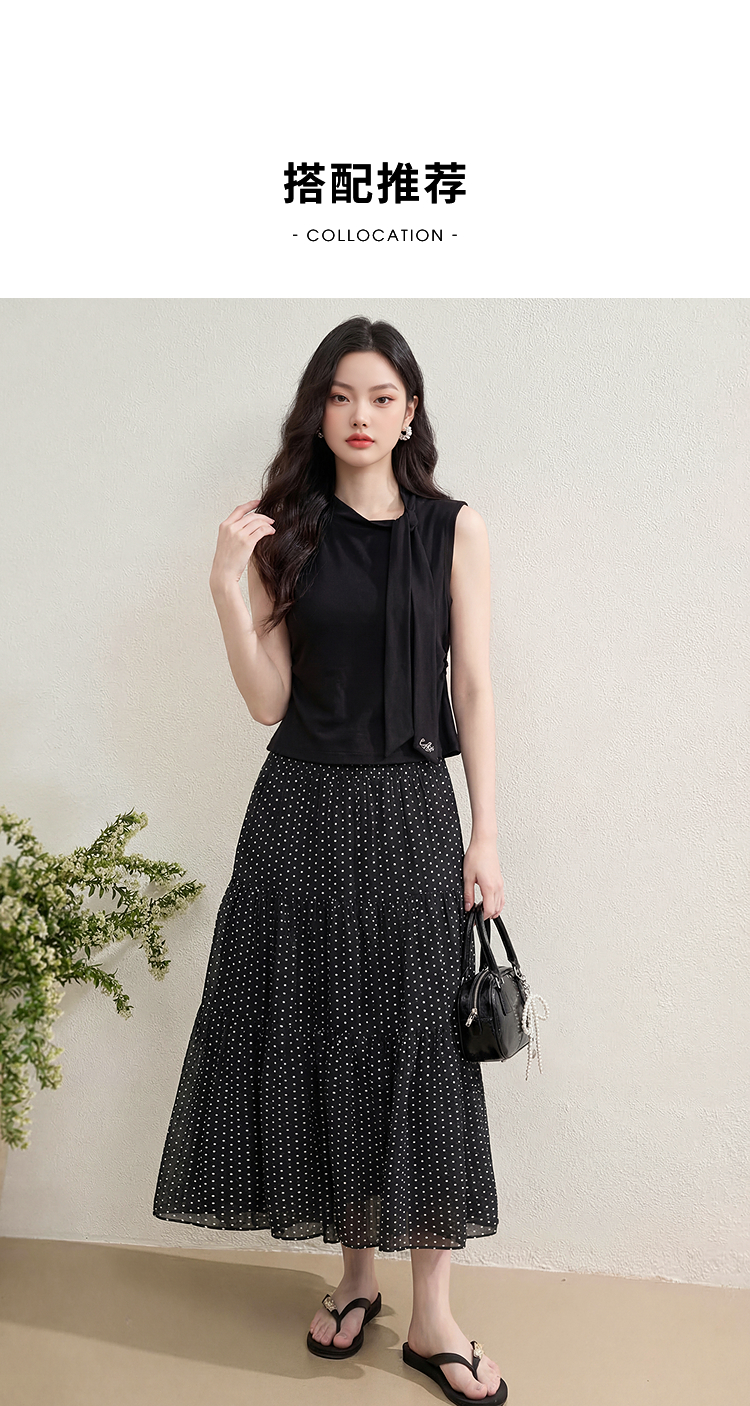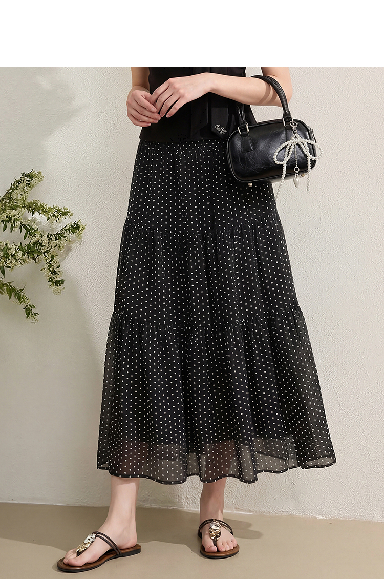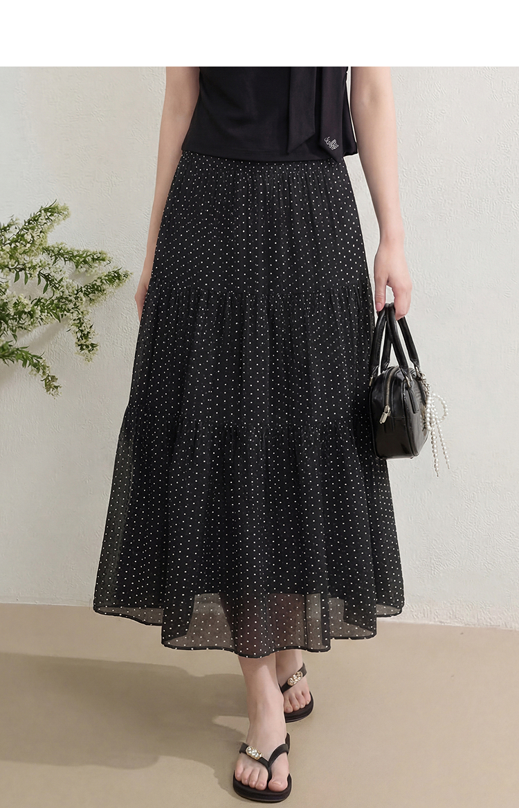 西遇黑色网纱波点女2026春夏新款高腰显瘦a字大摆长半身裙子H0060216