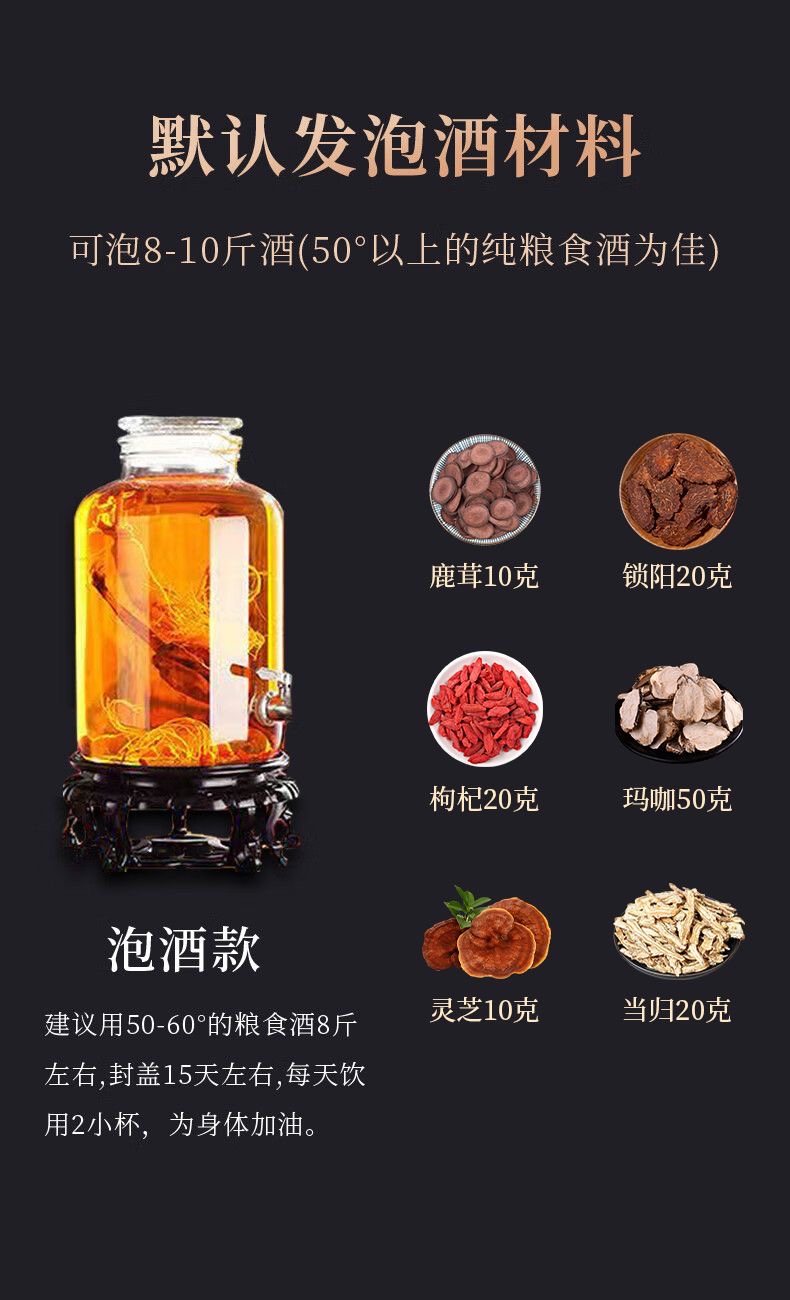 热售【酒浸保鲜参】长白山酒浸保鲜参+送6种散装泡酒材料 锁阳+鹿茸+当归+玛咖+灵芝+枸杞