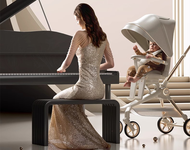 德拉玛Q2白天鹅遛娃神器可坐可躺双向折叠高景观溜娃婴儿车手推