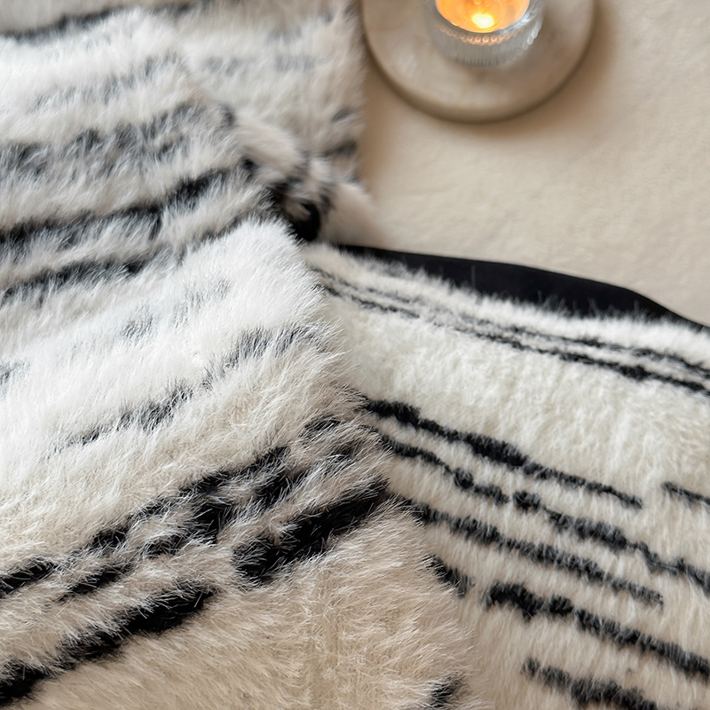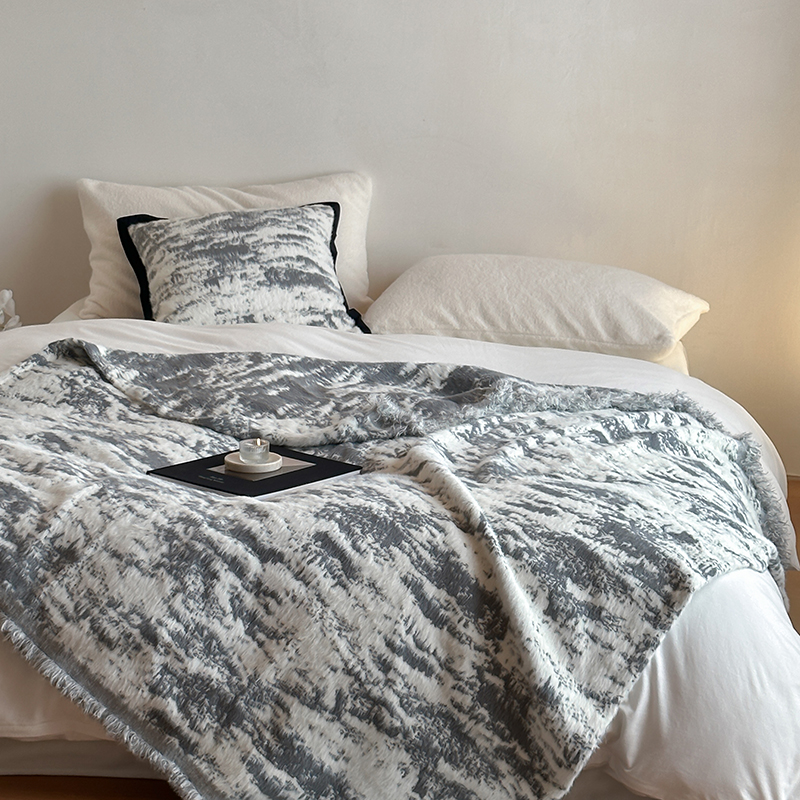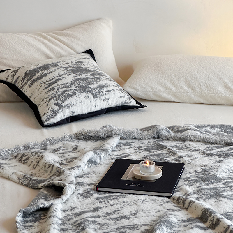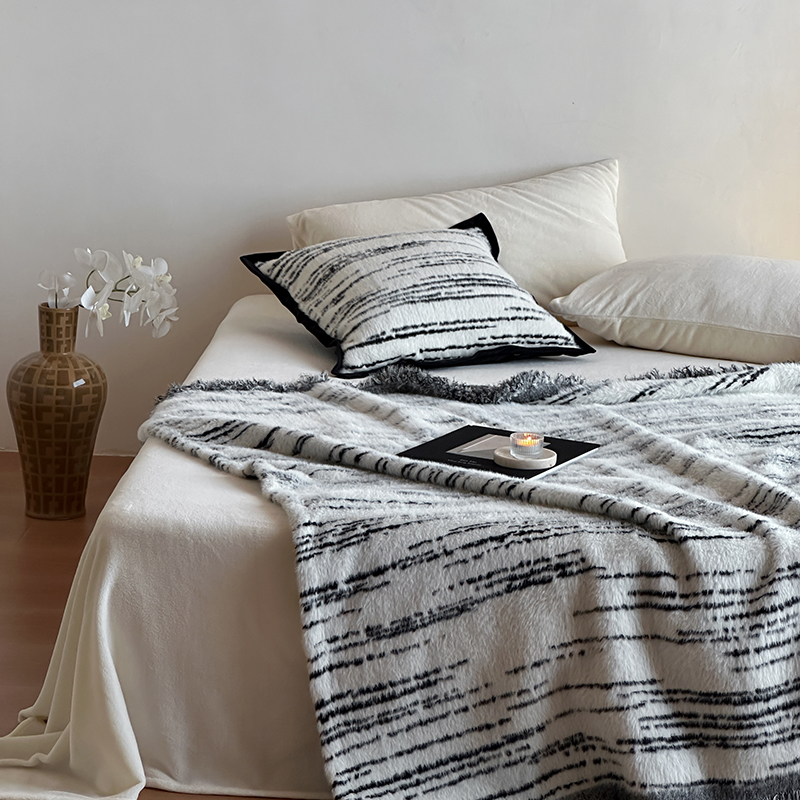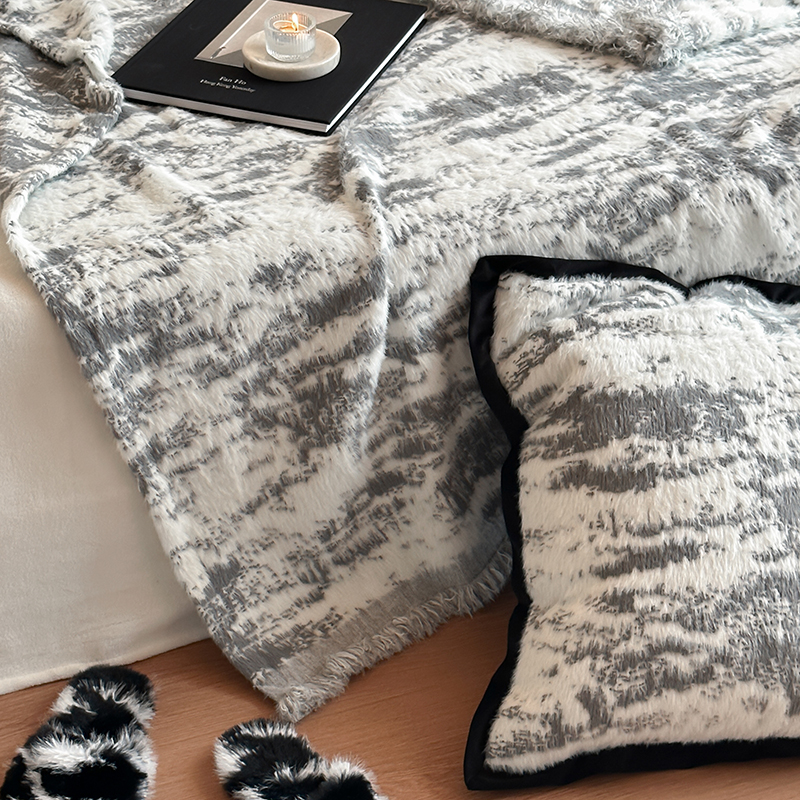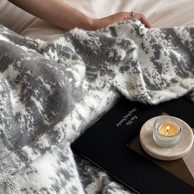 独家定纺高端长毛貂绒纱,精选18S/2抗起球纱线,质地细腻,手感柔顺,面料舒适感强,成型效果佳。毛料条感清晰可见,表面绒毛纤长,柔和丰满,似云朵般暖糯亲肤。提花工艺,立体图案,做为家居盖毯实属高端精品,可用于沙发卧室等多功能区域,轻奢毛毯沙发毯加厚高级感午睡盖毯。