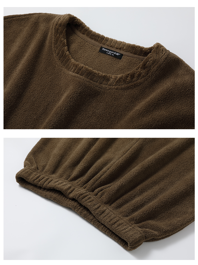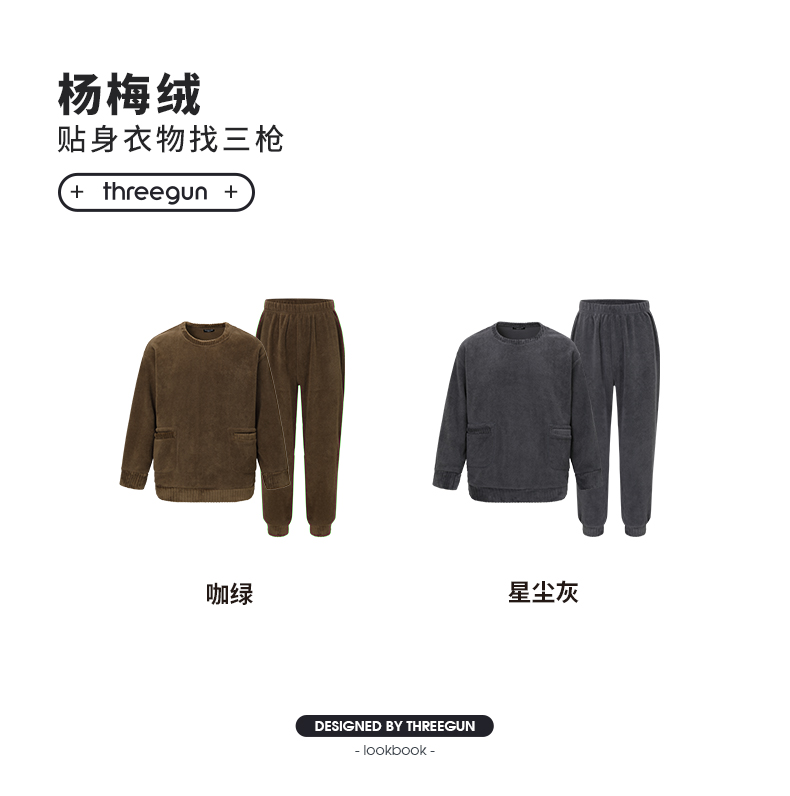 Threegun三枪 杨梅绒抽条拼接圆领长袖男家居套-82247D011