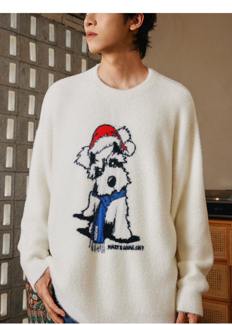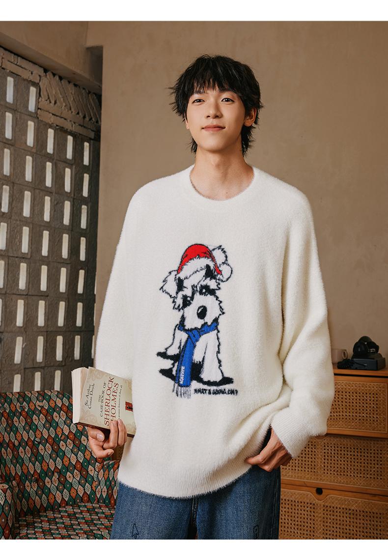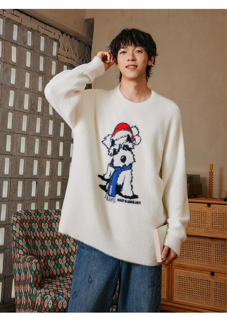 YKYB新款秋款毛衣宽松上衣圆领落肩柔软舒适猫狗情侣针织衫 商品图3