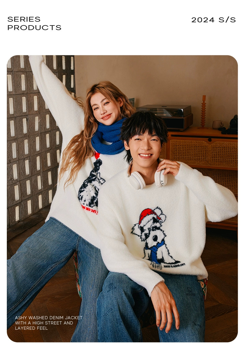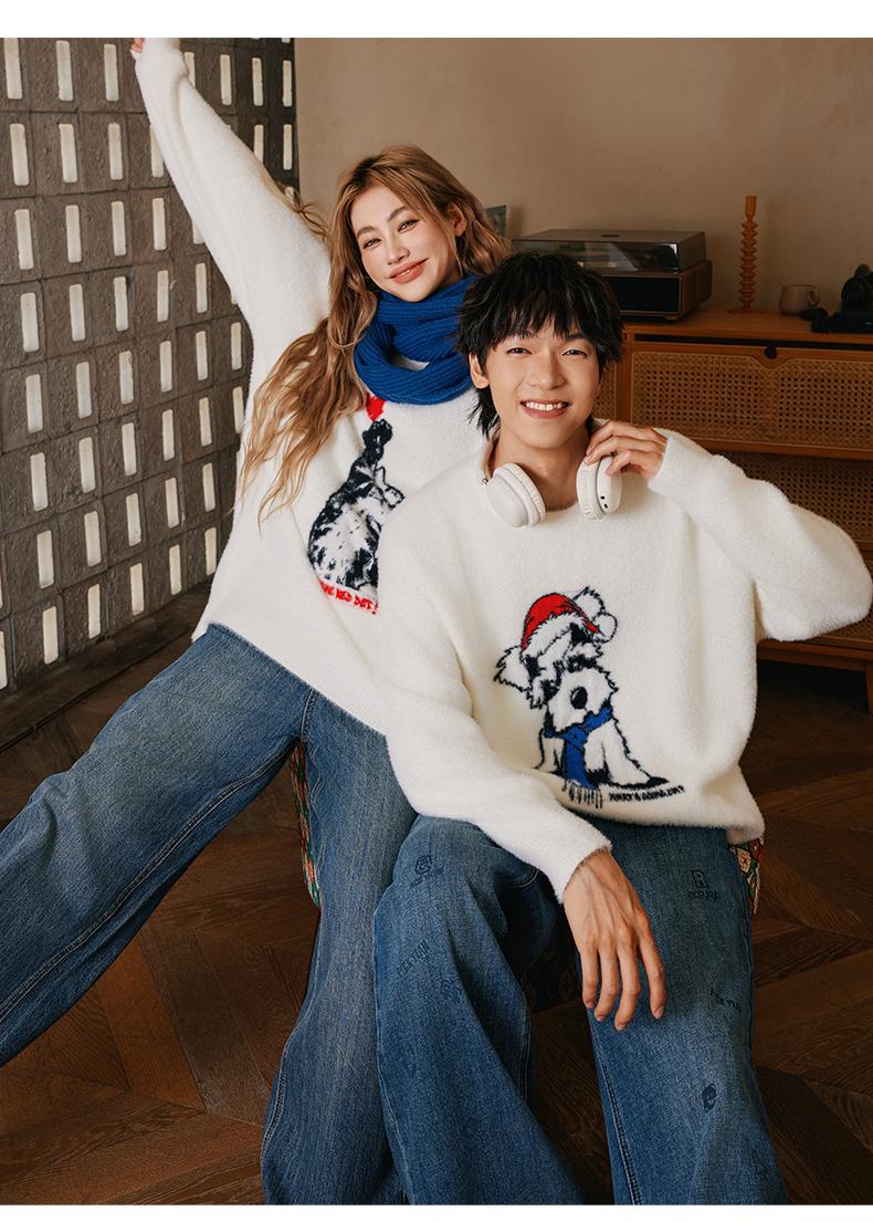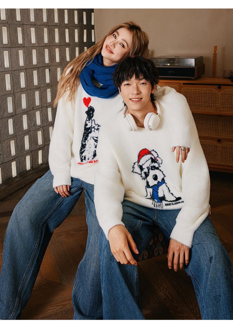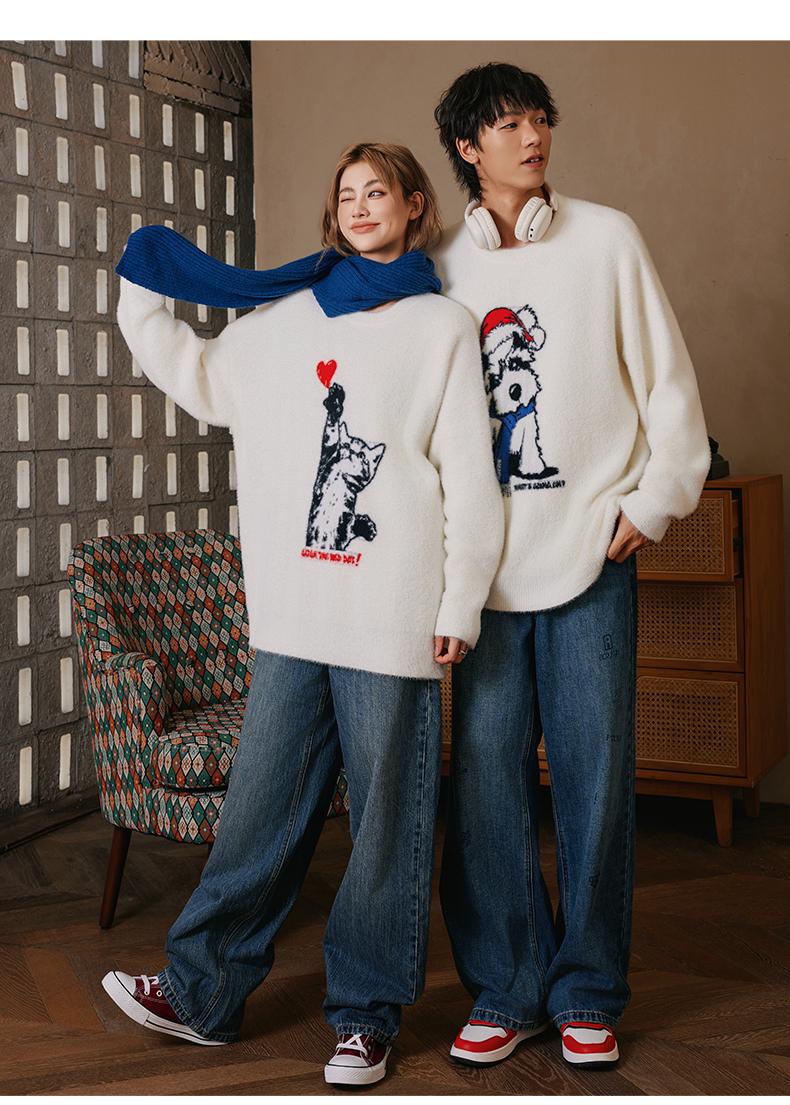 YKYB新款秋款毛衣宽松上衣圆领落肩柔软舒适猫狗情侣针织衫 商品图0