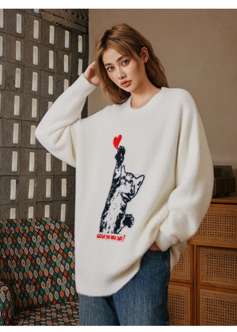 YKYB新款秋款毛衣宽松上衣圆领落肩柔软舒适猫狗情侣针织衫 商品图1