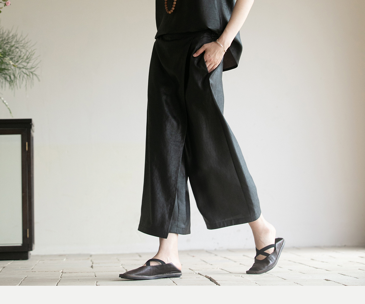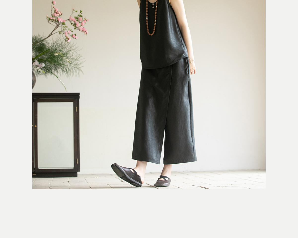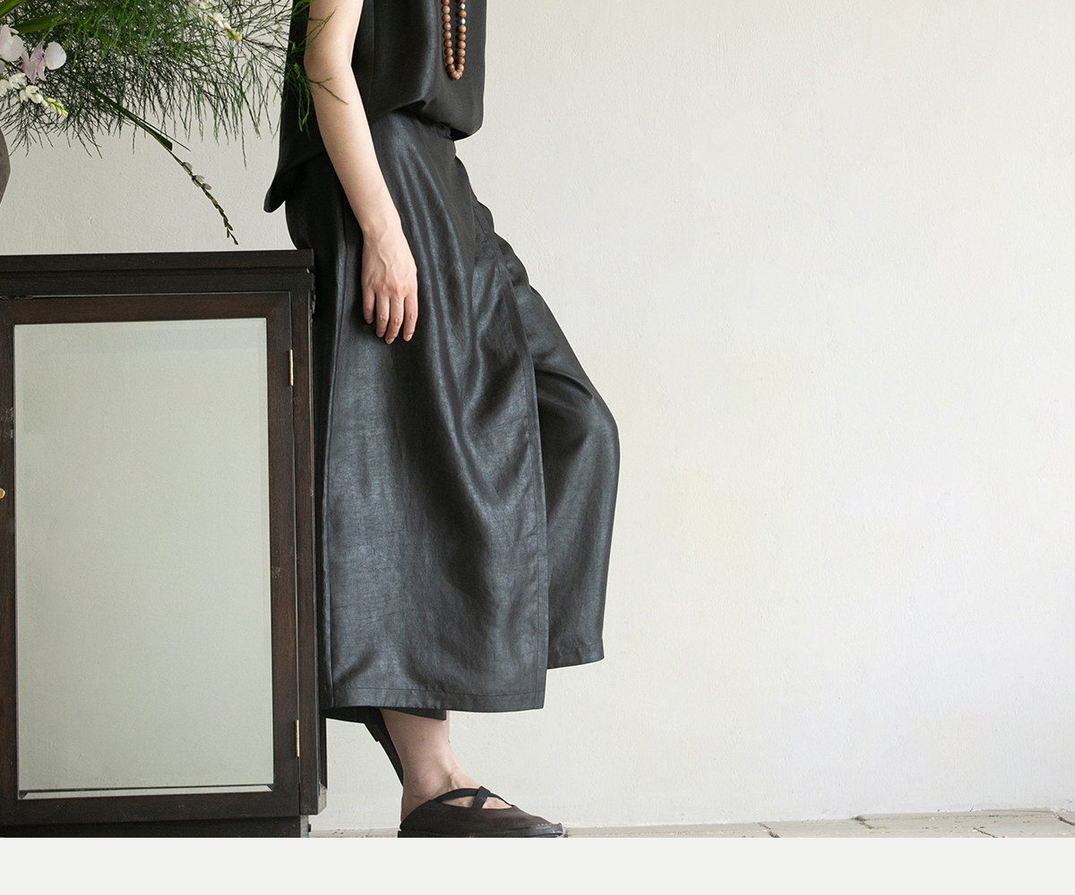 牧衣游原创 香云纱净色裤子夏新品垂感轻薄清凉显瘦真丝裙裤 边叙
