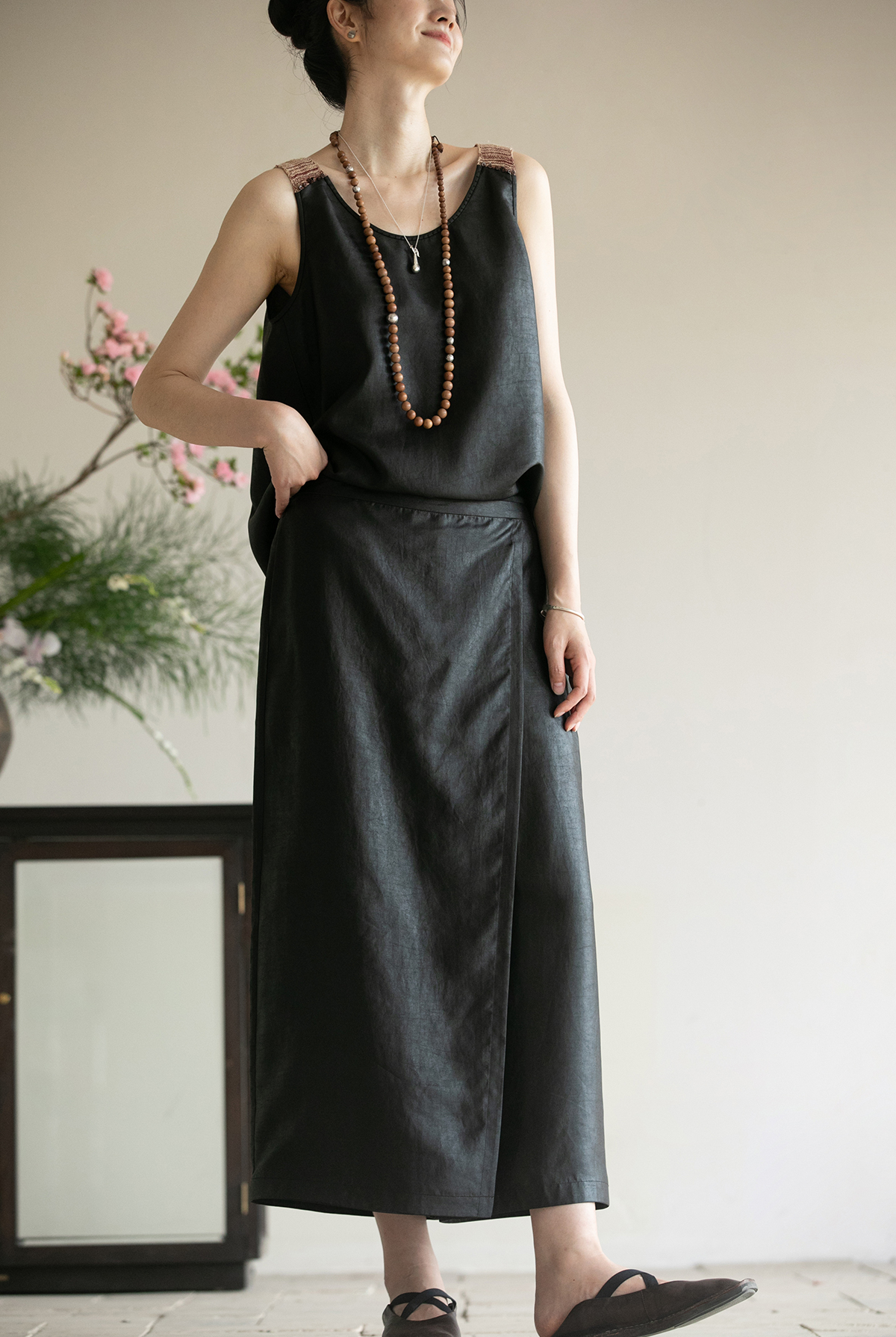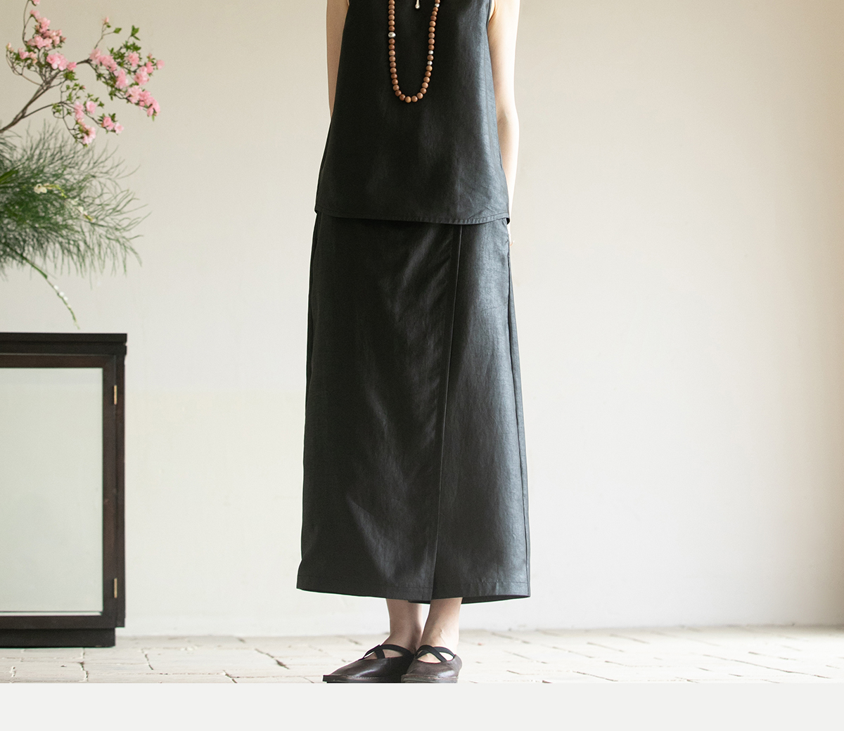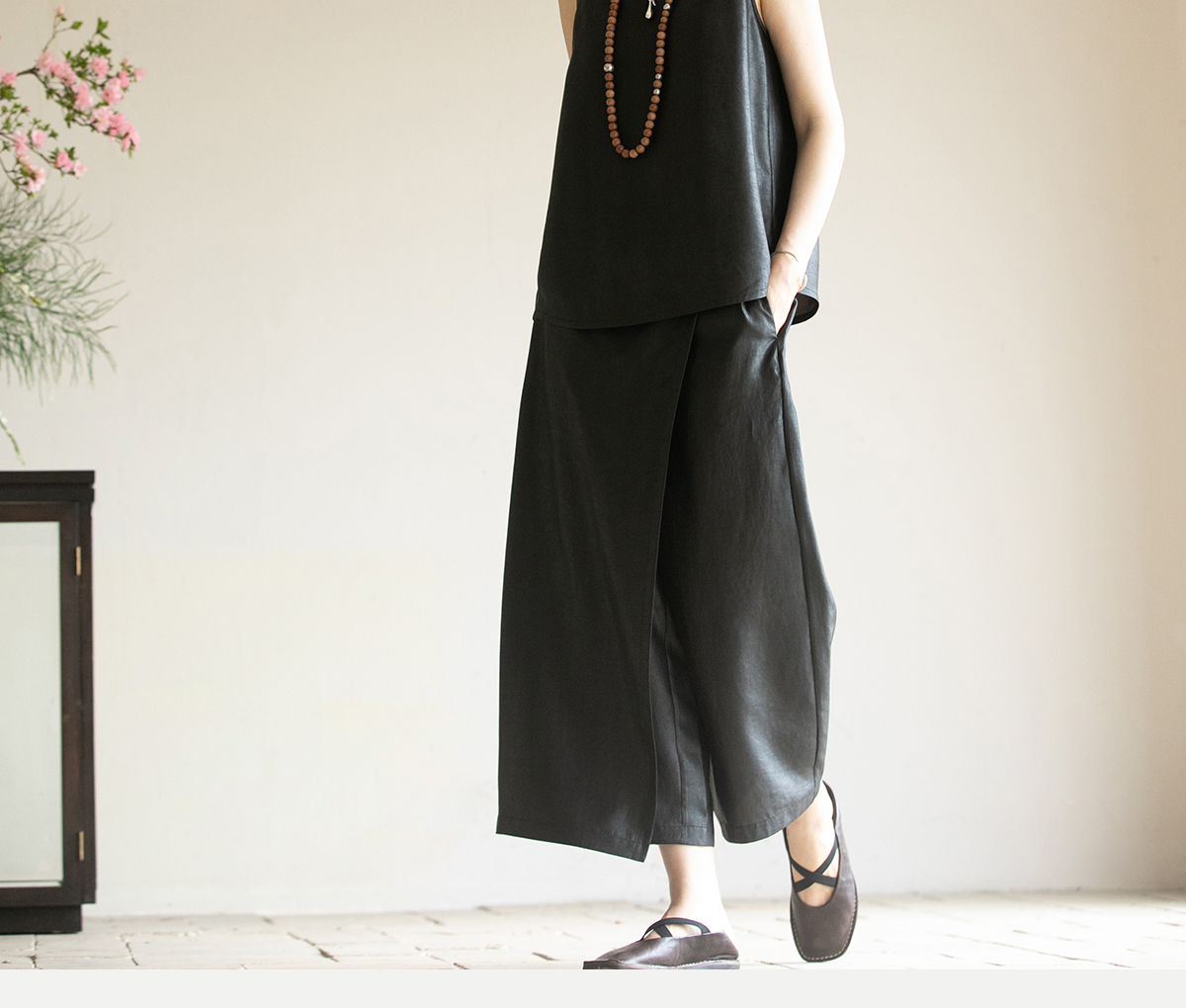 牧衣游原创 香云纱净色裤子夏新品垂感轻薄清凉显瘦真丝裙裤 边叙