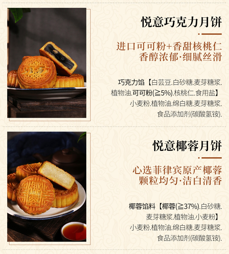 【悦意】纯素月饼8颗装(五仁+椰蓉+紫薯+紫苏+巧克力+素香火腿) 大庆直发