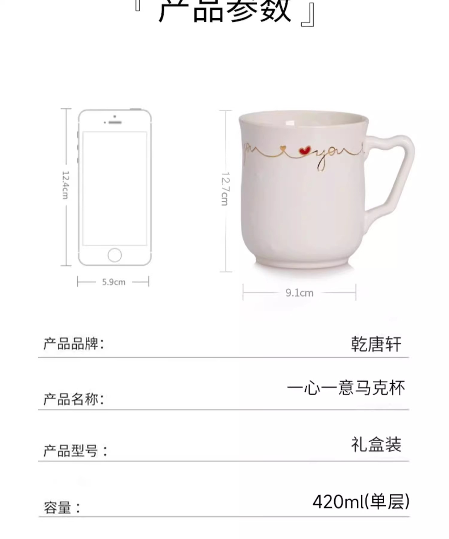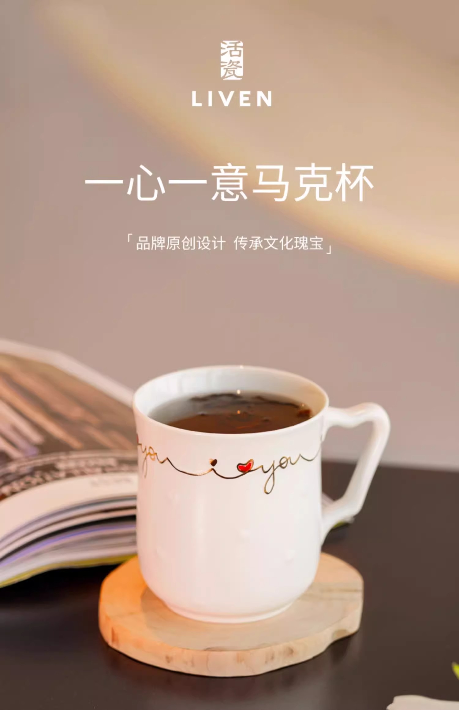 乾唐轩活瓷杯2024新款一心一意高杯马克杯茶杯水杯陶瓷杯子乾唐轩-一心一意马克杯(浅水蓝/牙白)