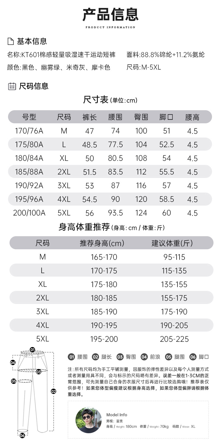 【棉感轻量吸湿速干运动短裤】透气清爽休闲短裤速干五分裤子KT601