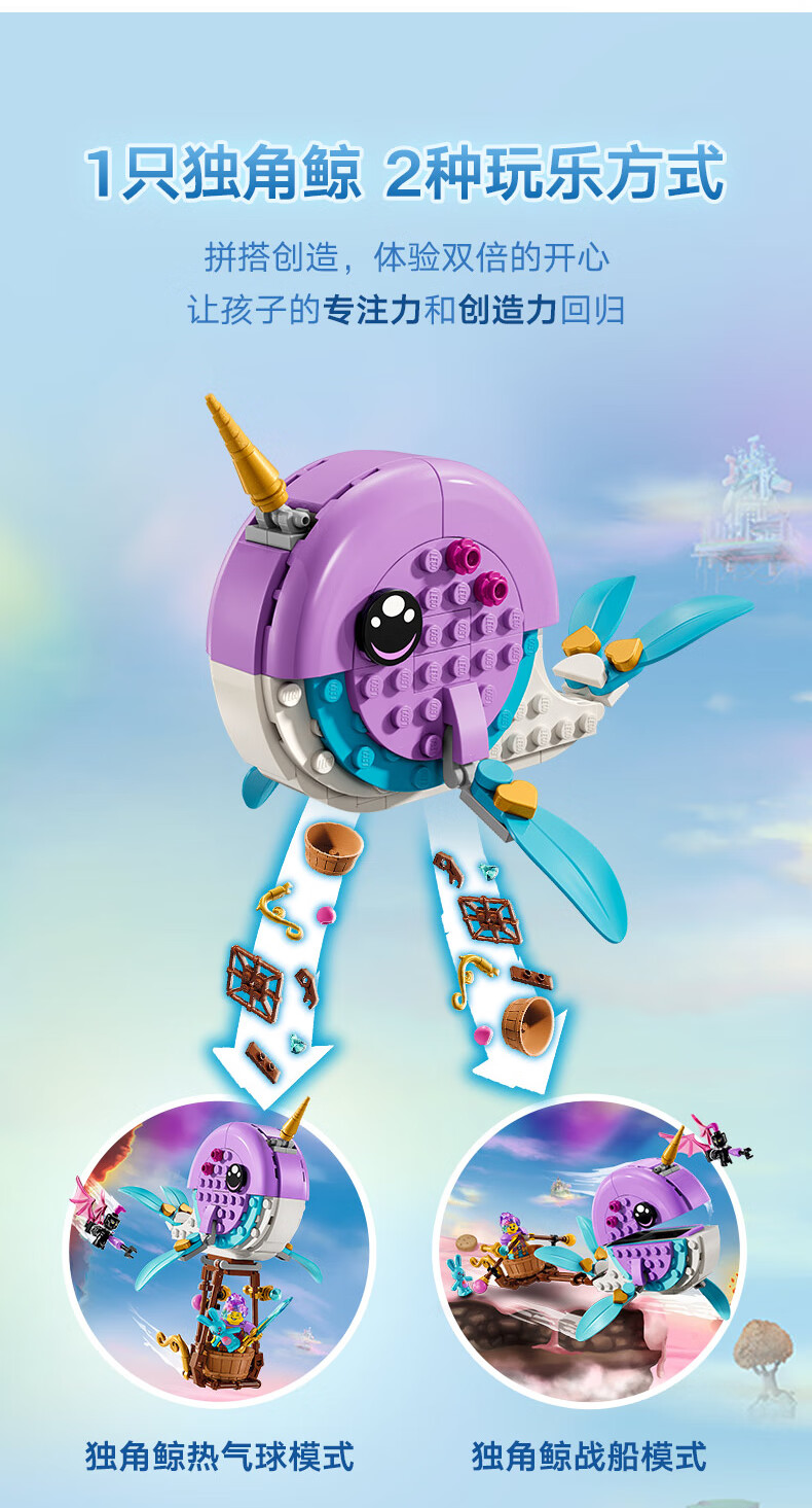乐高积木L71472梦境城猎人系列伊茲的独角鲸热气球