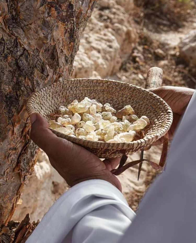 一棵乳香树需要在贫瘠之地里等待无数个日夜才可成长,一粒乳香树脂需要在树干受伤风化后方能获取。树脂因为切口深浅而不完整,植物因为自然生长而不规则,一切经历自然规律的结果,皆不完美。